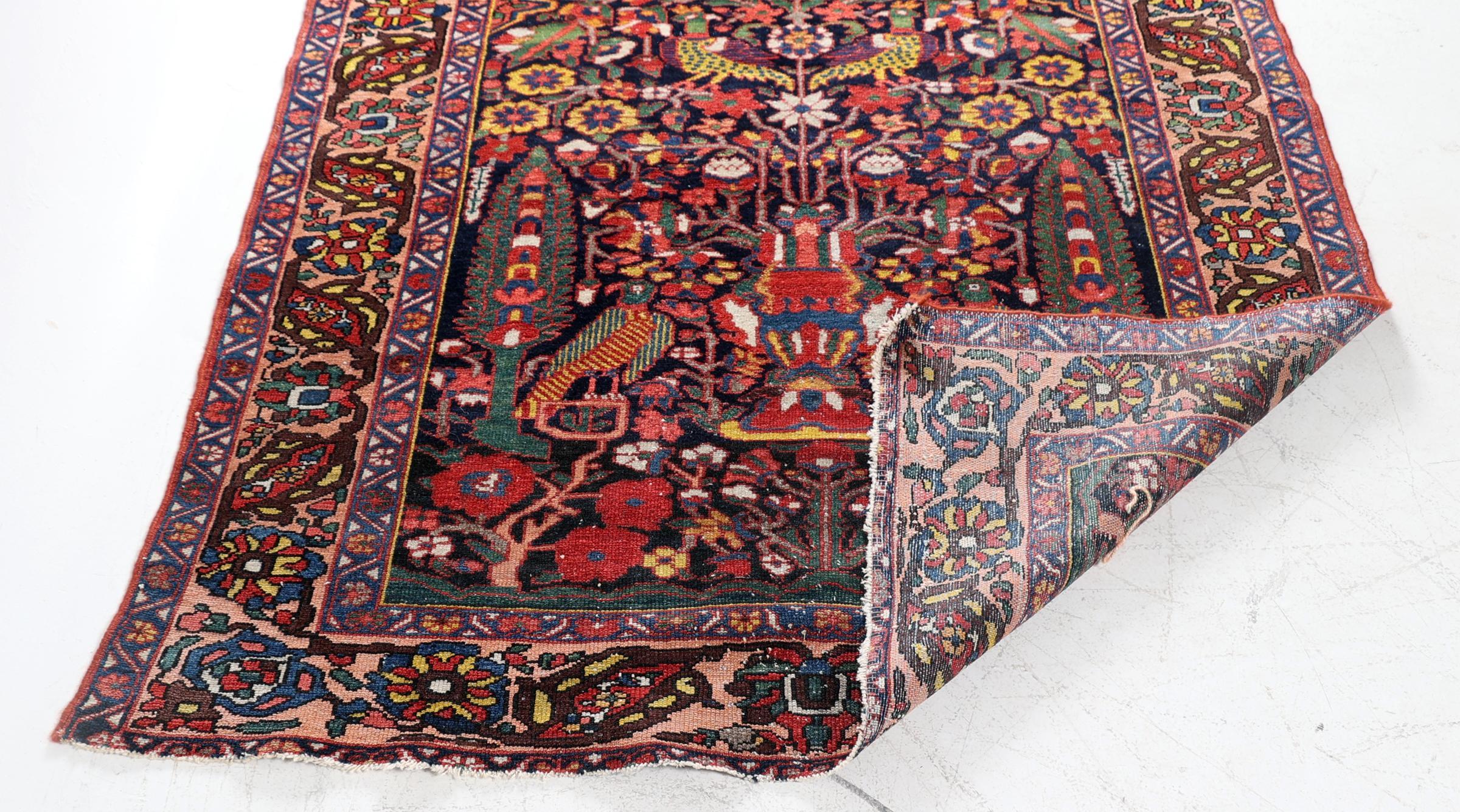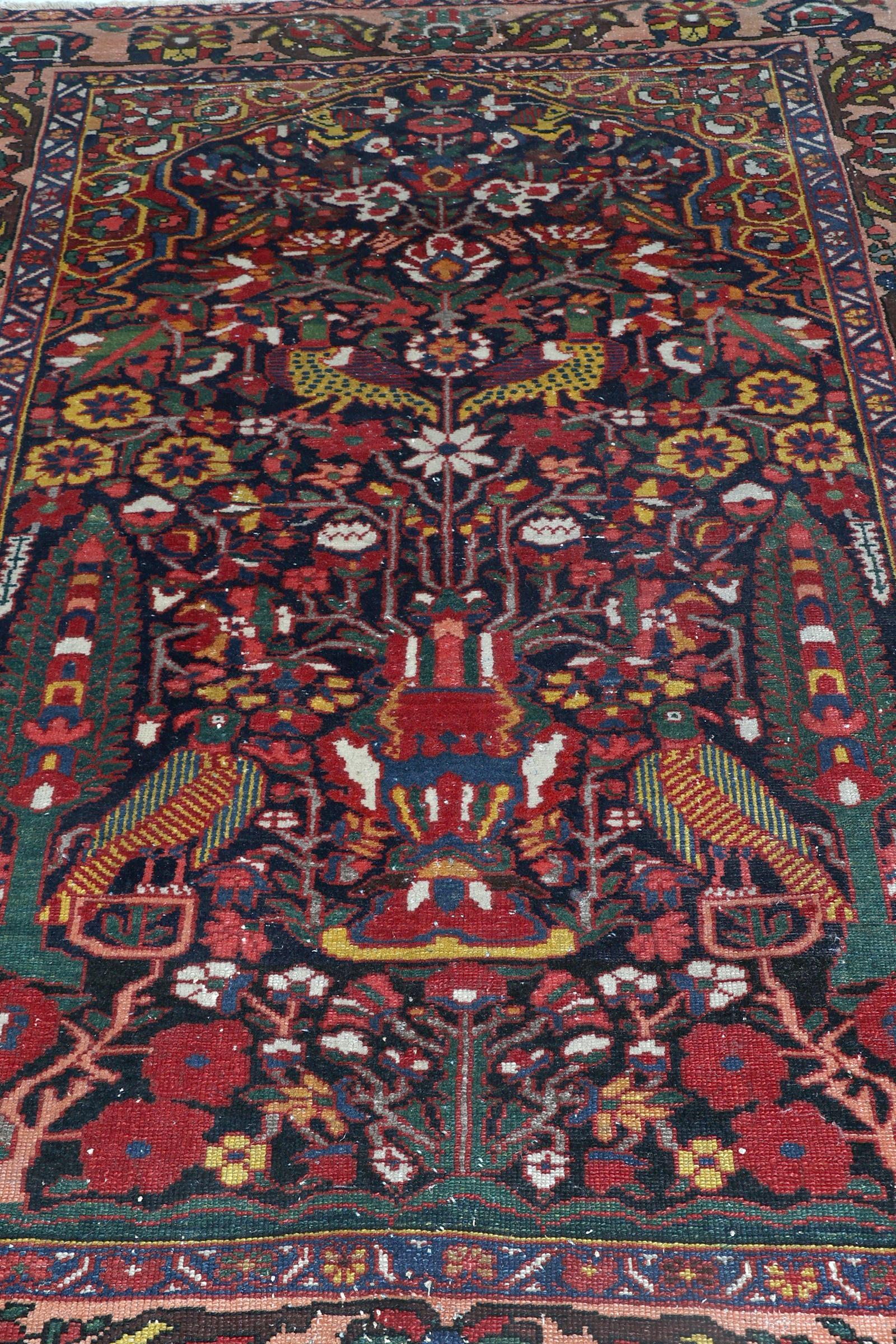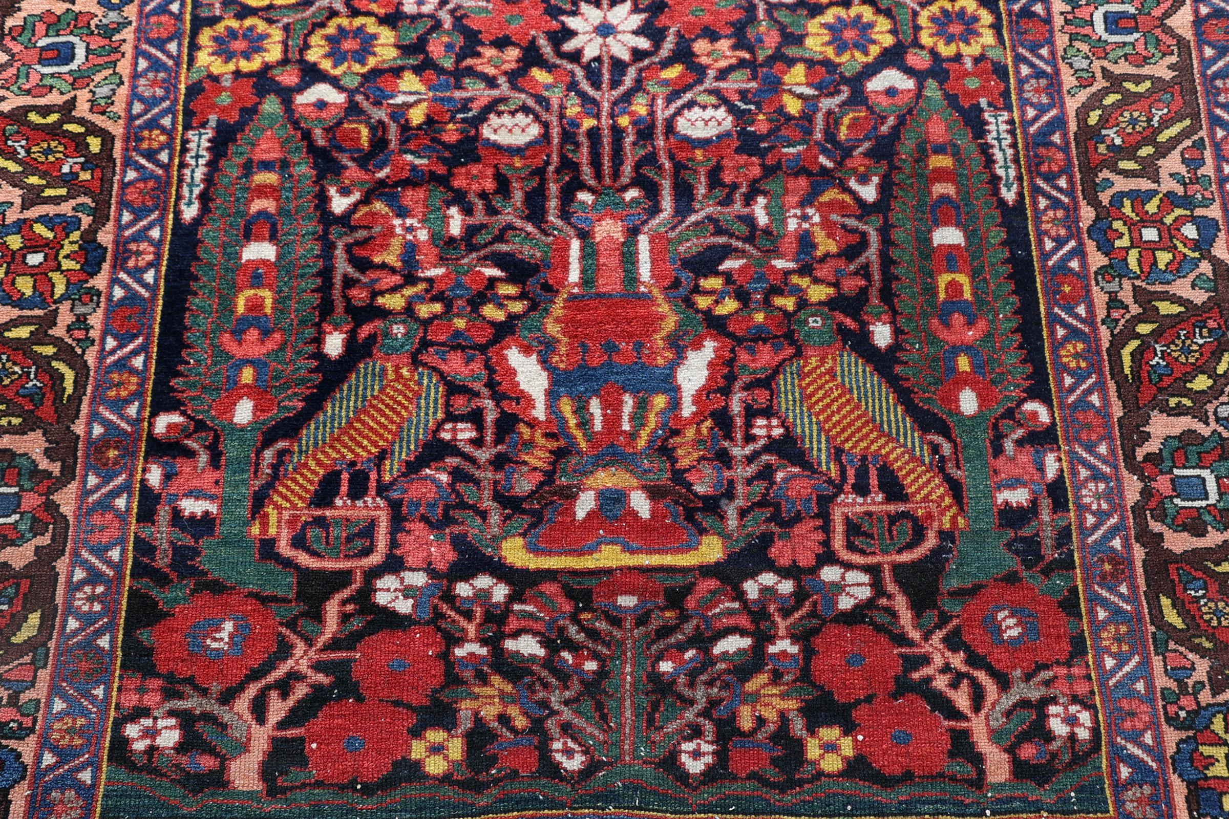 Handgeknoopt Perzisch kleed met vogeldecoraties, 200 x 146 cm.
