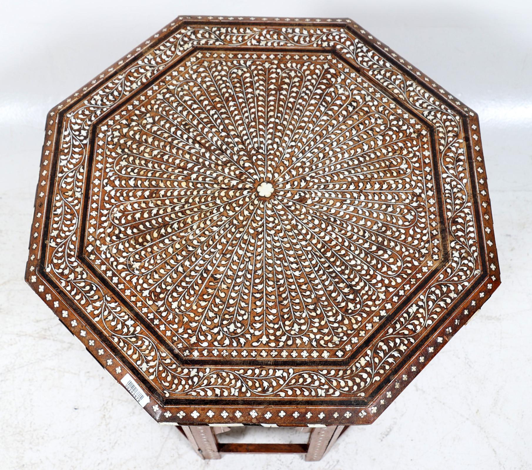 Met been ingelegde Oosterse houten bijzettafel, h.47 x b.47 x d.47 cm.