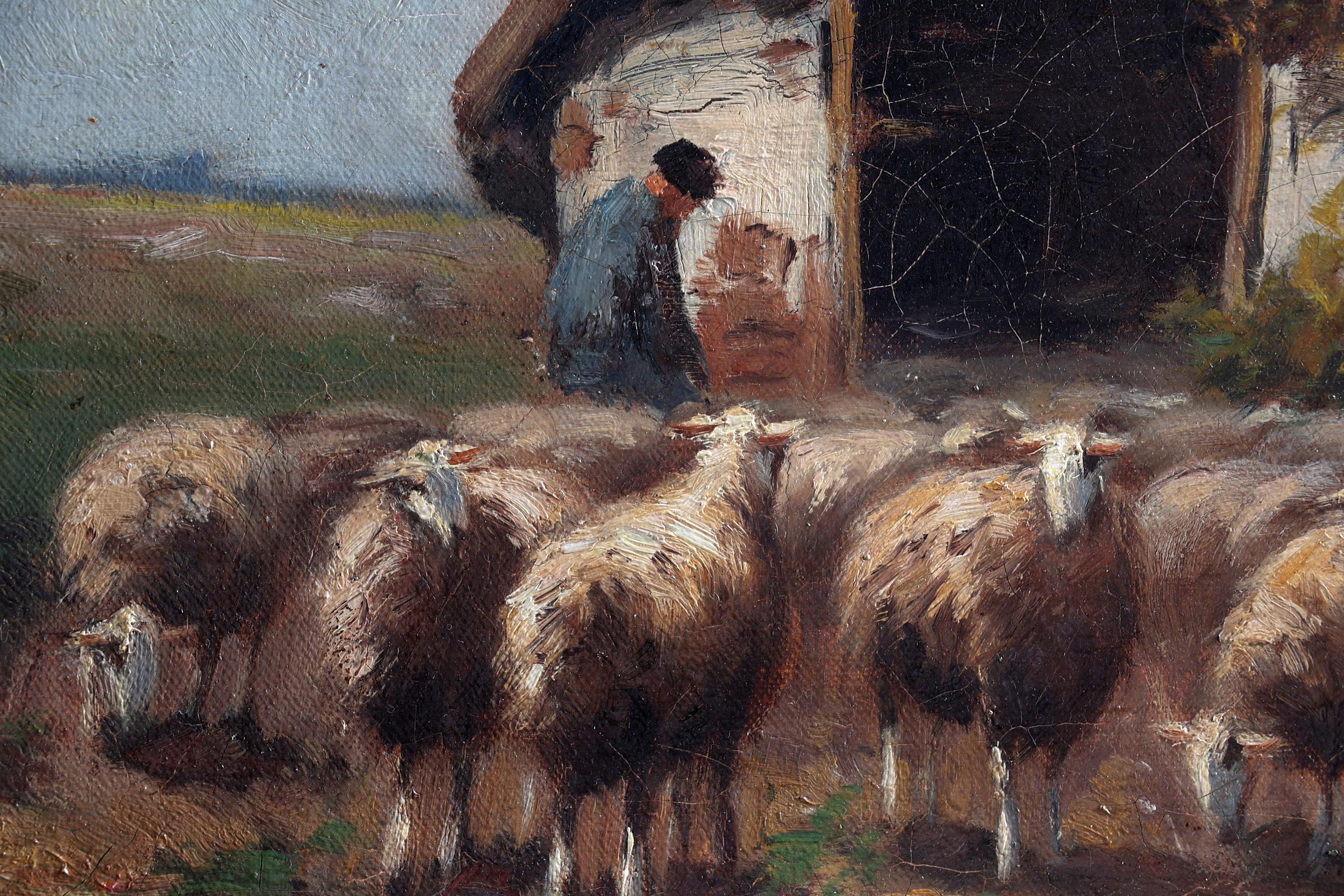 Piet Bouter (1887-1968), Boer met schapen, olieverf op doek, 30 x 40 cm.