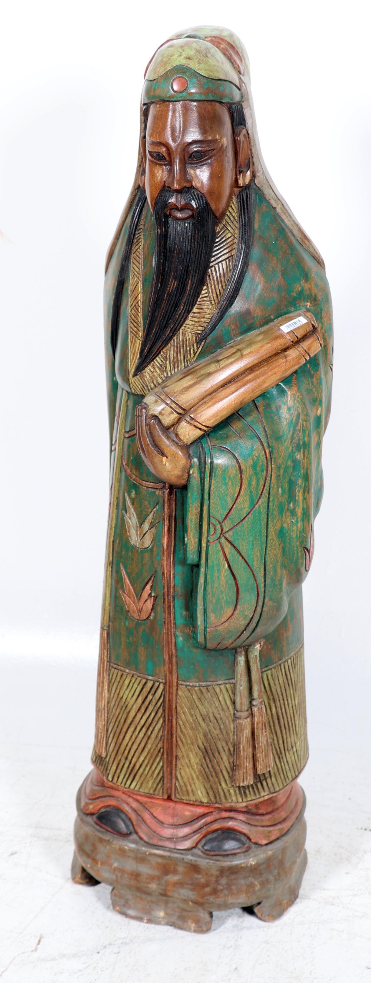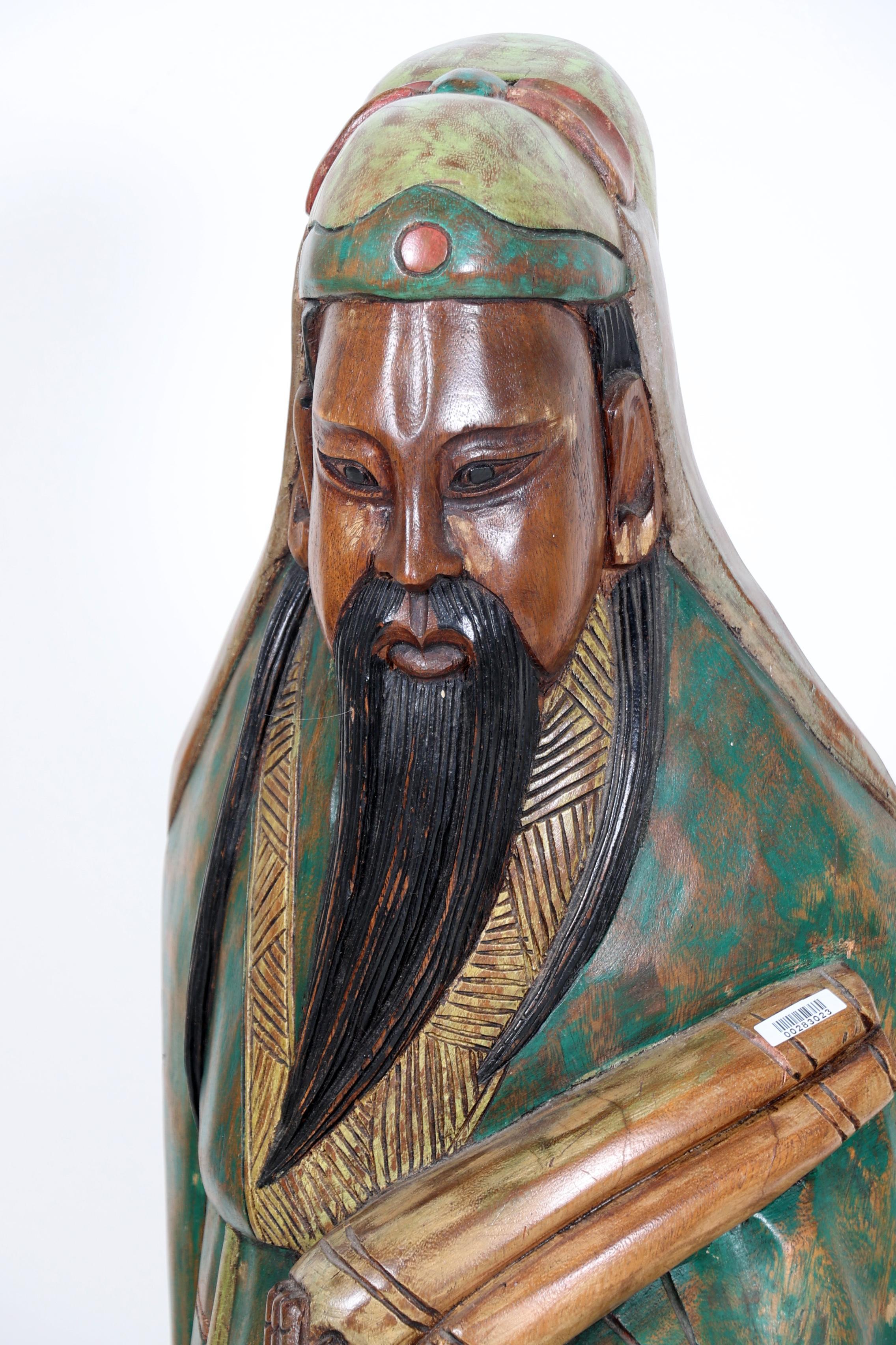 Gepolychromeerd houten sculptuur van een Chinese man, h.103 cm.