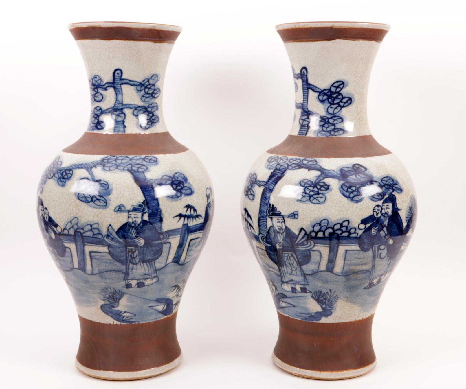Stel Chinees porseleinen vazen met decor van personen, h.47 cm.