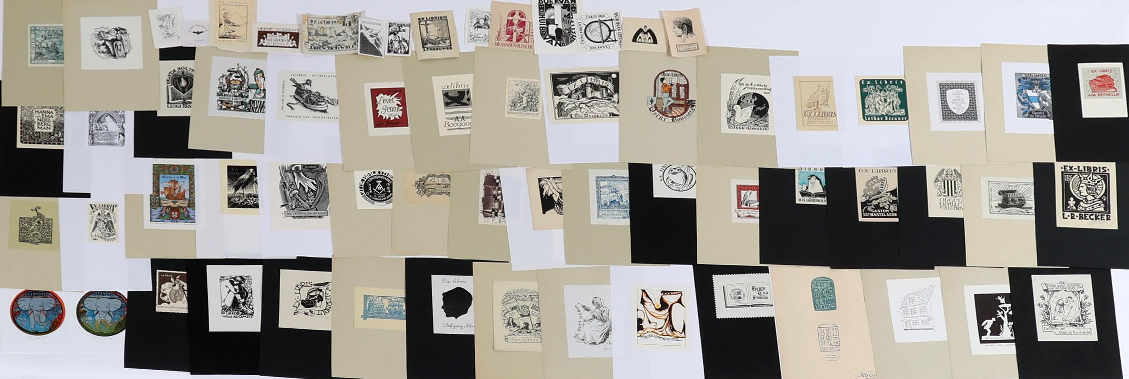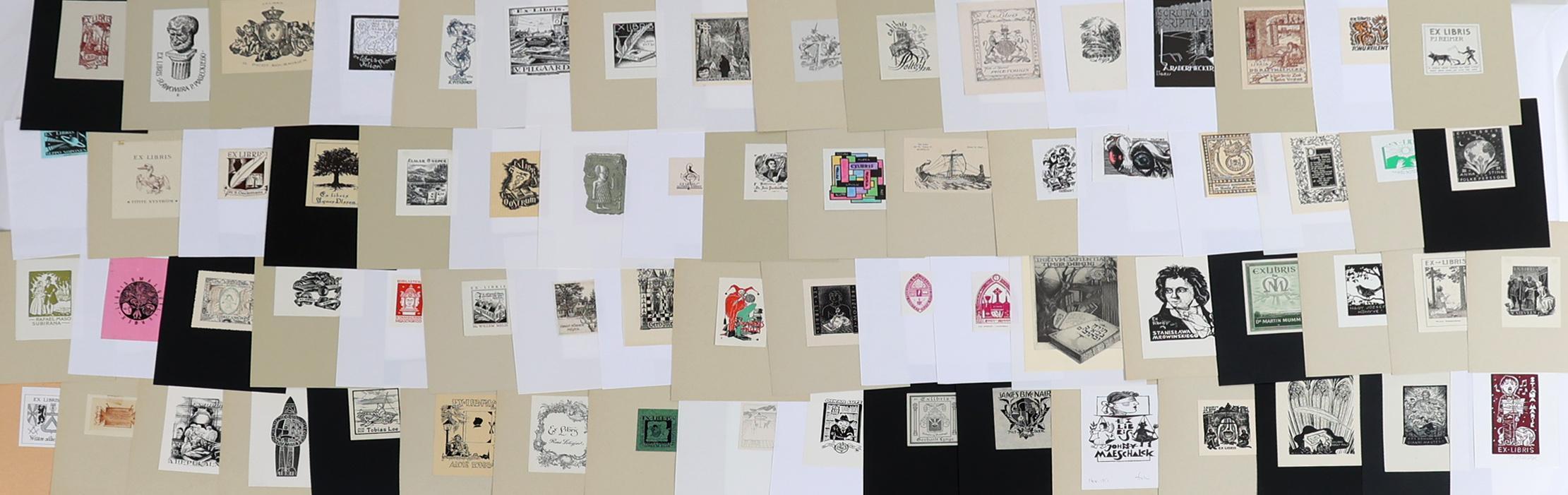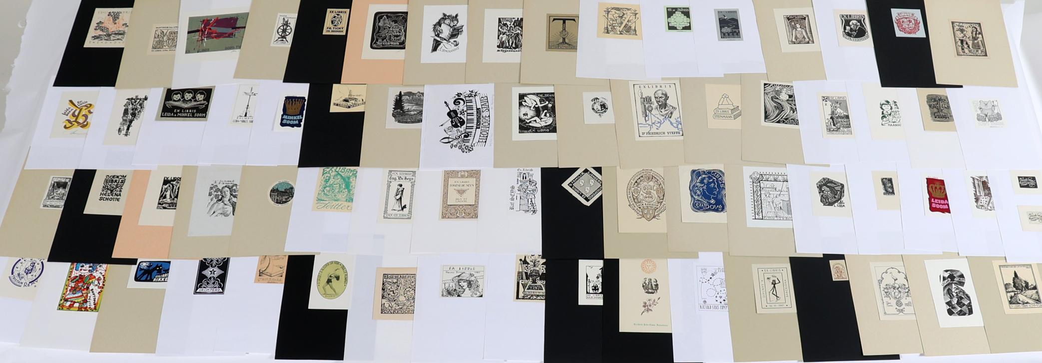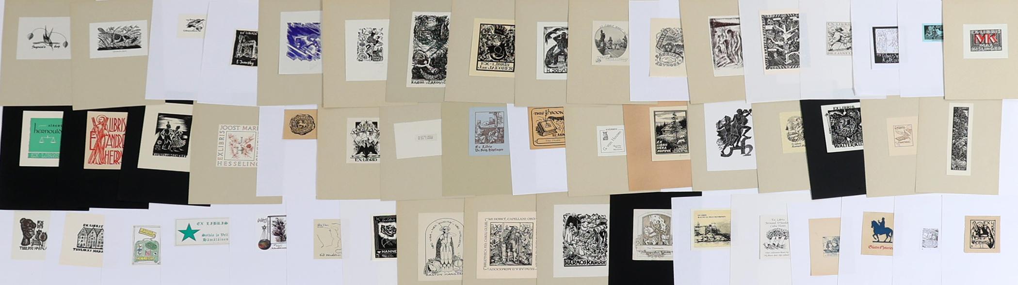 collectie van plm. 270 exlibris, makers onbekend, diverse technieken (vooral hoogdruk), deels gesigneerd, opgeplakt. Vooral uit de periode 1930 - 1970.