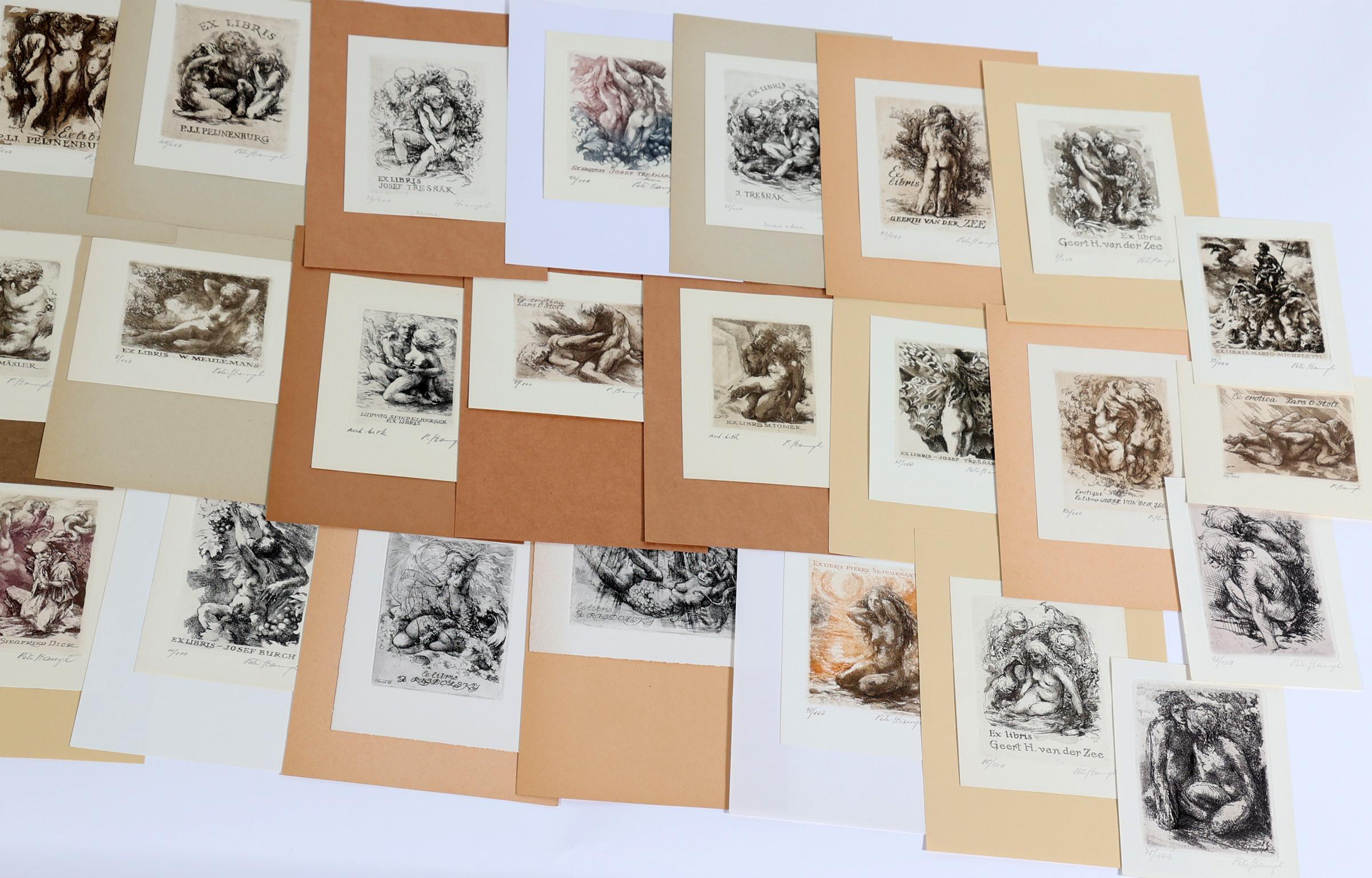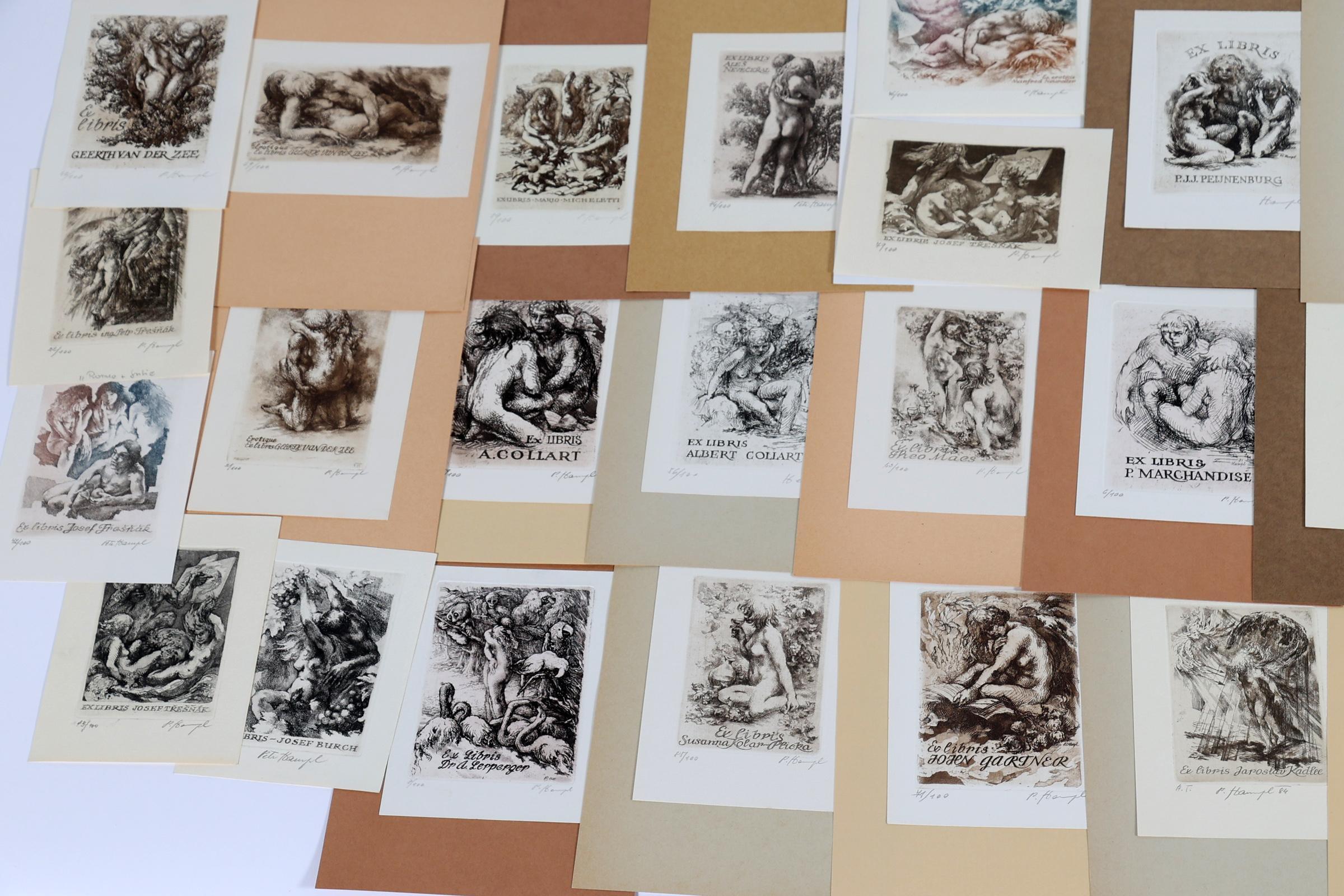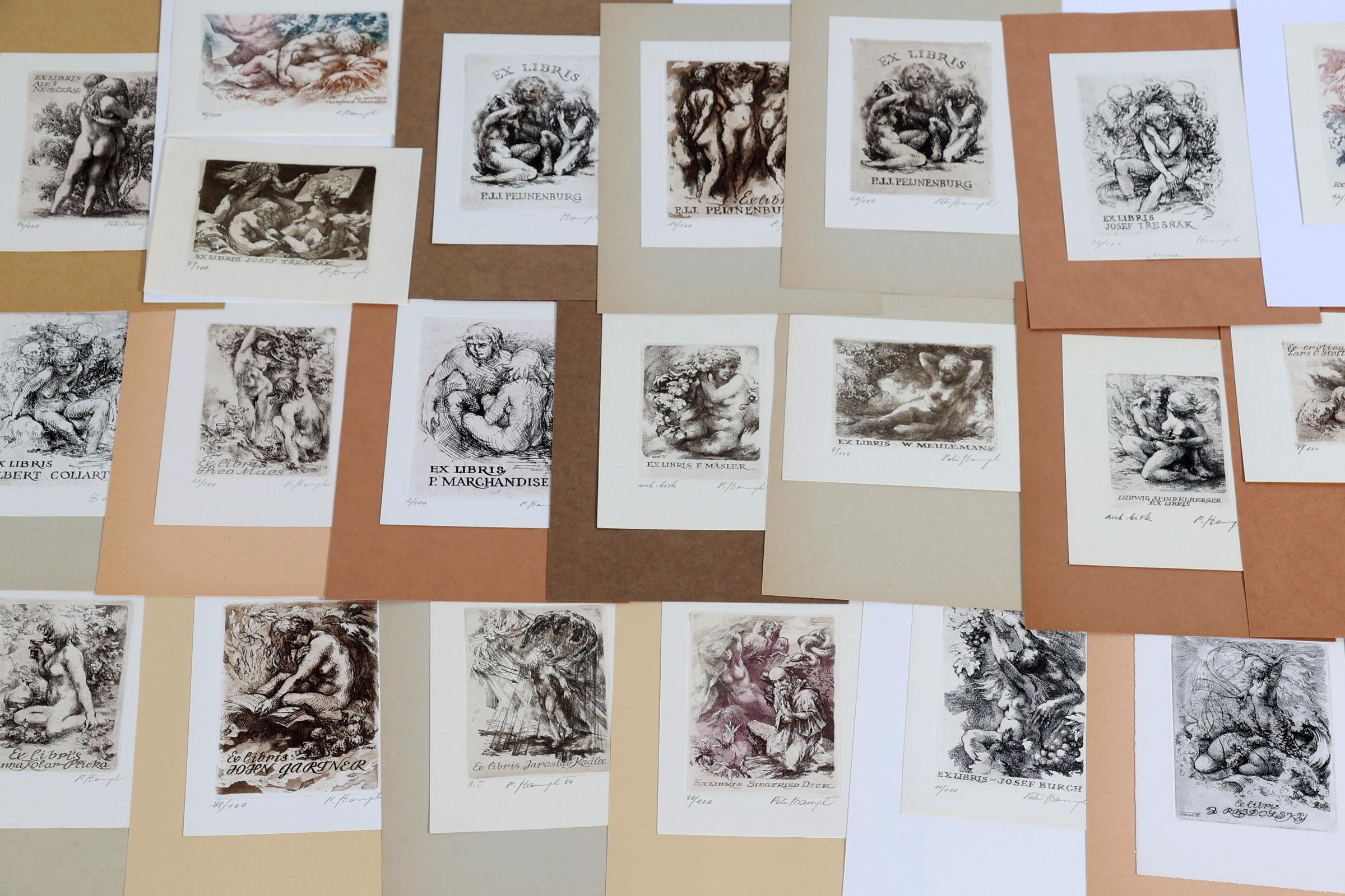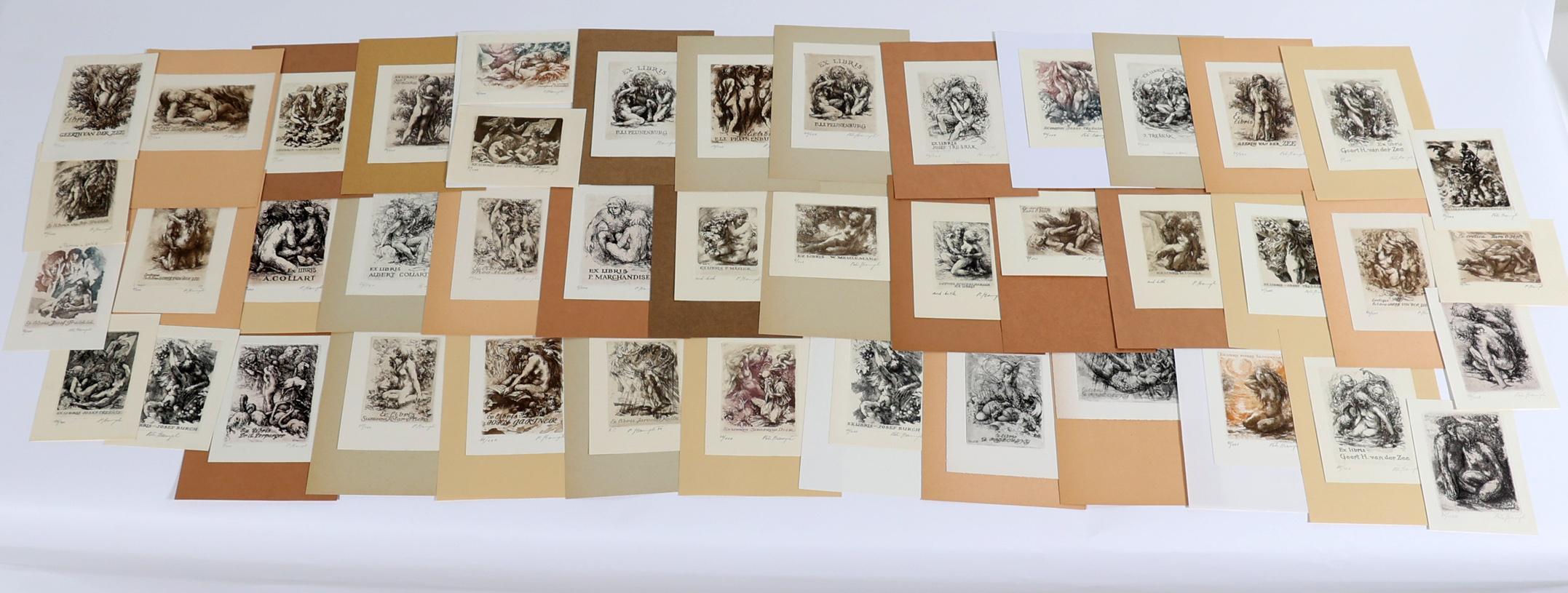 Hampl, P., plm. 40 exlibris / kleingrafiek, thema: Naakt erotiek. Diepdrukken, gesigneerd, opgeplakt / opgeplakt geweest.