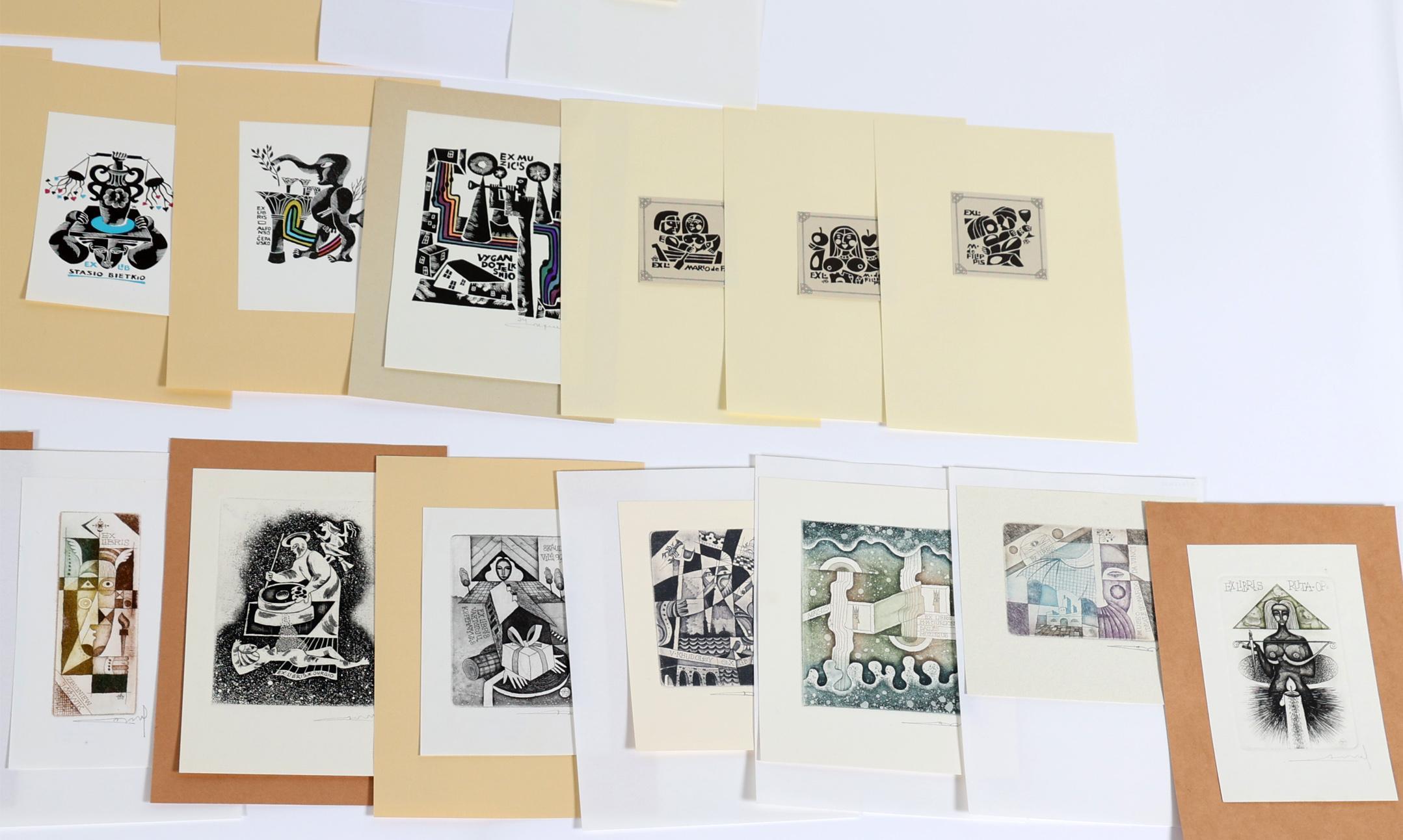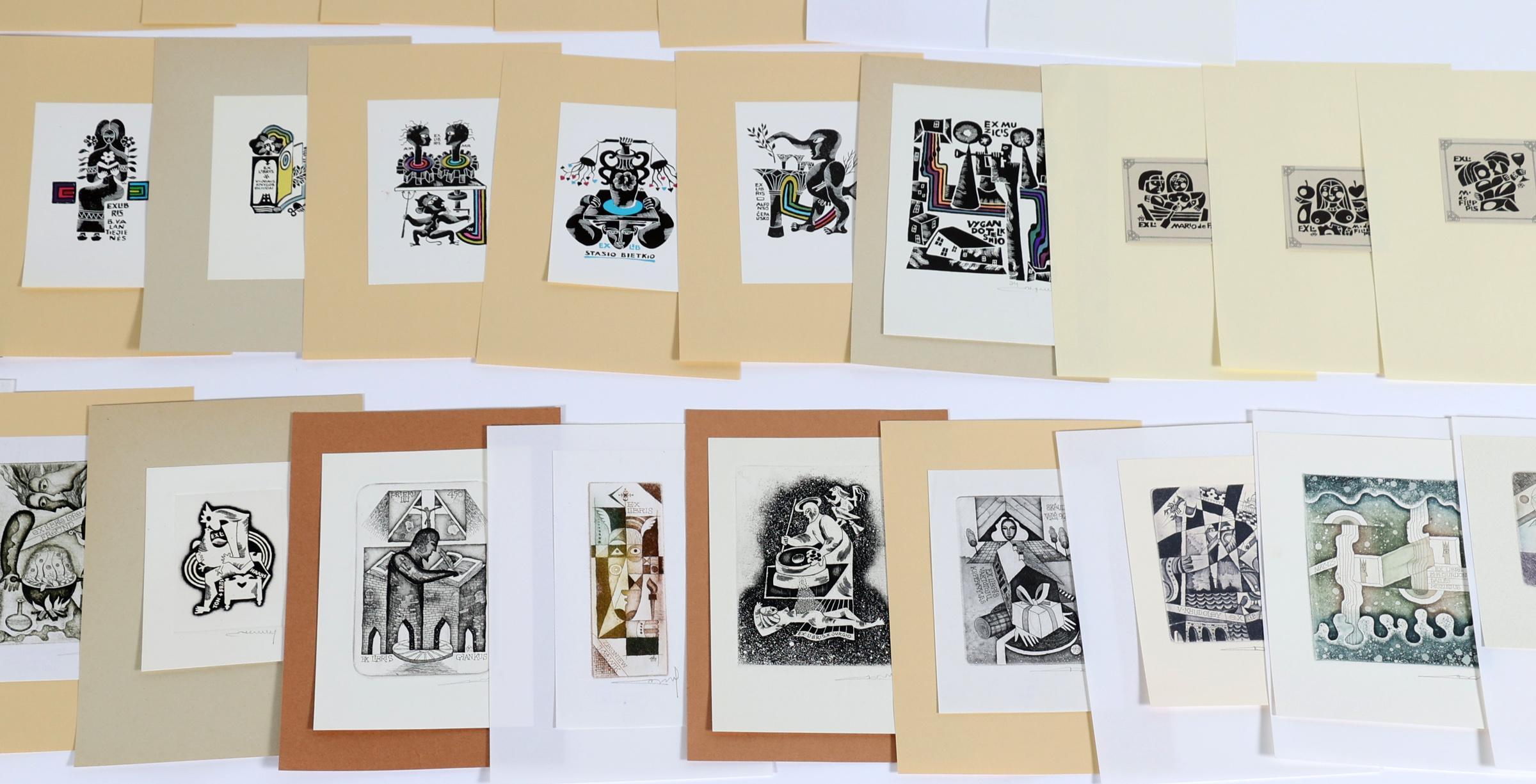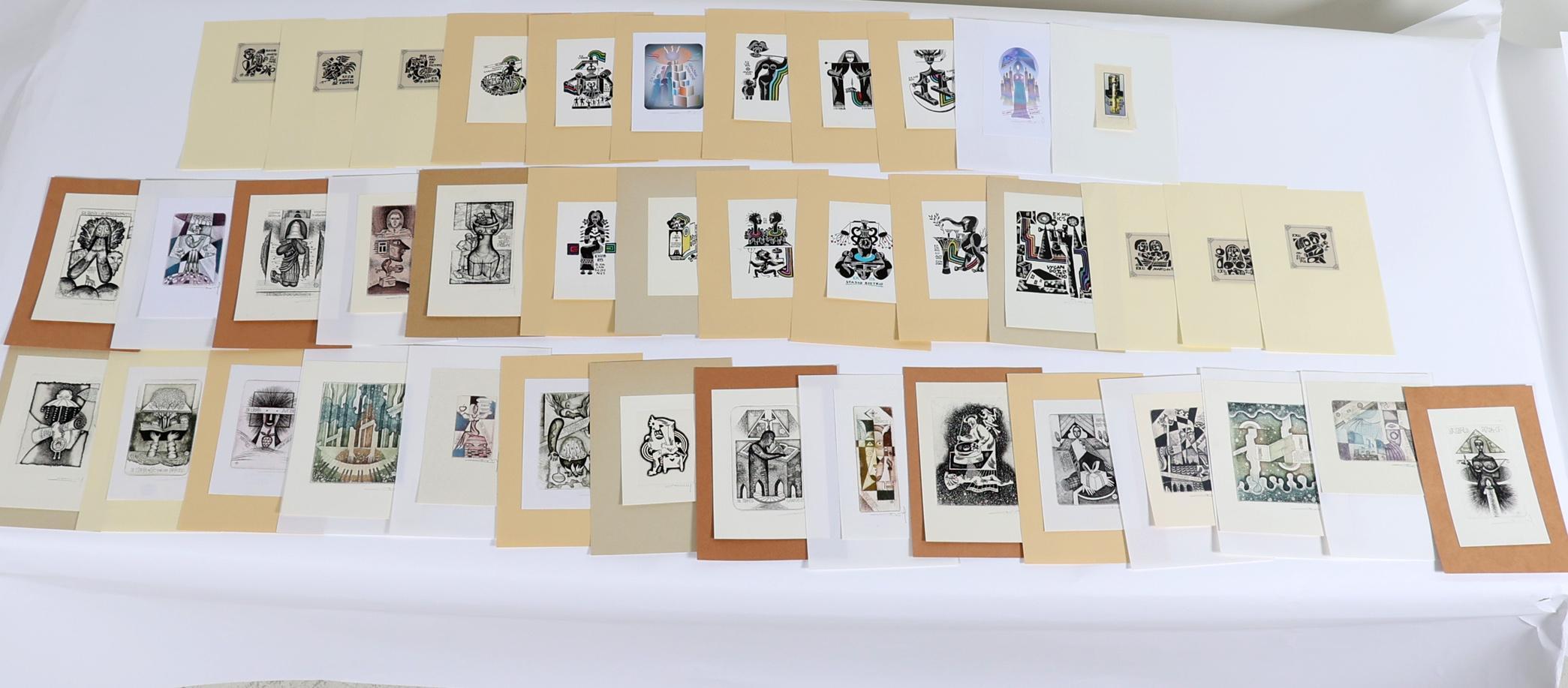 Cepauskan, A., plm. 40 exlibris, 20 x diepdruk - alle gesigneerd, rest hoogdruk. Opgeplakt.