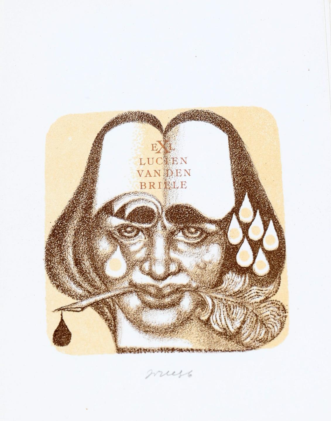 4) voor V.d. Briele, authorship, man with pan and paper, 65 stuks, gesigneerd, litho/2.