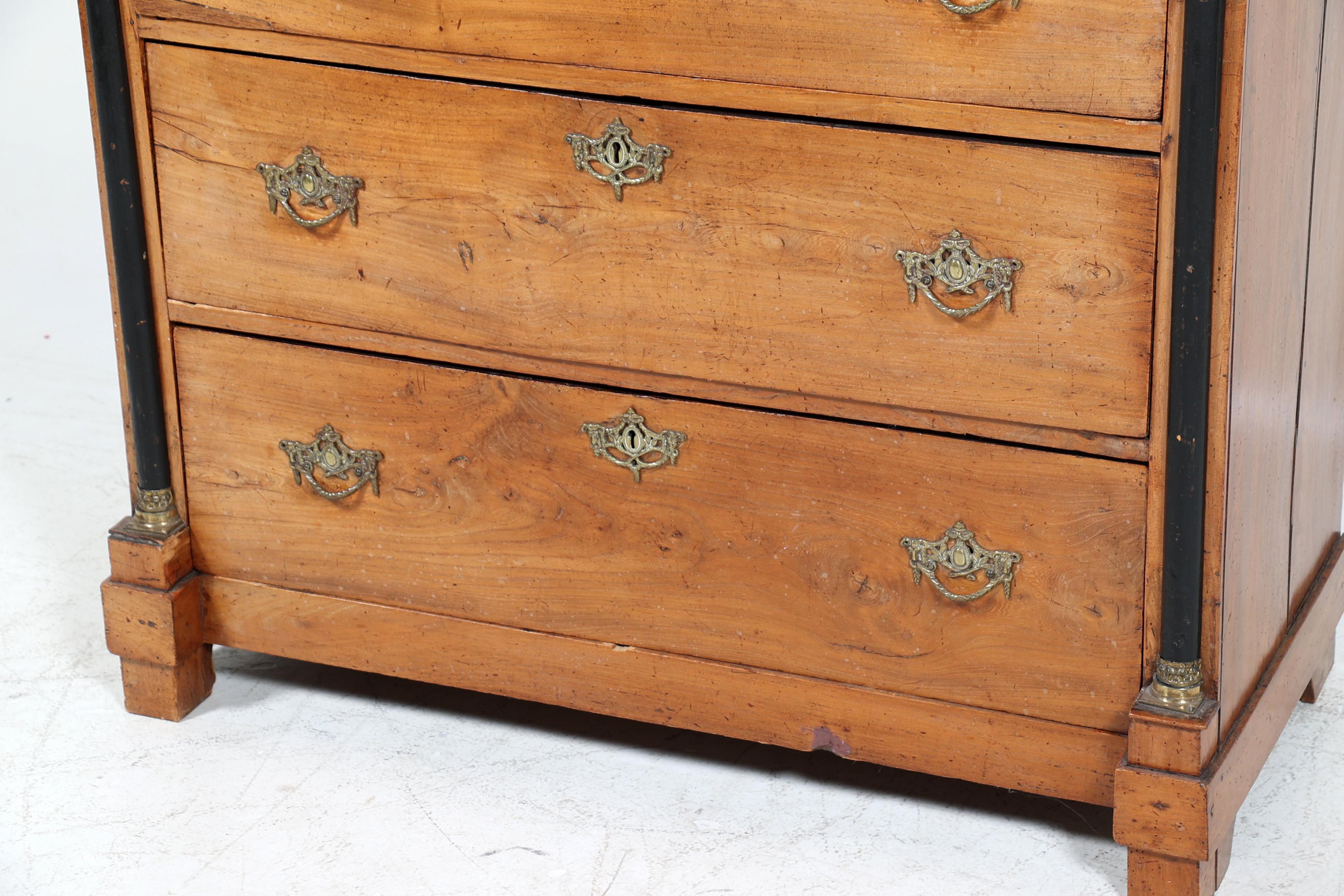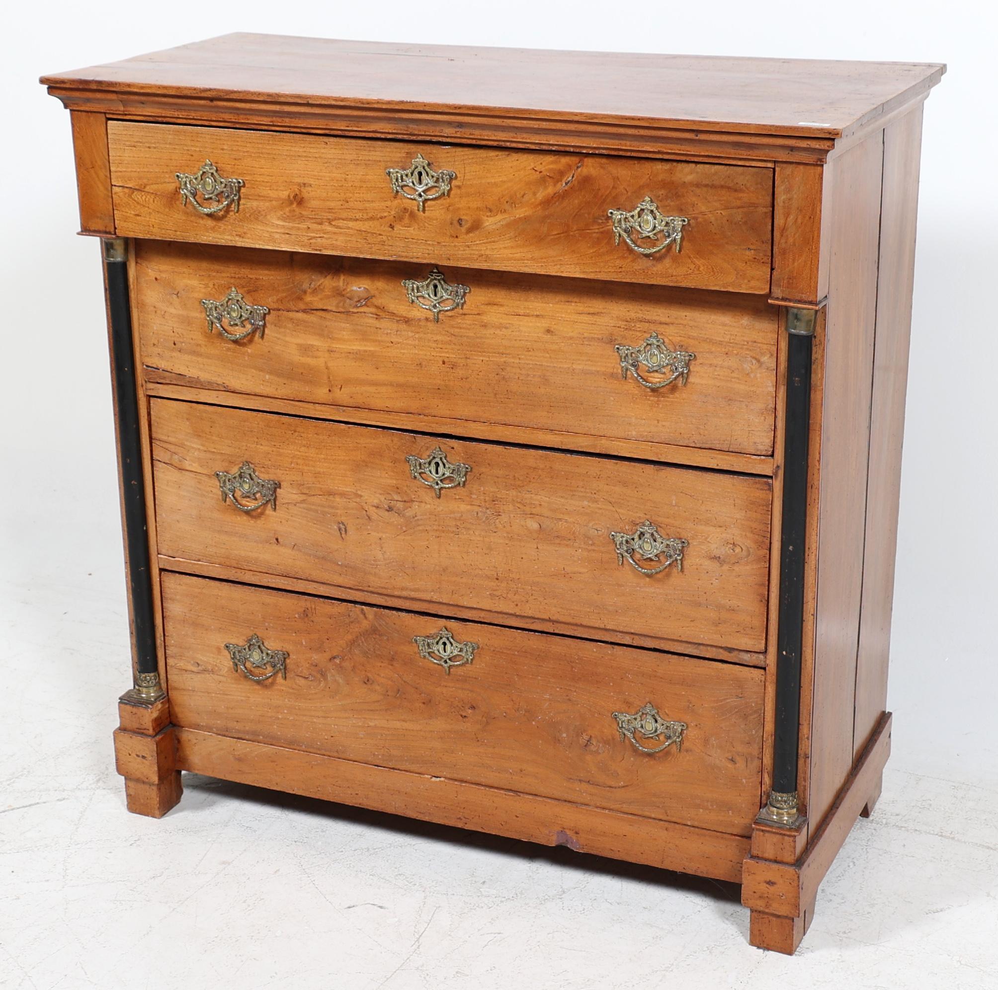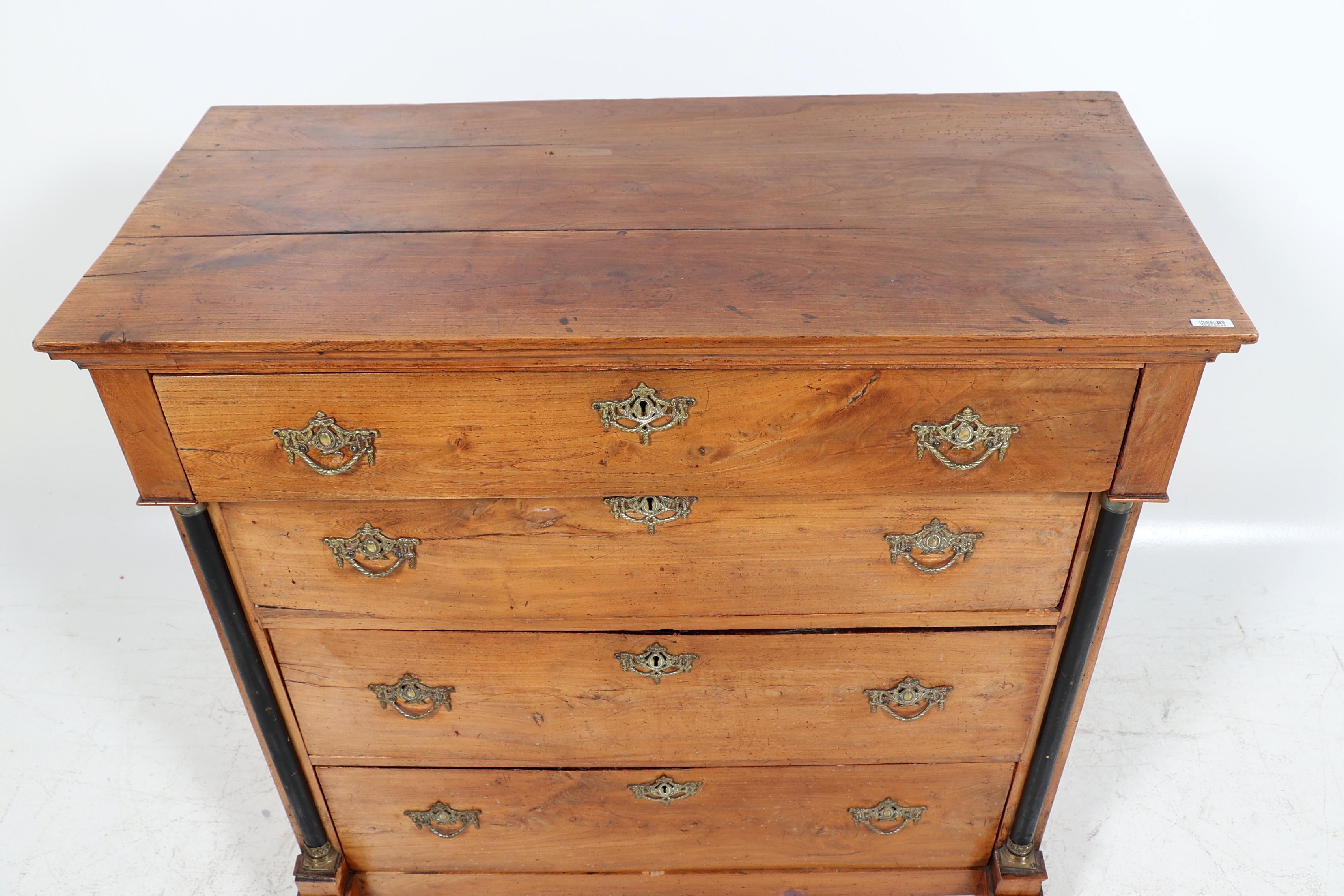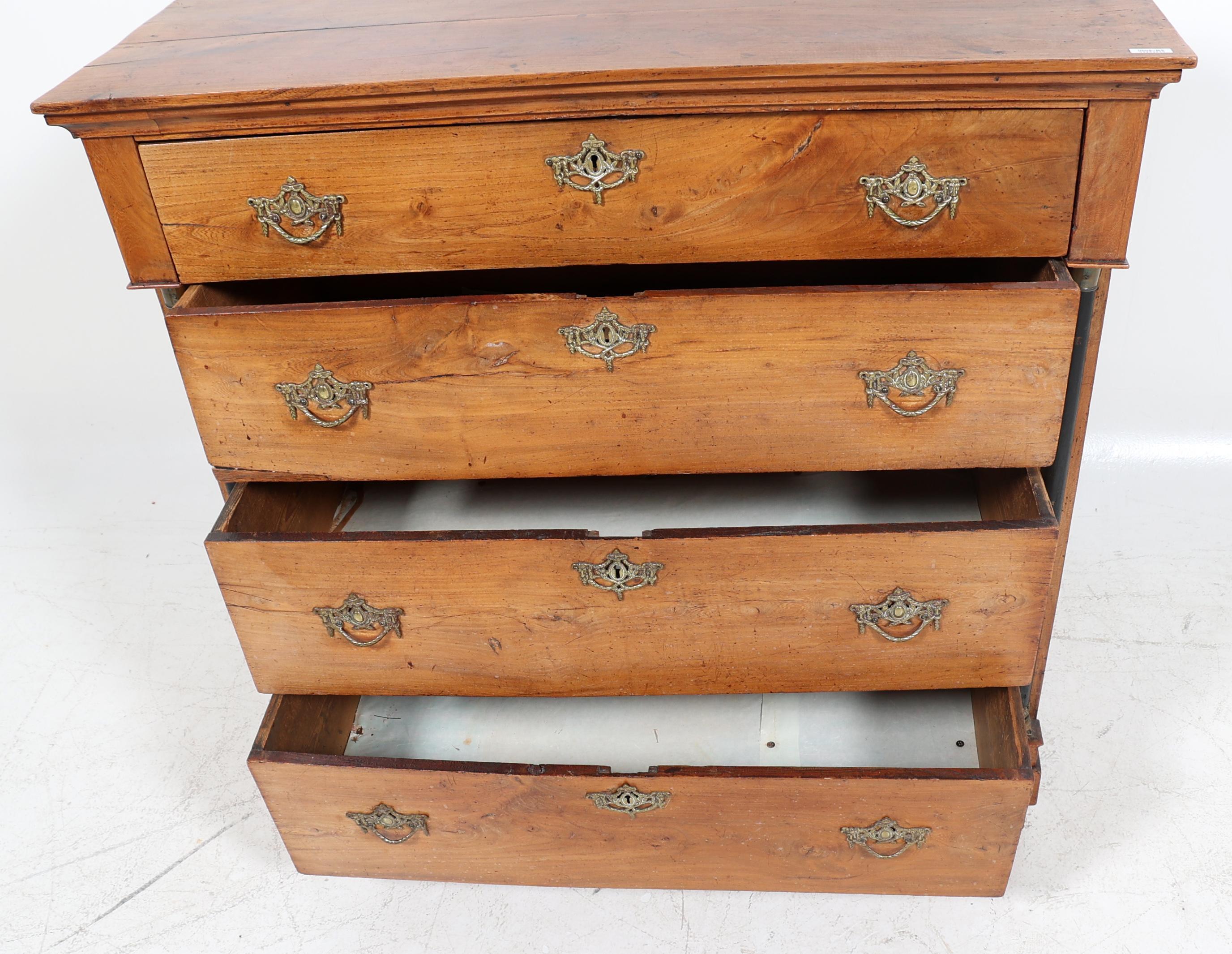 Antieke notenhouten 4-laden commode, h.100 x b.98 x d.47 cm.
