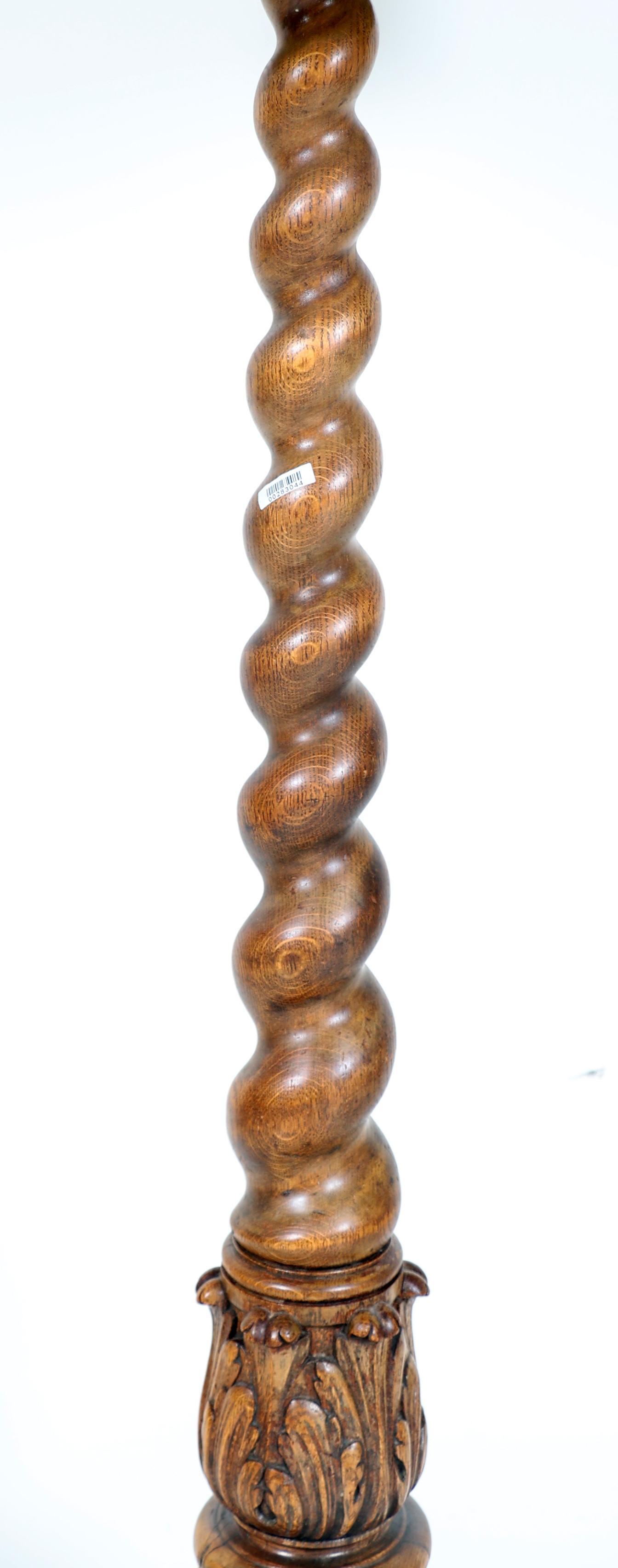 Oude eikenhouten lampvoet met getorste stam, h.180 cm.