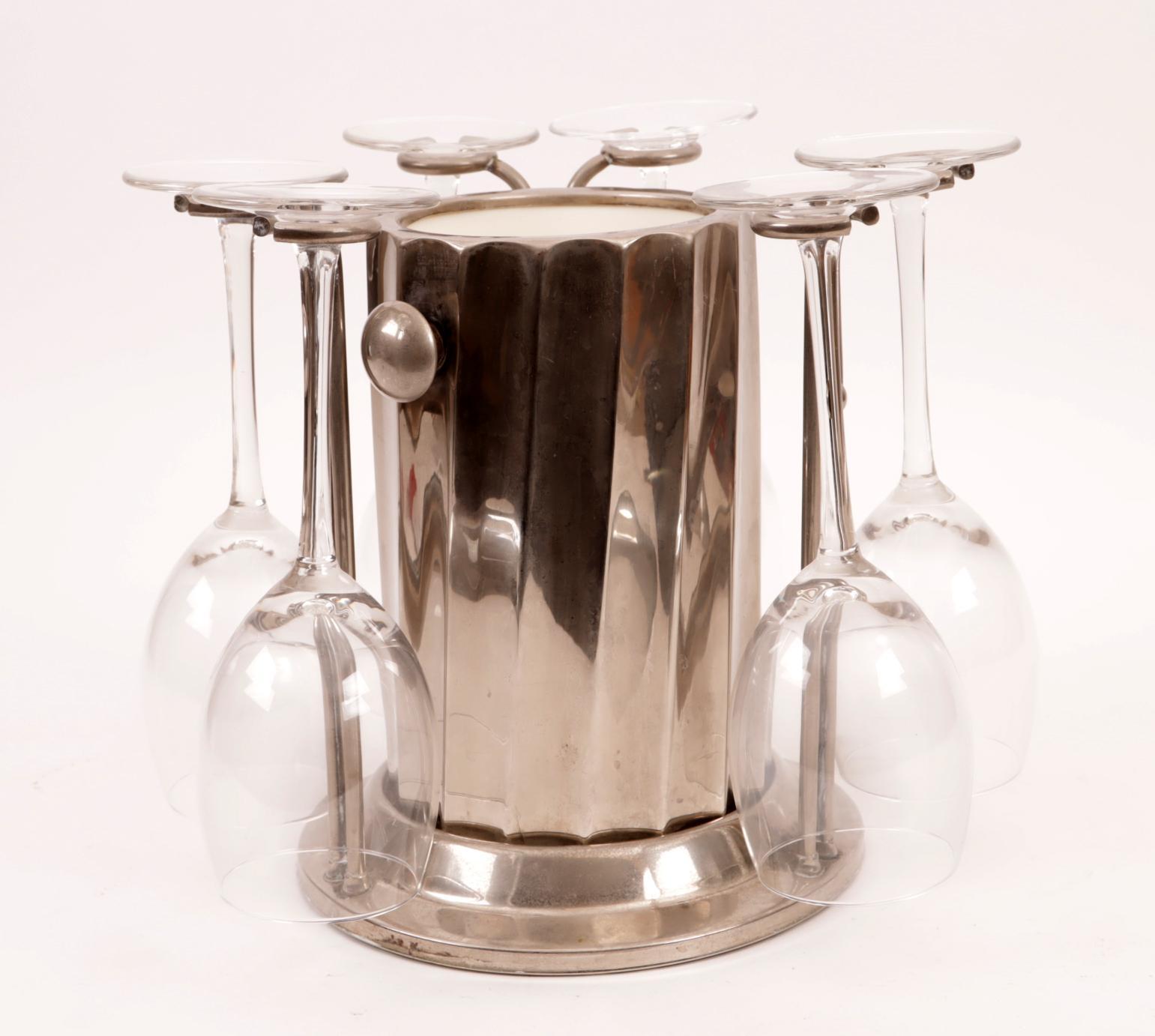 Wijnkoeler met 6 wijnglazen, h.24 cm.