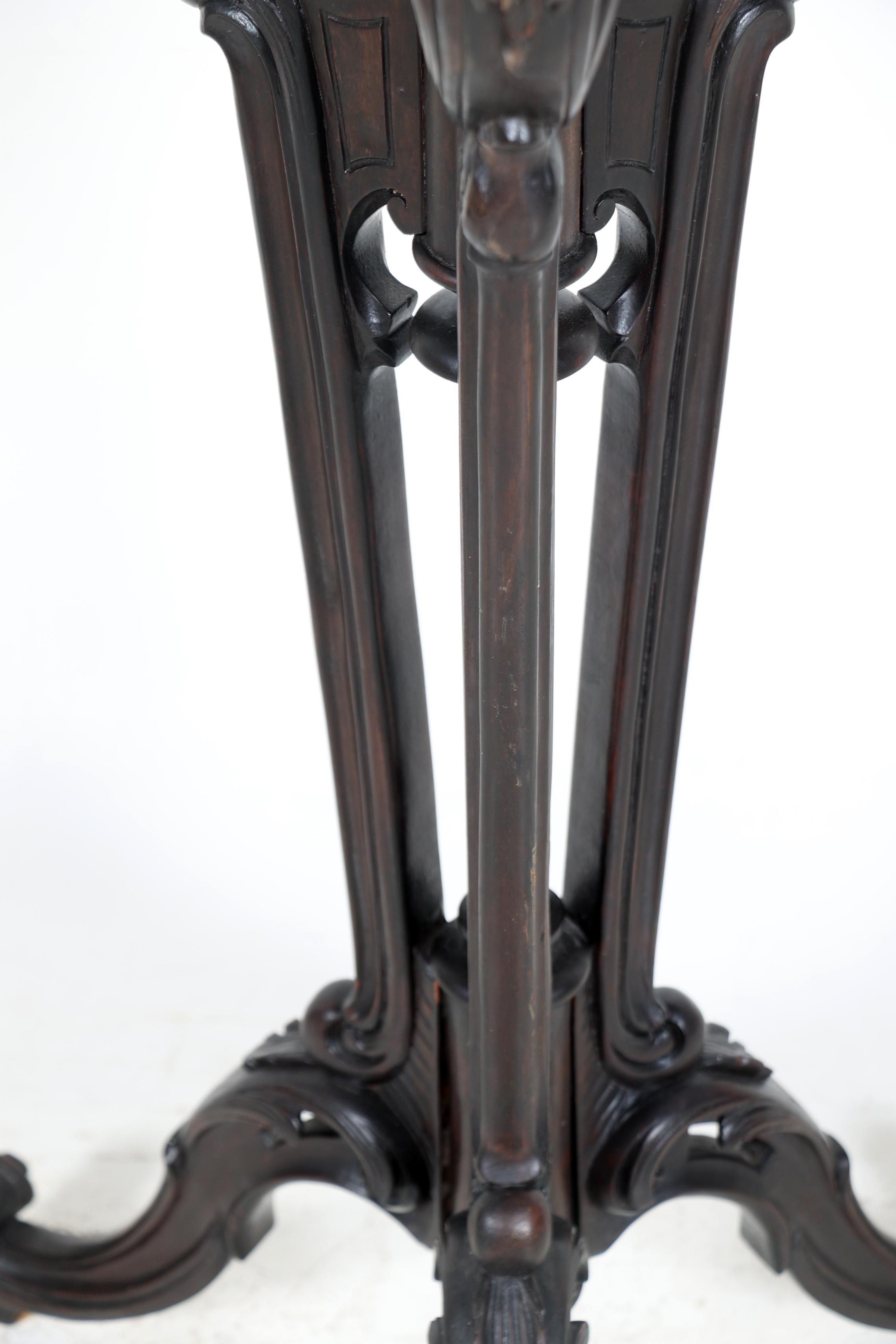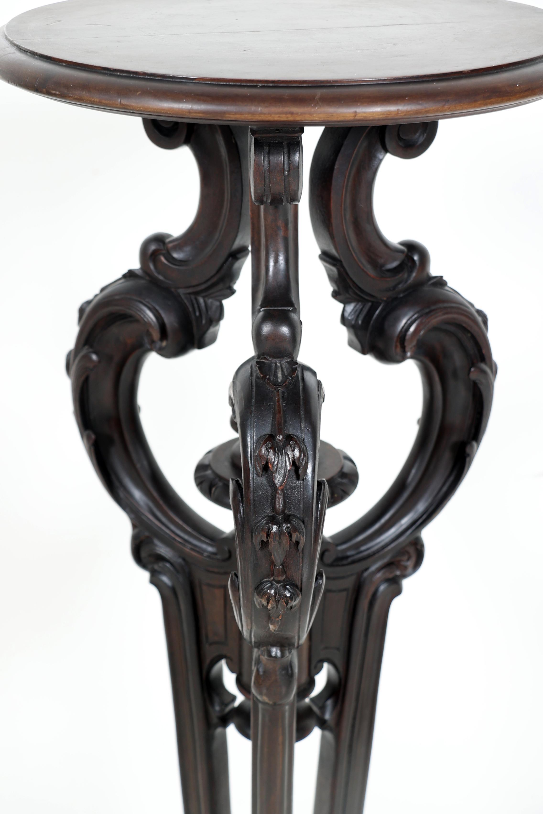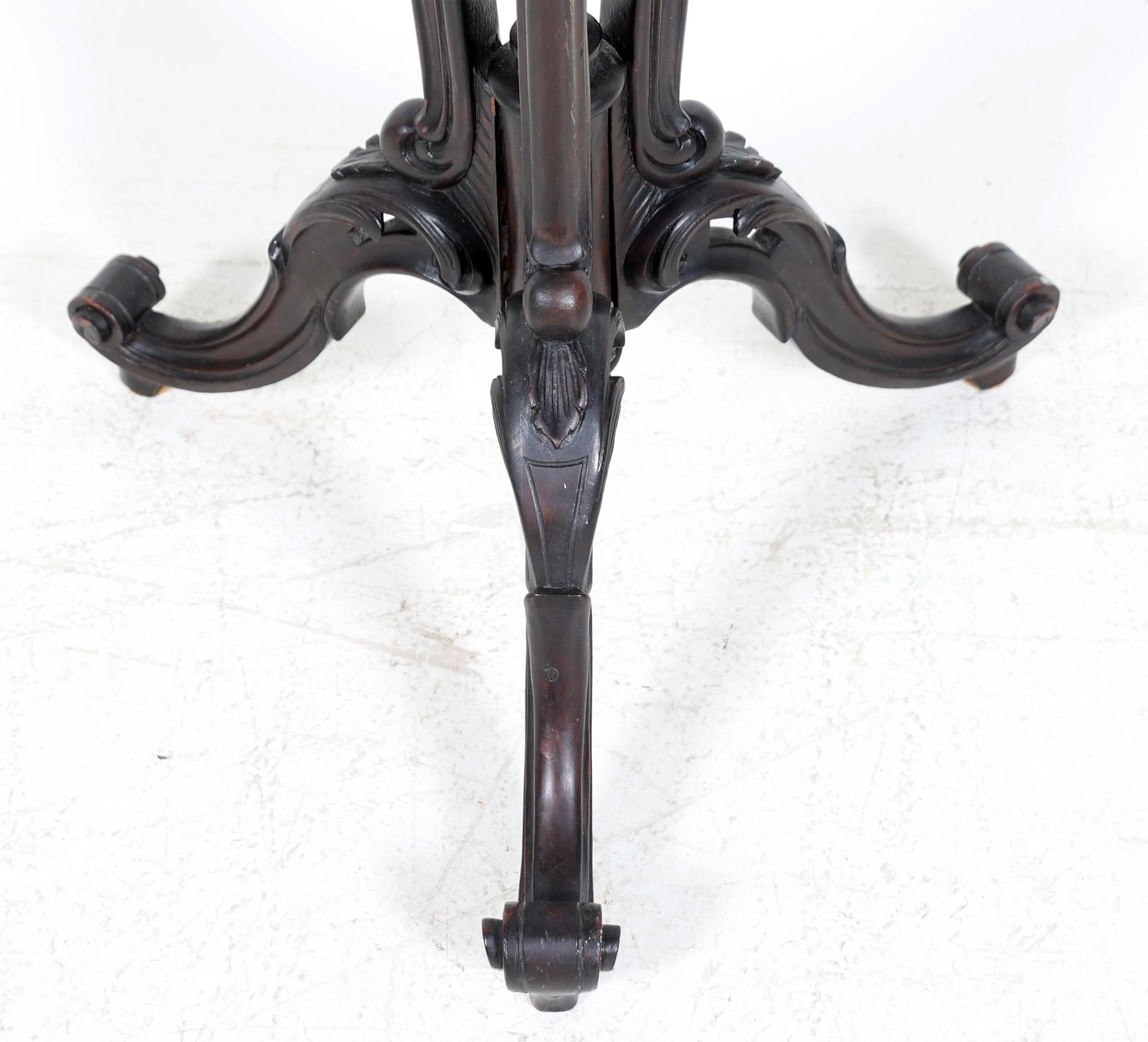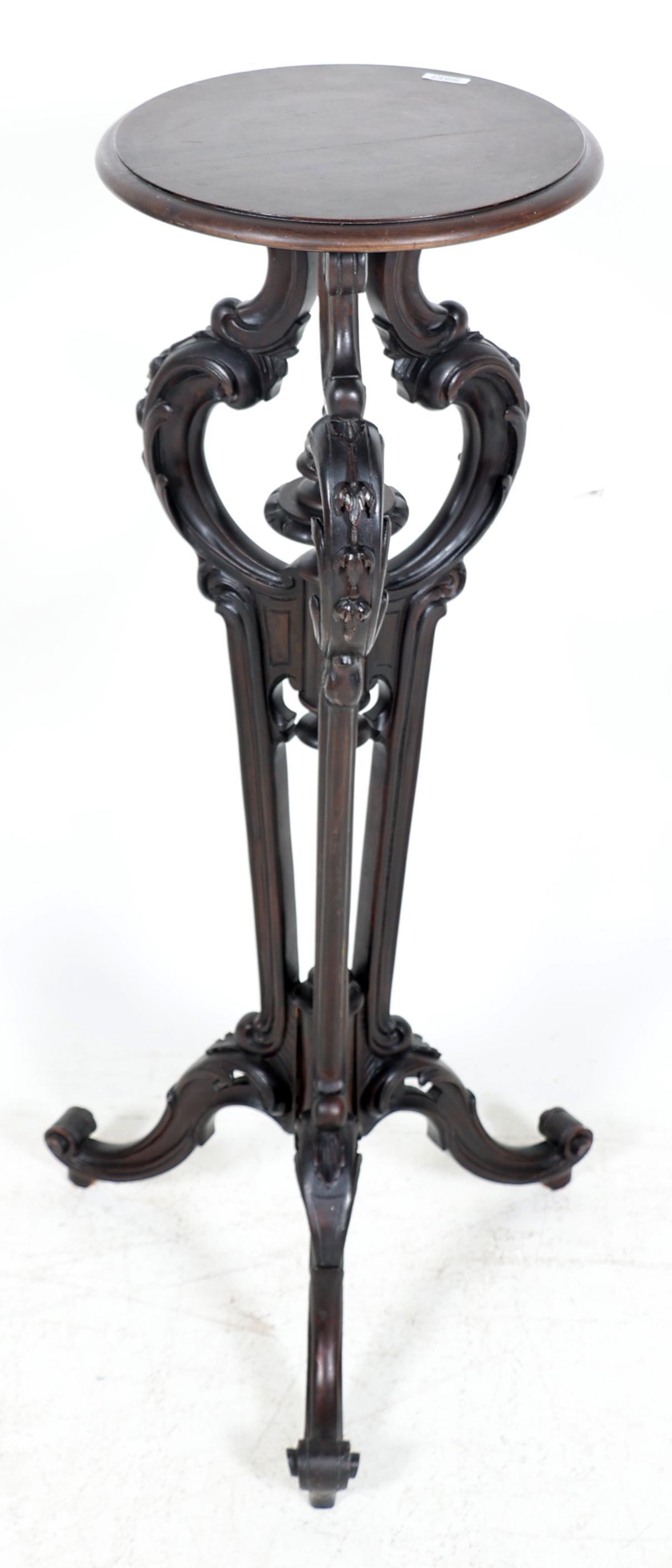 Antieke mahoniehouten plantentafel, h.100 x diam.33 cm.