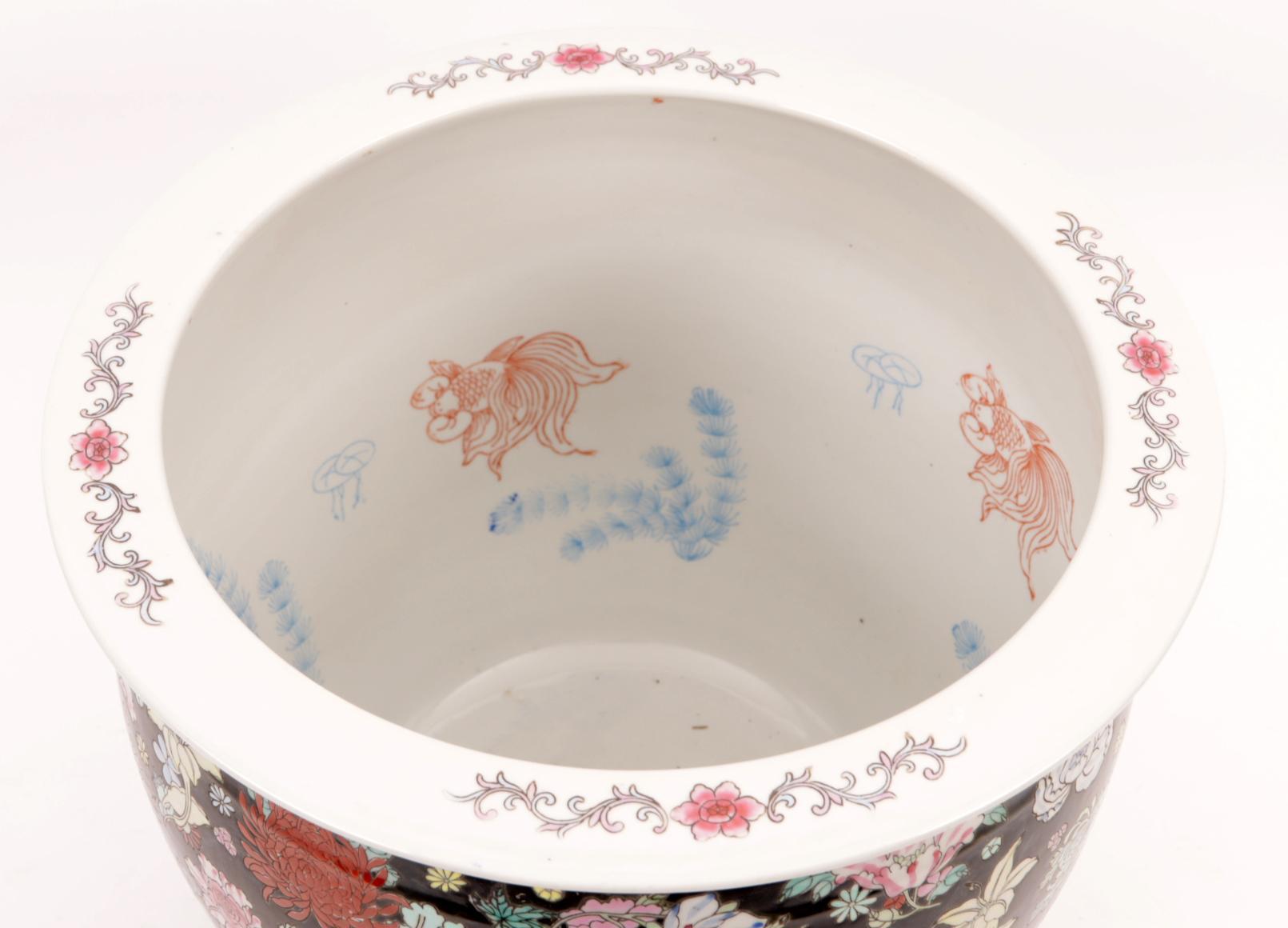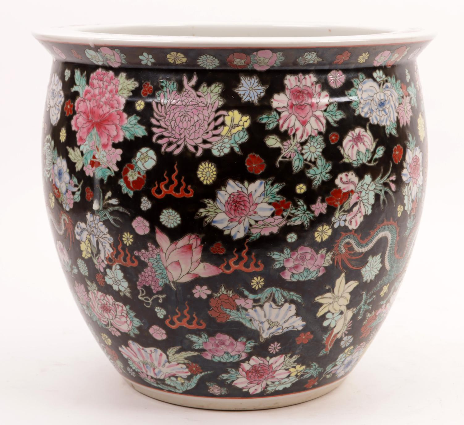 Gepolychromeerde Chinees porseleinen cache pot met decor van draken en bloemen, h.28 cm.