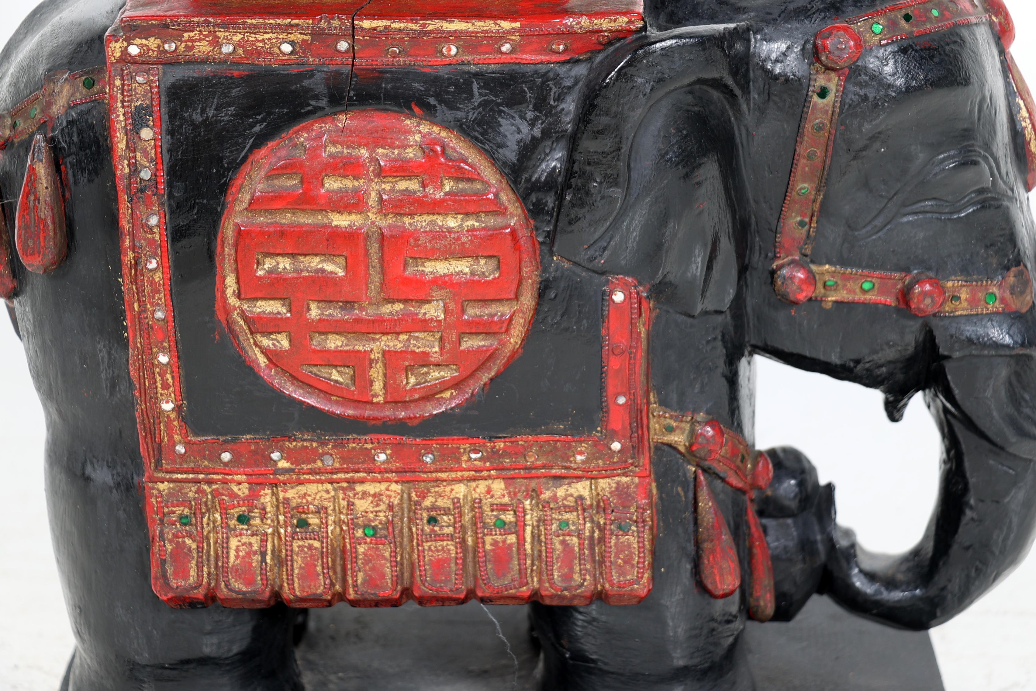 Houten krukje i.v.v. een olifant, h.44 cm.
