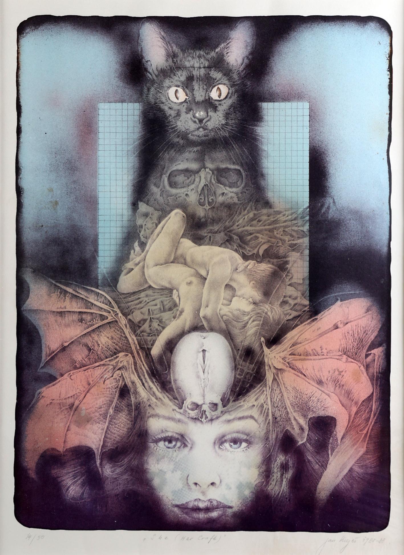 Jan KrejčÍ (1942-2001), 'She (her craft)', lithografie, genummerd 14/50 en gedateerd 1987-88, 44 x 32 cm.