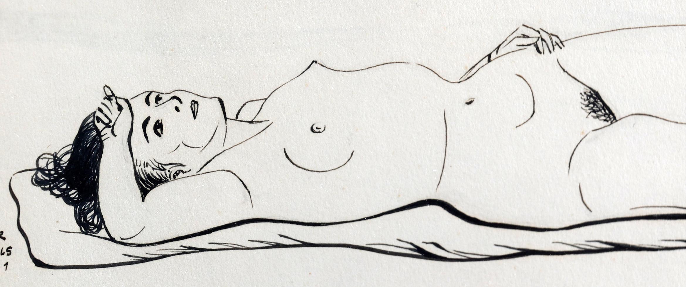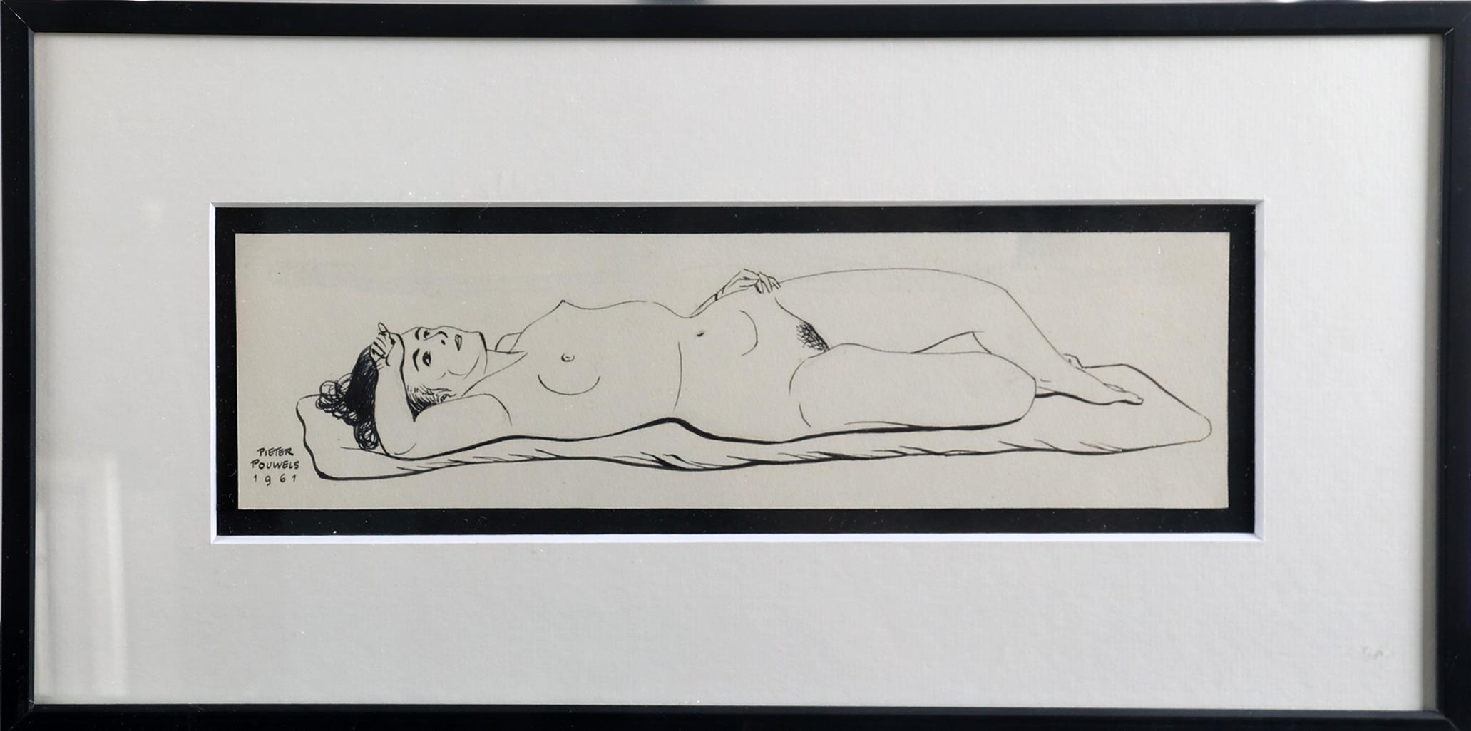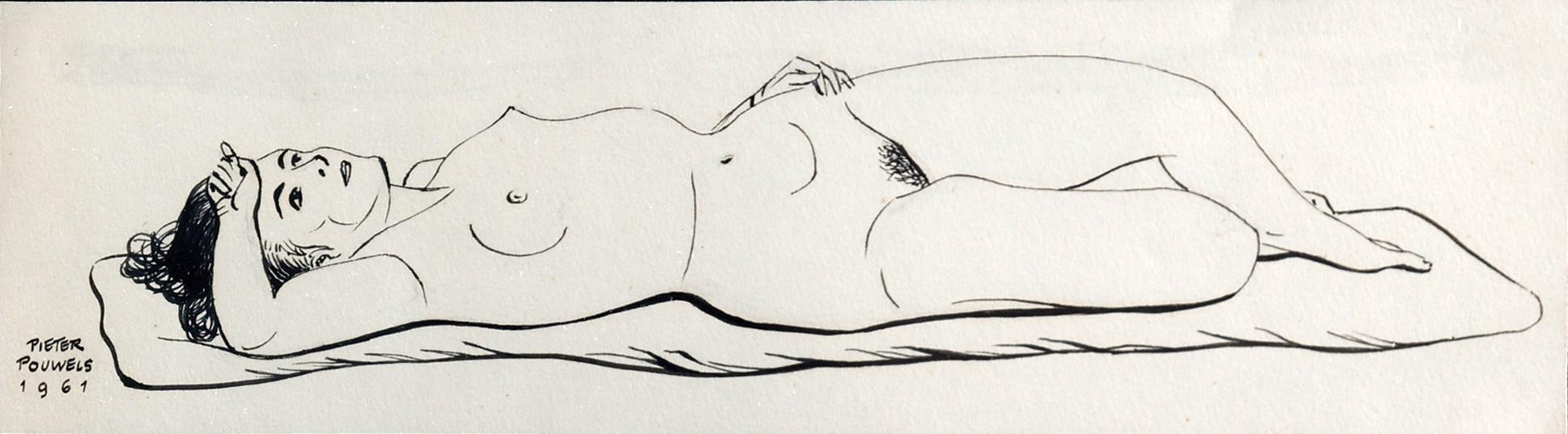 Pieter Pauwels, Vrouwelijk naakt, druk, gedateerd 1961, 7,5 x 26 cm.