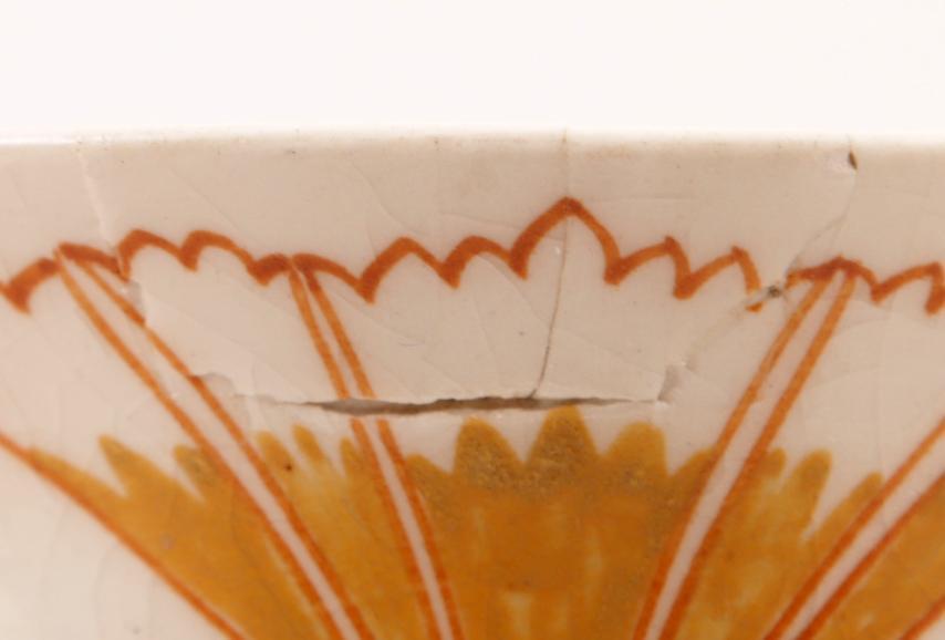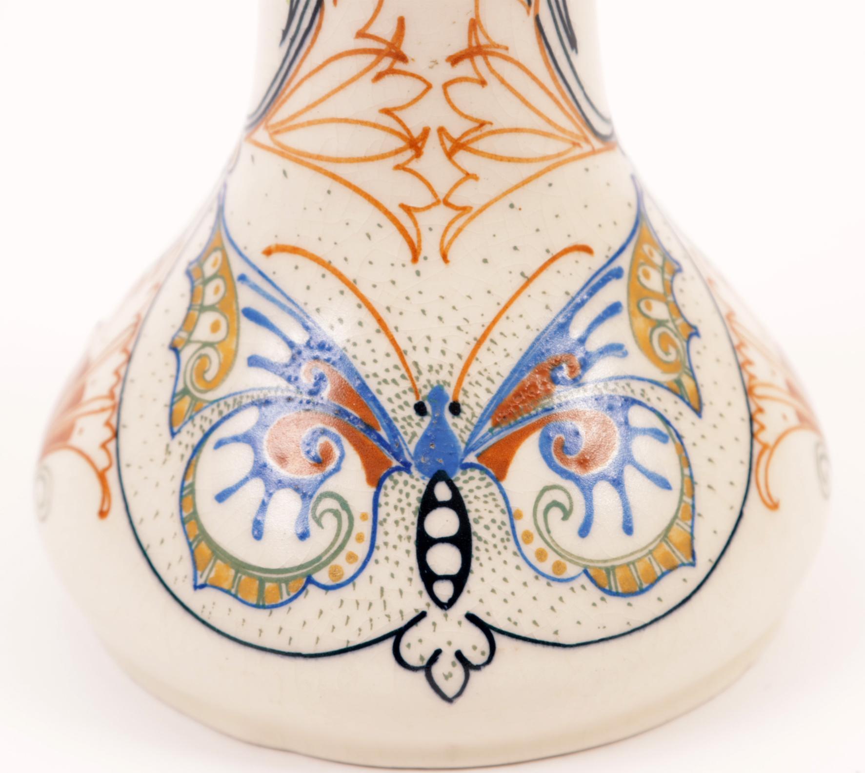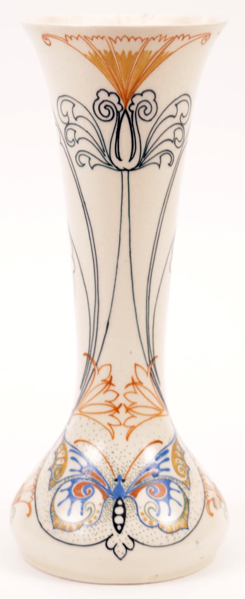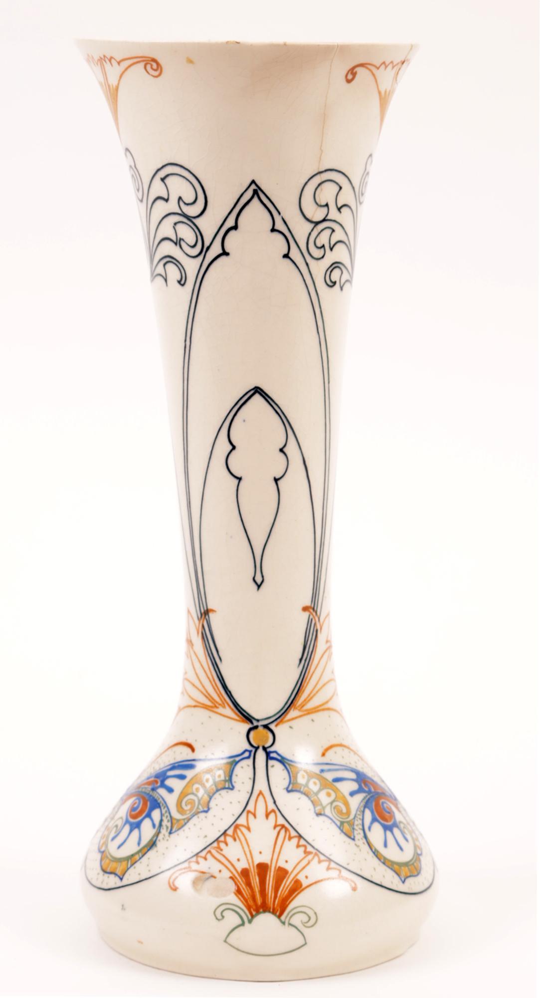Arnhems plateel vaas, h.25 cm. (stukje gelijmd)