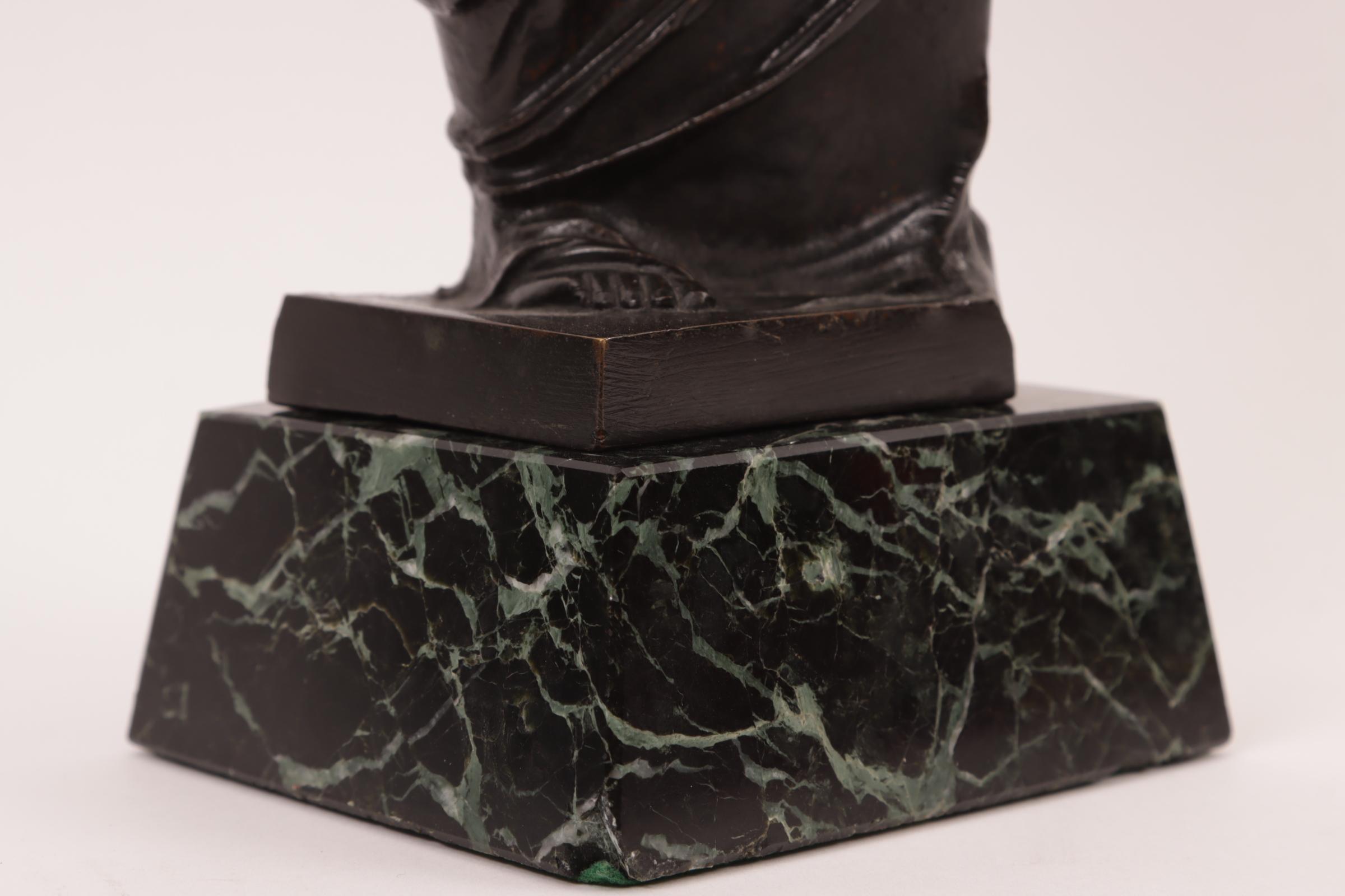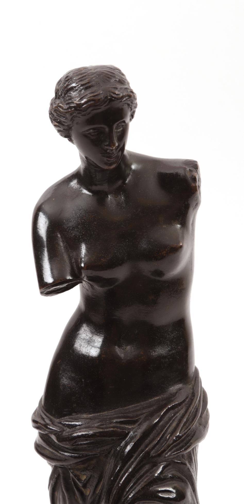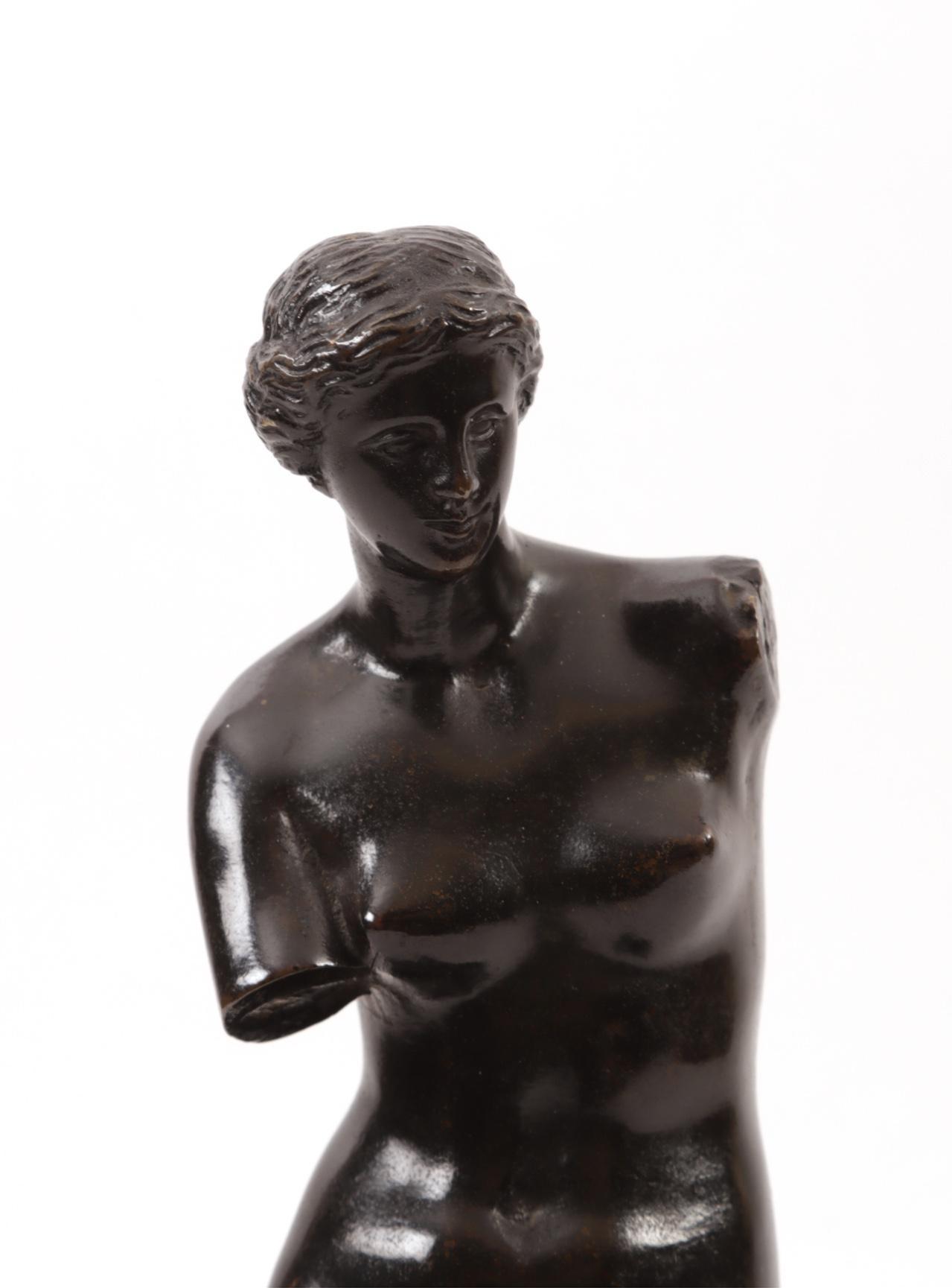 Bronzen sculptuur van de 'Venus de Milo' op groen marmeren voetstuk, gemerkt op achterzijde Ernst Kraas, h.30 cm.