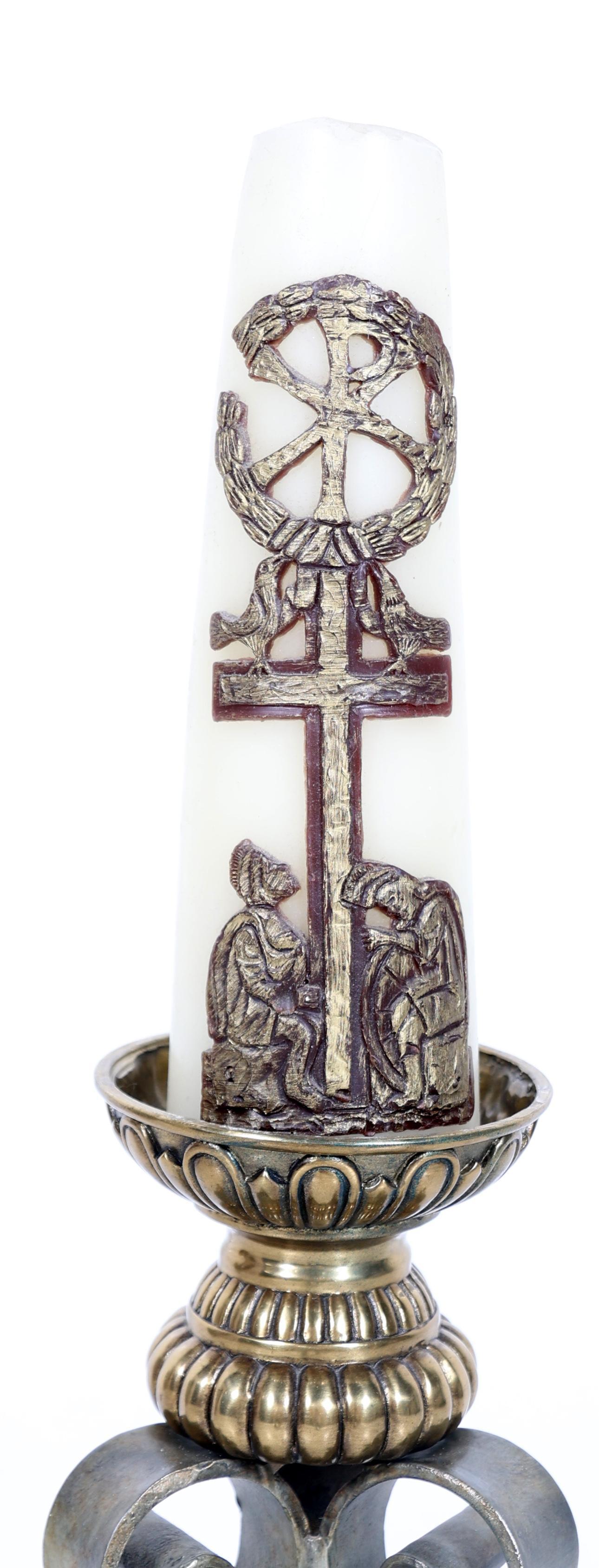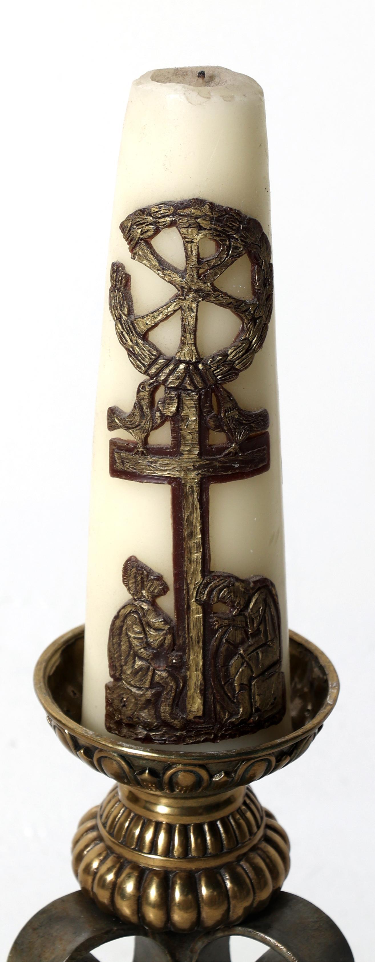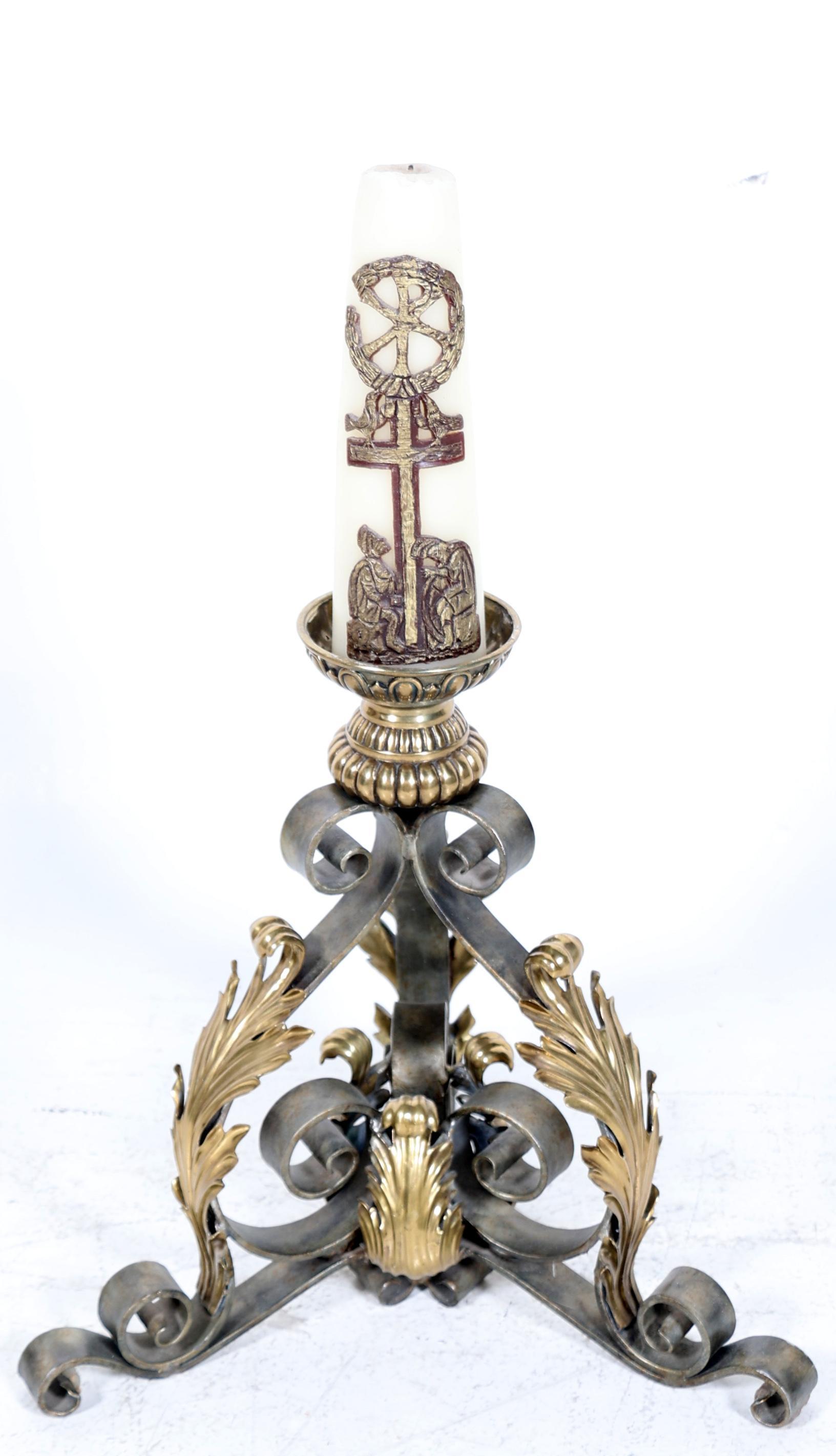 Metalen kaarsenstandaard met kaars, h.65 cm.