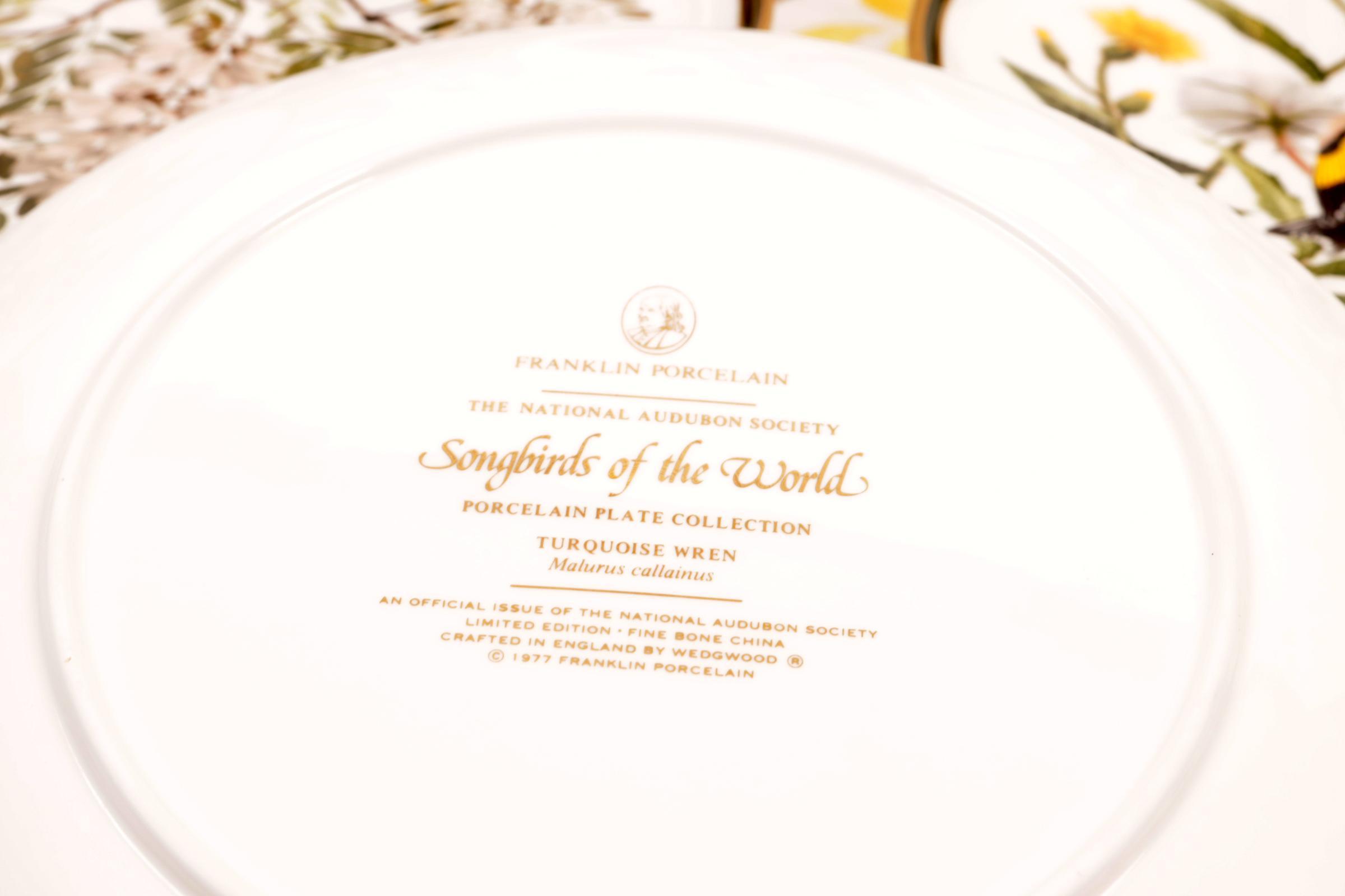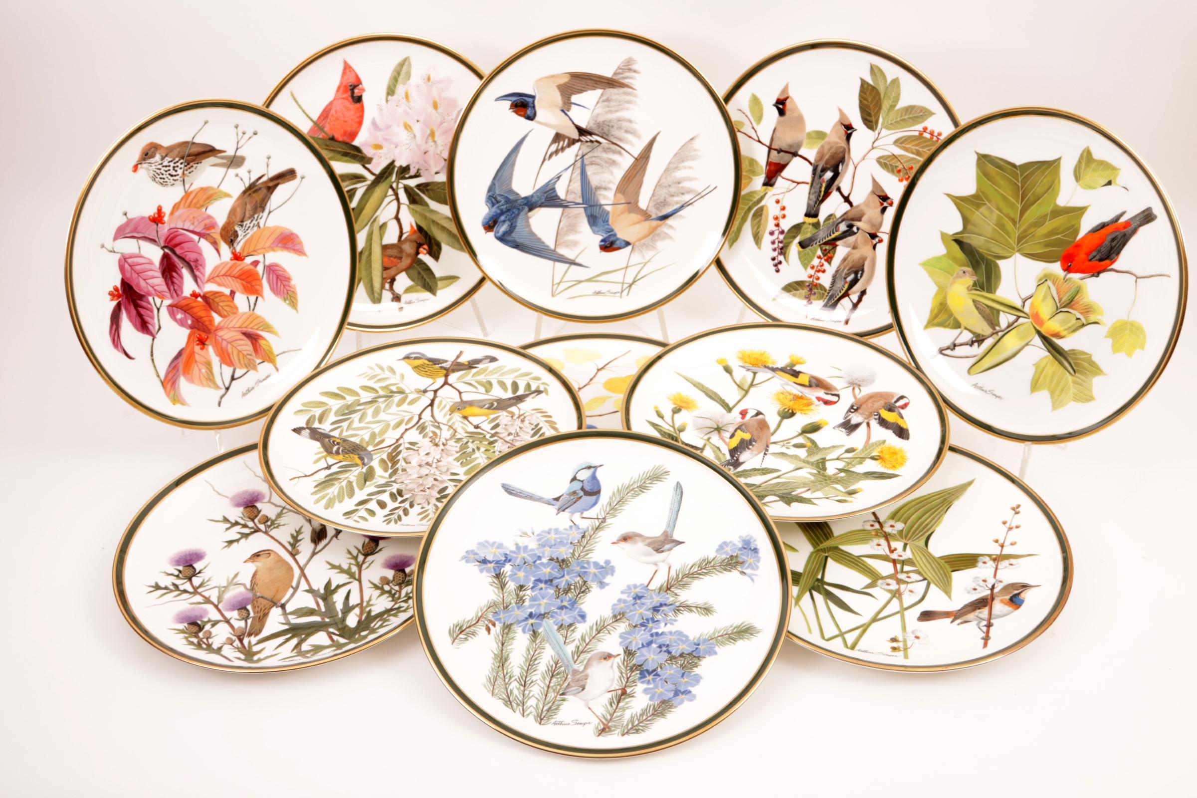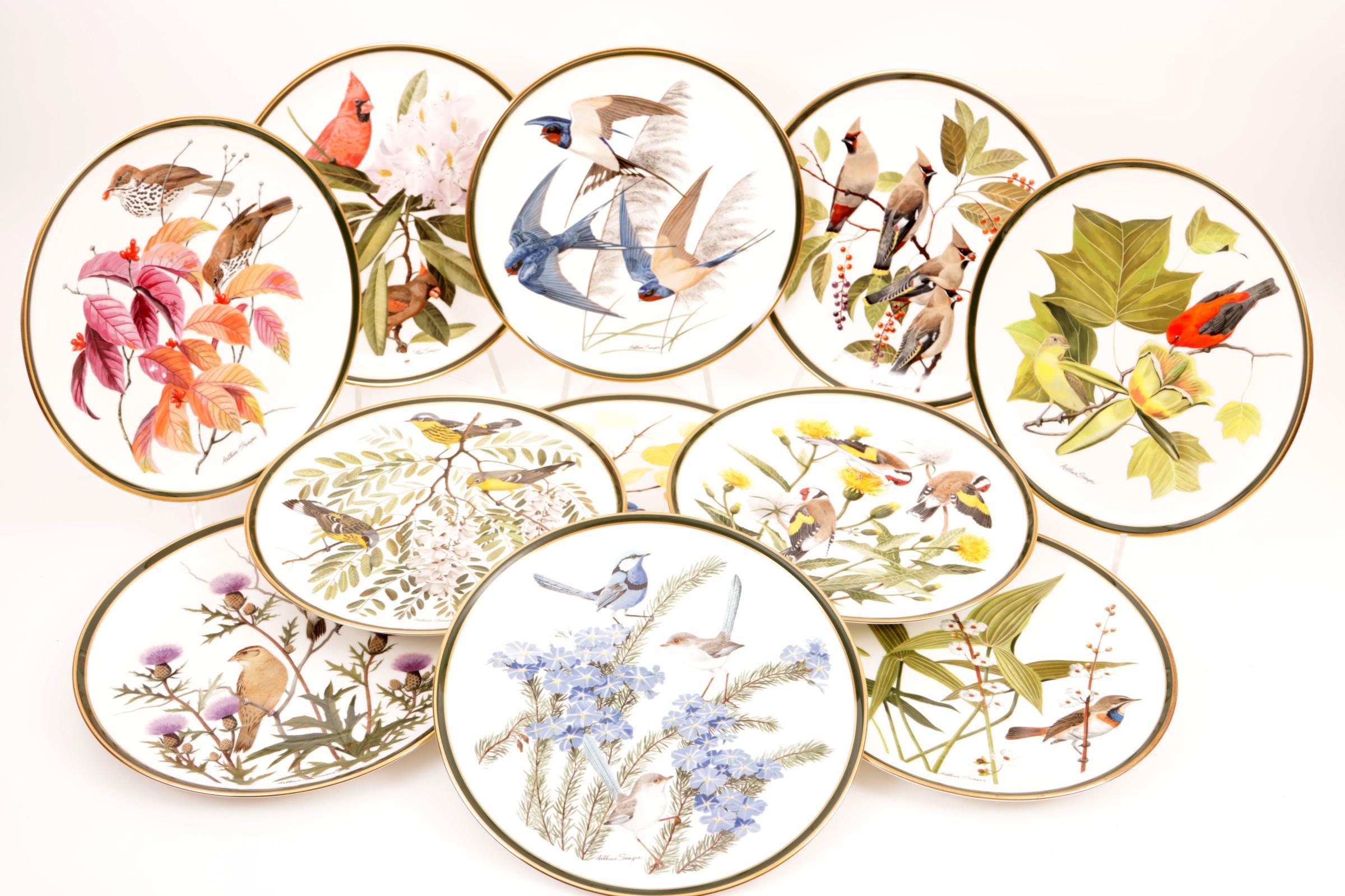 11 Met vogels gedecoreerde Franklin porseleinen borden, diam.27 cm.