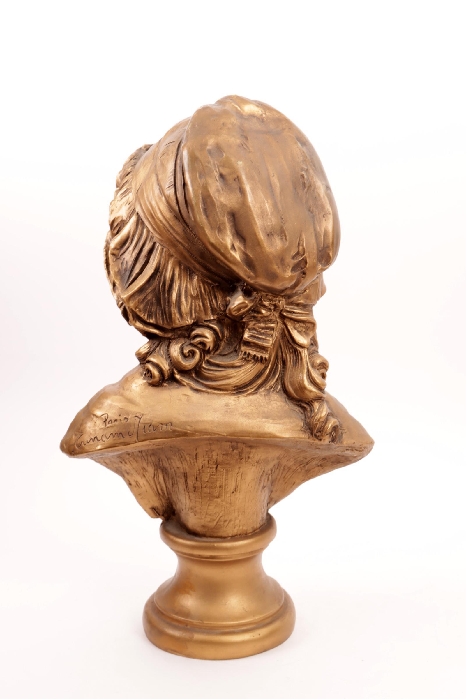 Goudkleurig borstbeeld van een meisje, h.45 cm.