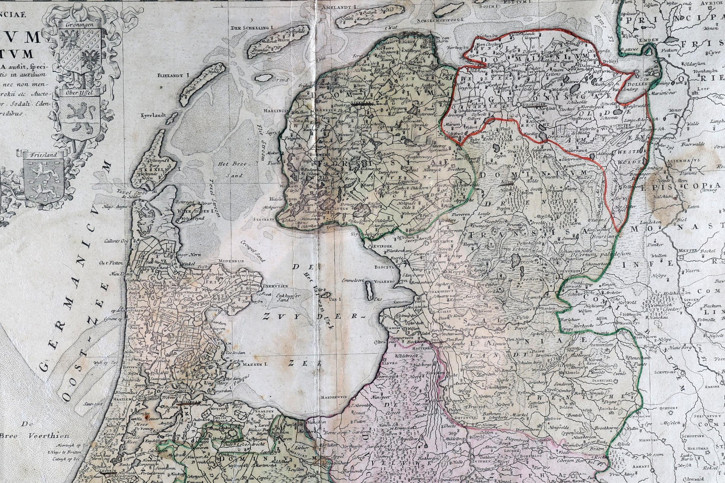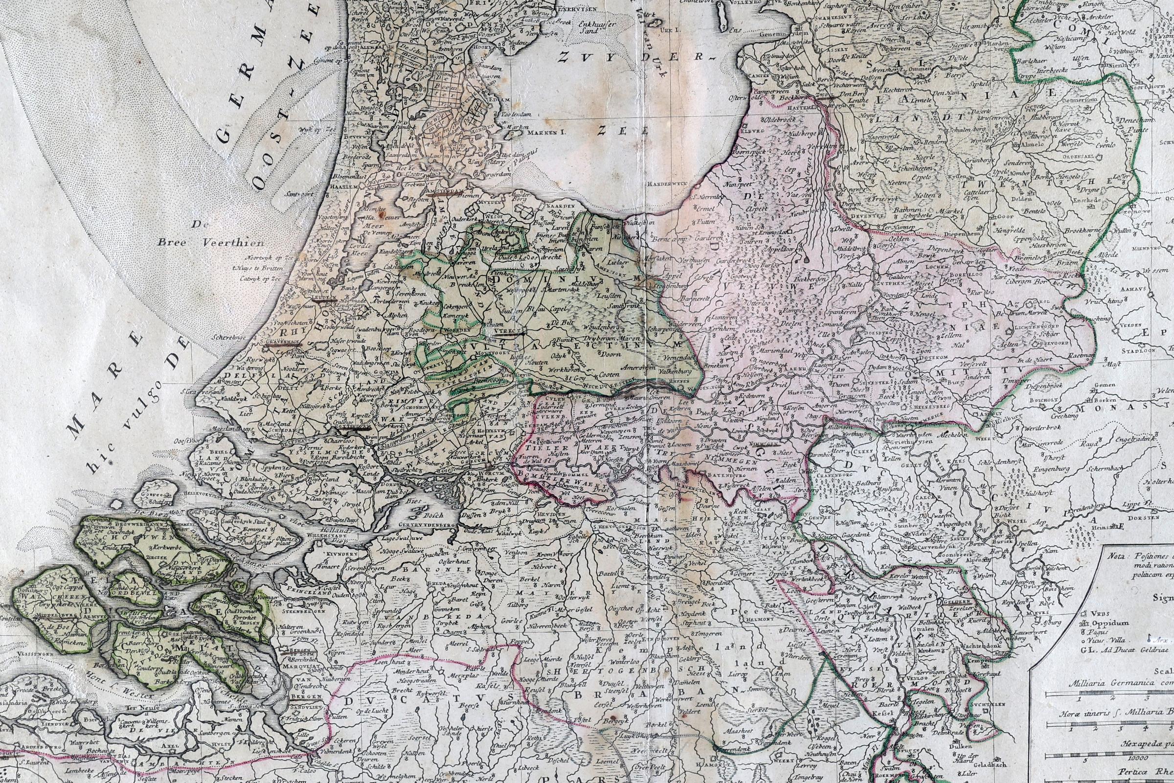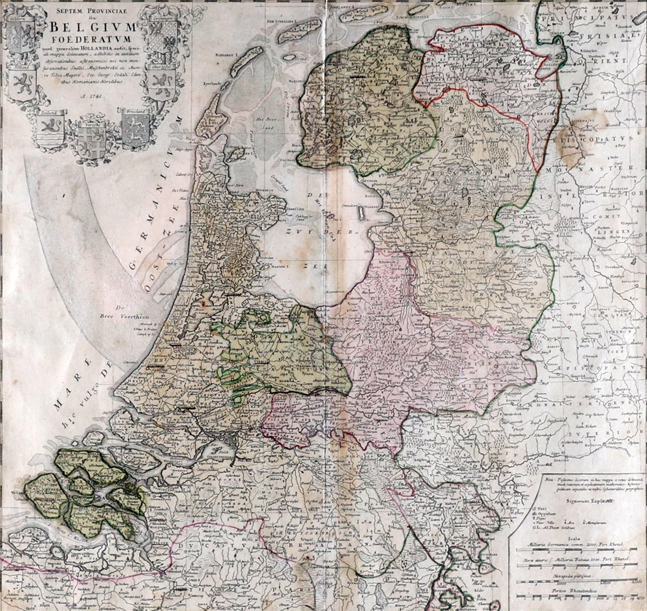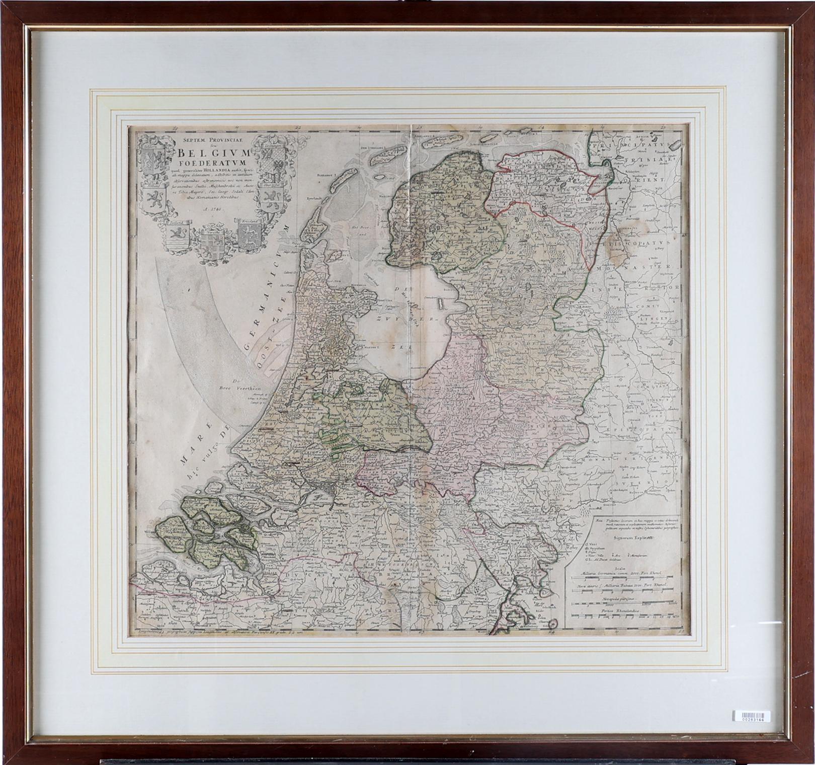 Antieke kaart van de 7 provinciën, circa 1748, 'Septem Provinciae Belgium Foederatum', Heribidus Homanni, 47 x 52 cm.