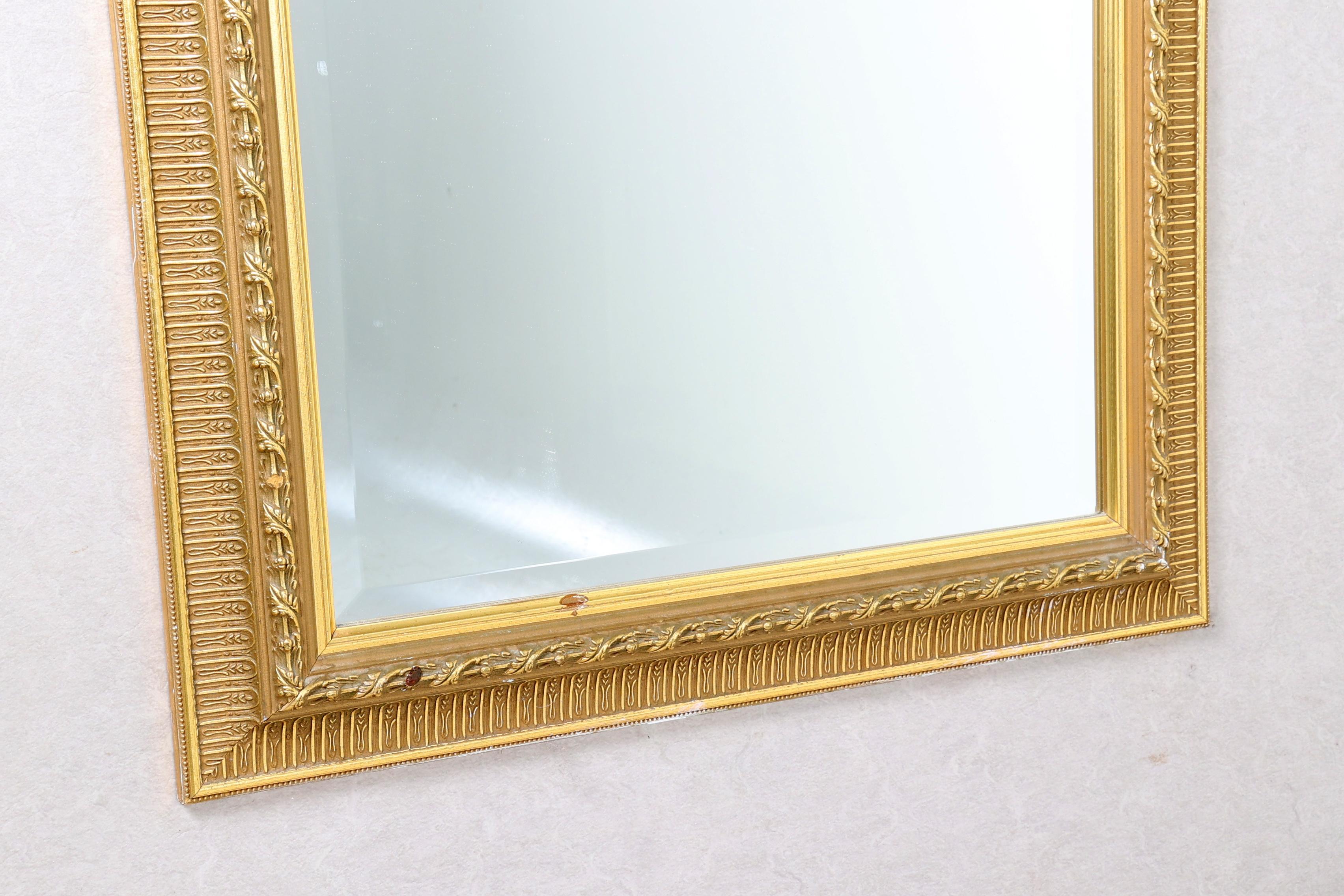 Geslepen spiegel in goudkleurige lijst, h.145 x b.65 cm.