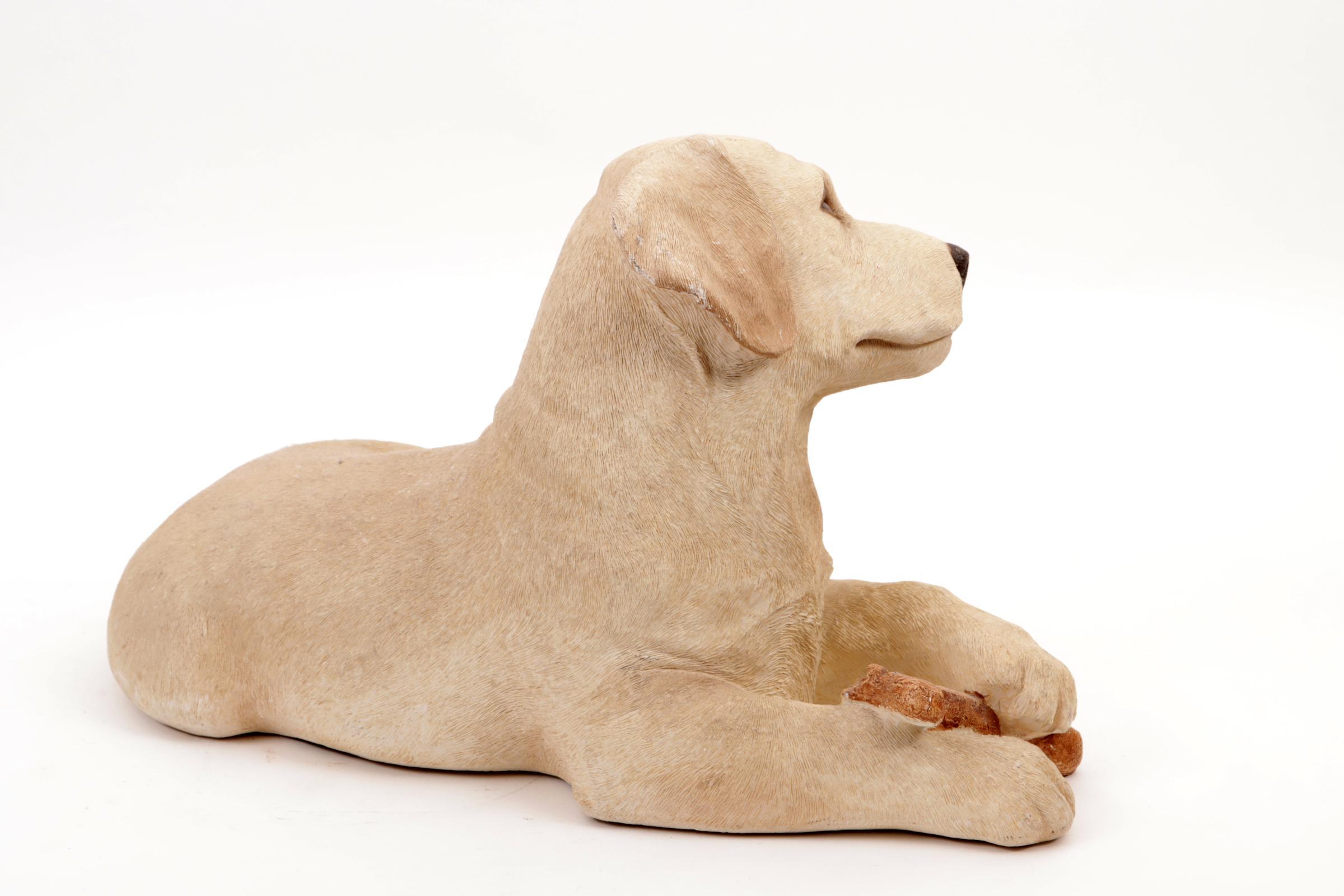 Aardewerken beeld van een labradorpup, h.26 x L.42 x d.22 cm.