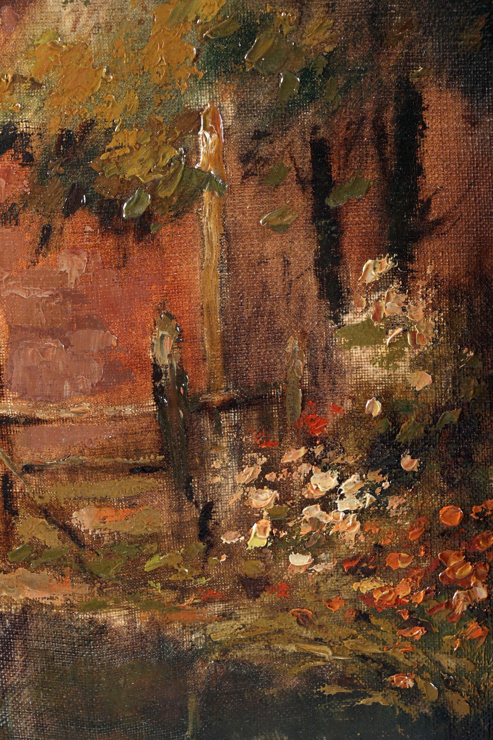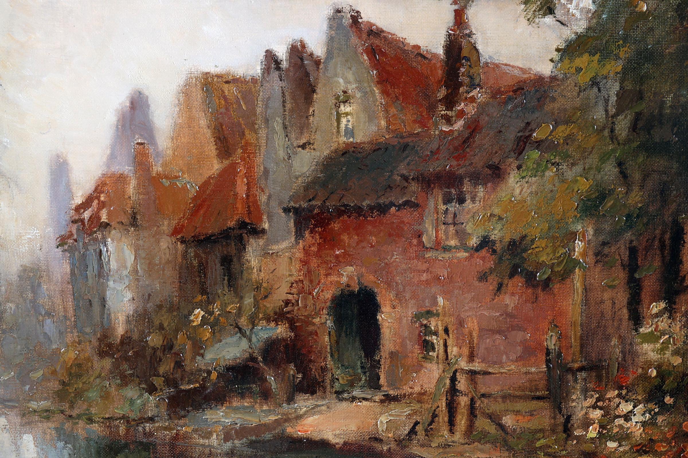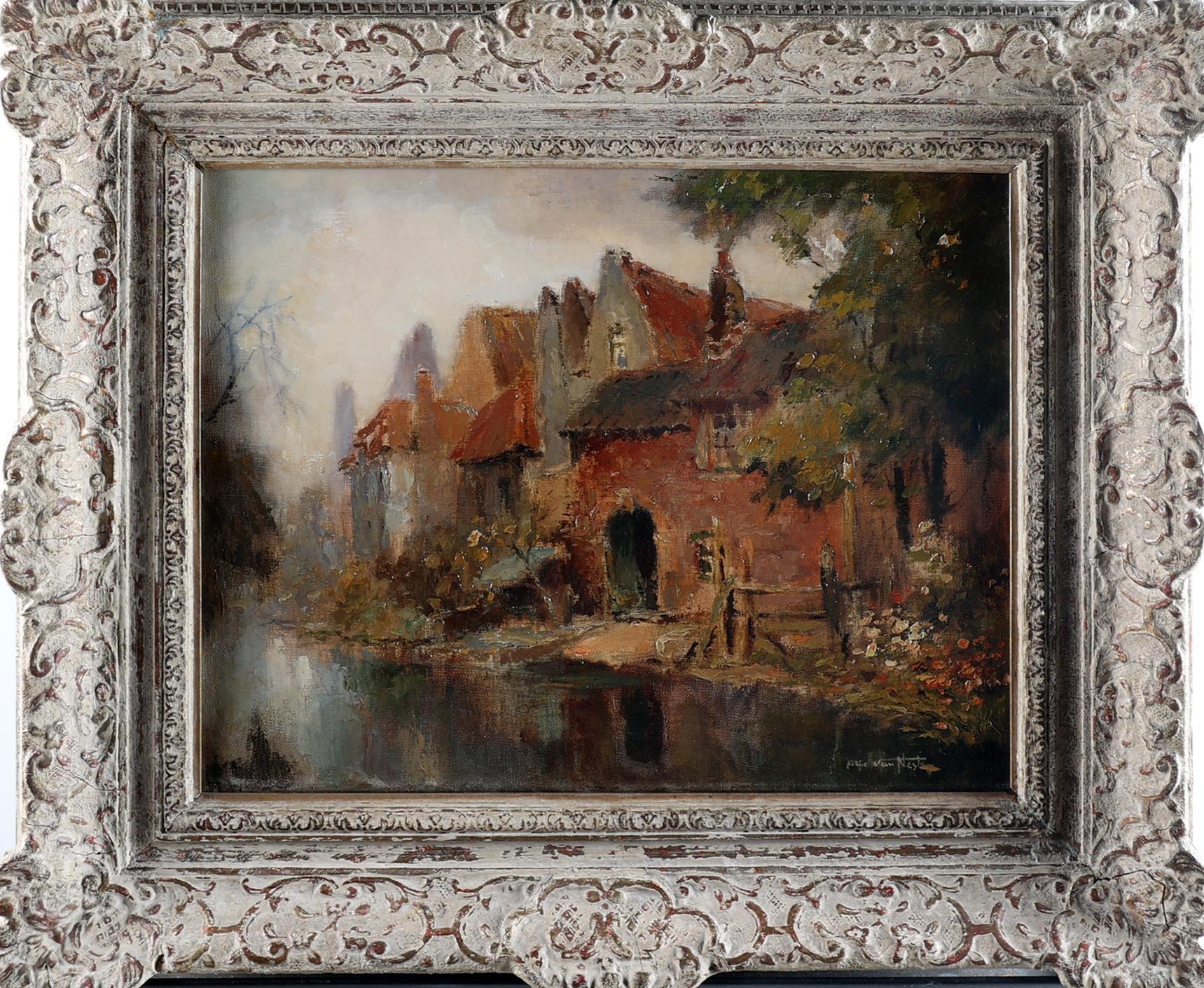 Alfred van Neste (1874-1969), Zicht op een huis met rode gevel, olieverf op doek, 37 x 45 cm.