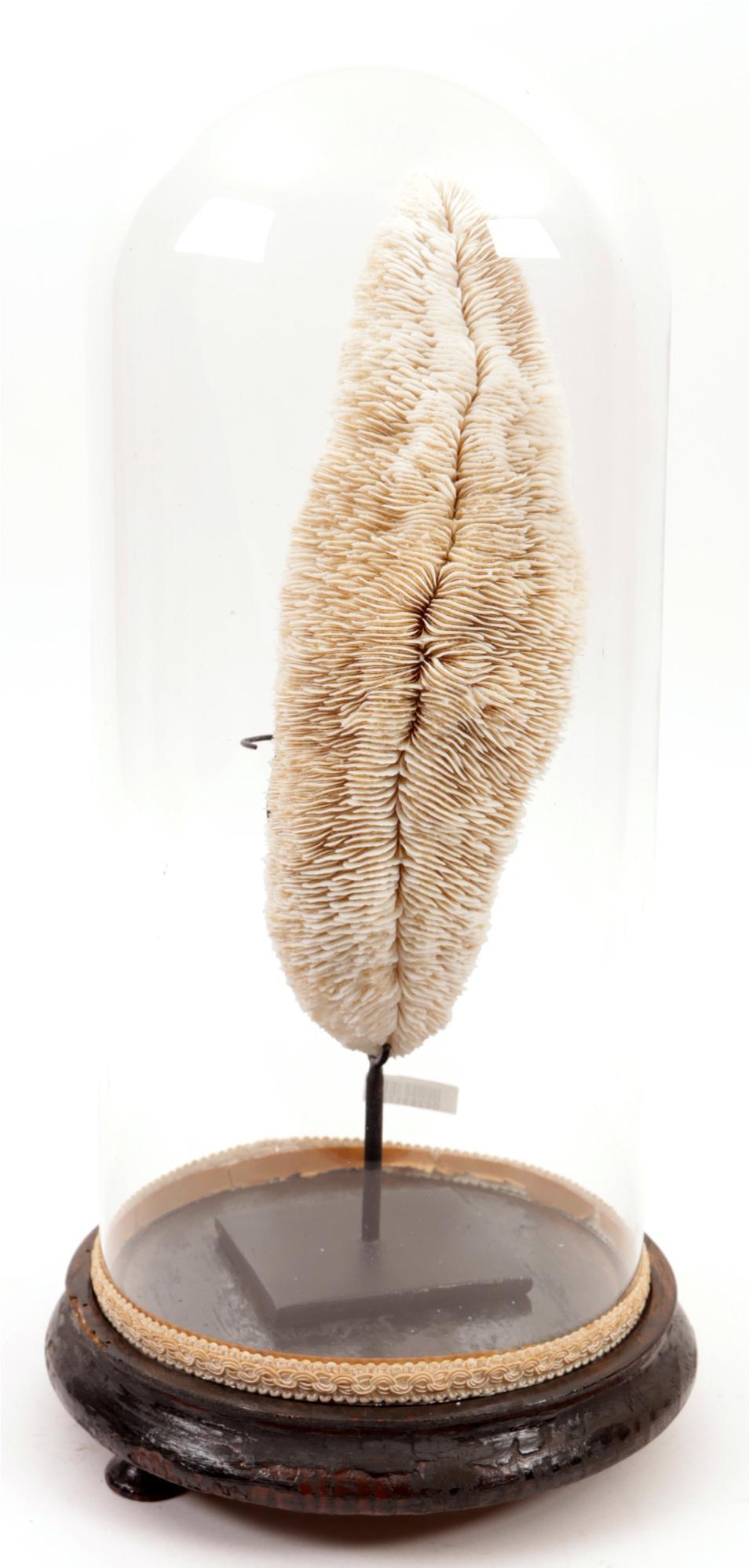 Stuk koraal onder stolp, h.40 cm.