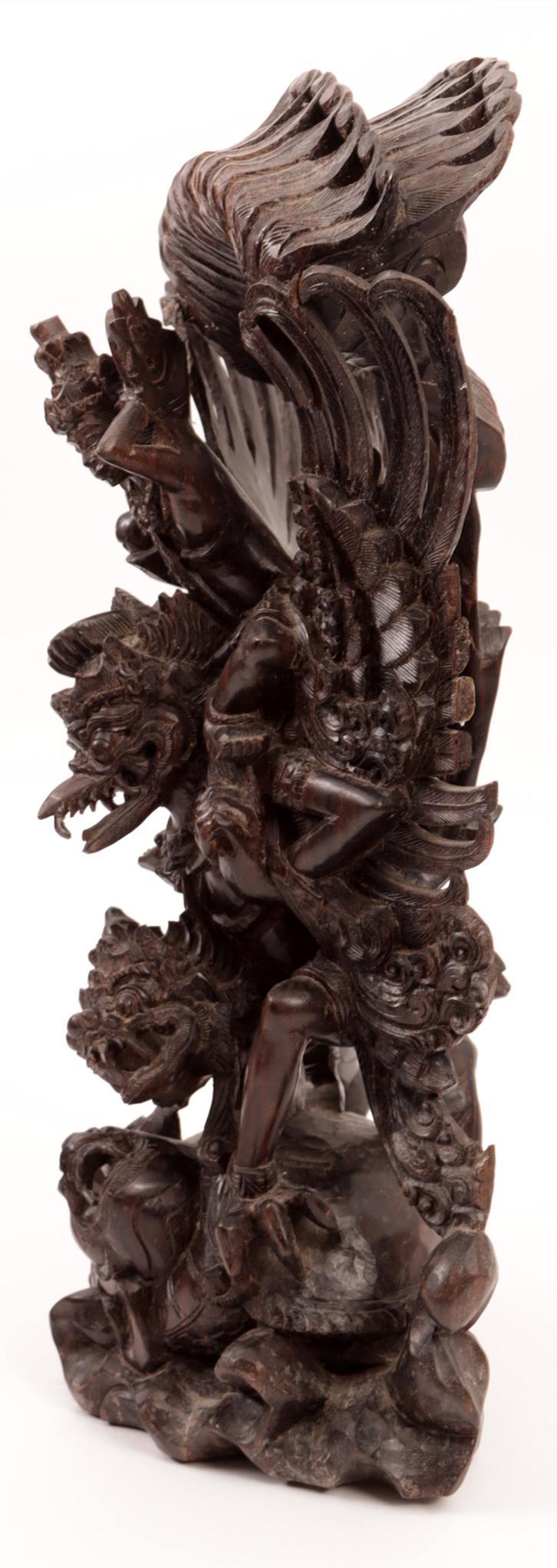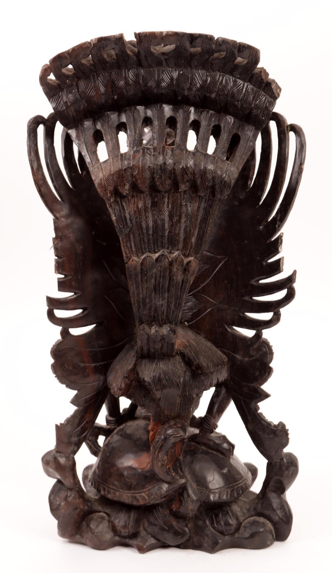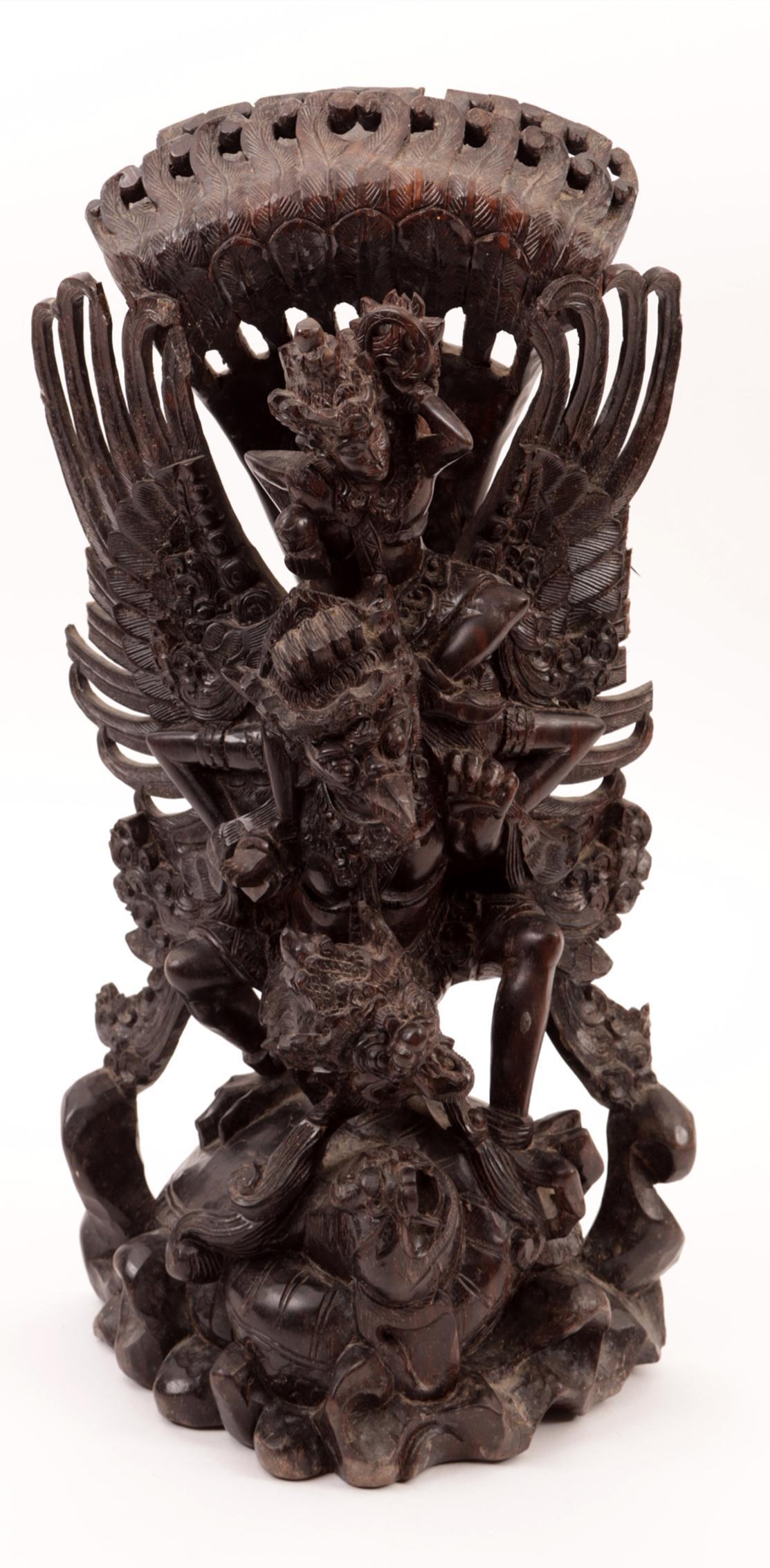 Hand gestoken palissanderhouten sculptuur van een Vishnu en Garuda, h.40 cm. (vleugels defect)