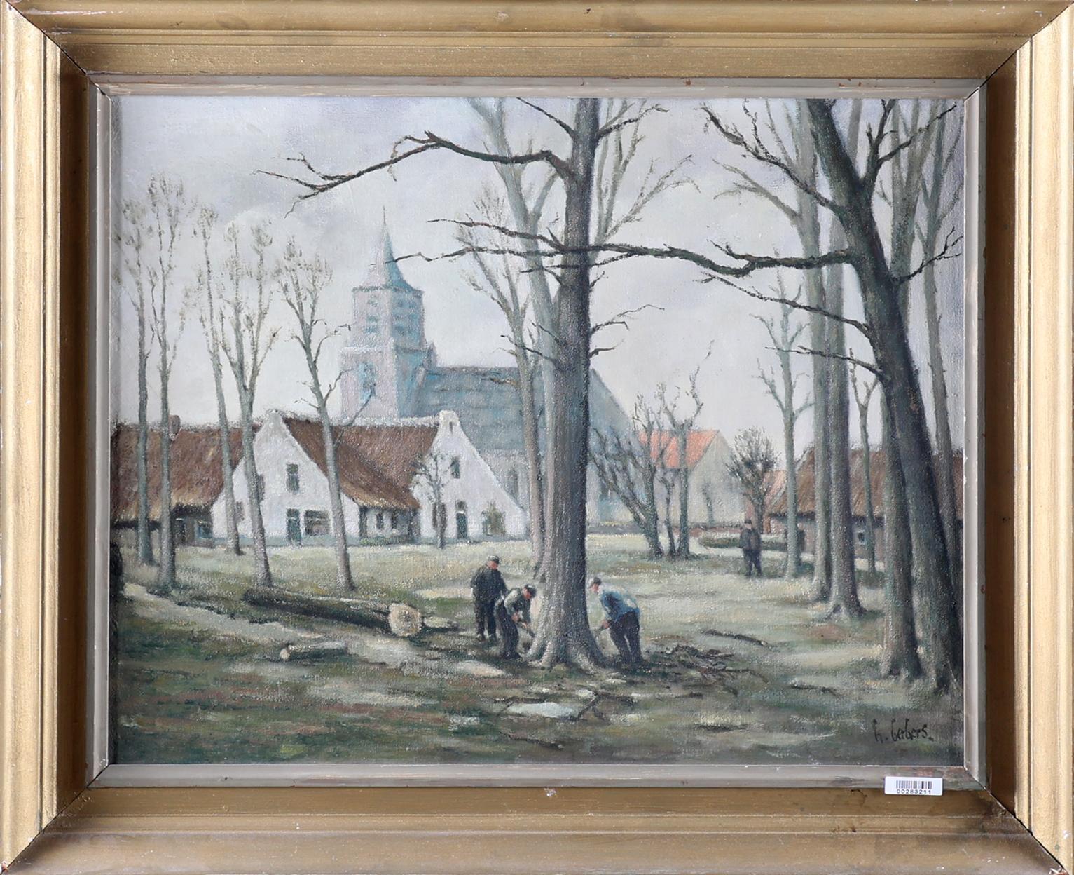 H. Berbers, Zicht op de Brink te Laren, olieverf op doek, 40 x 50 cm.