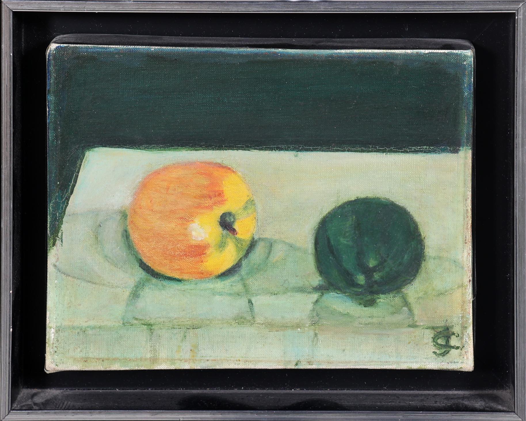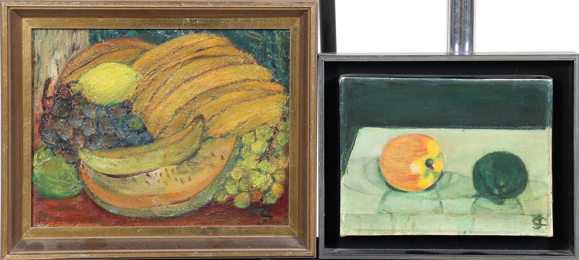 André Schaller (1920 - 1981), Twee fruitstillevens, olieverf op doek, 23 x 28 en 18,5 x 24 cm.