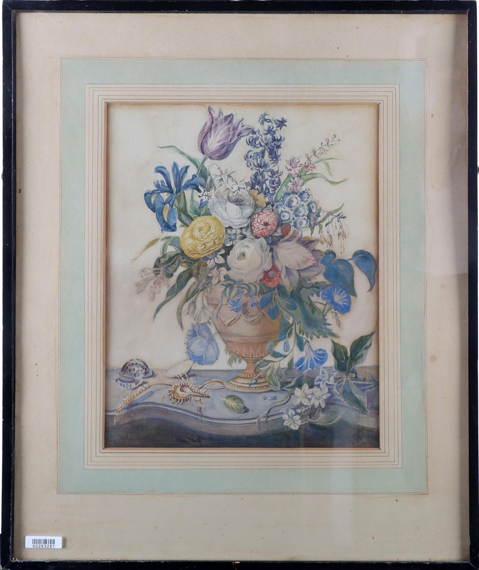 Onb. meester, Bloemstilleven, aquarel, 31 x 24,5 cm.