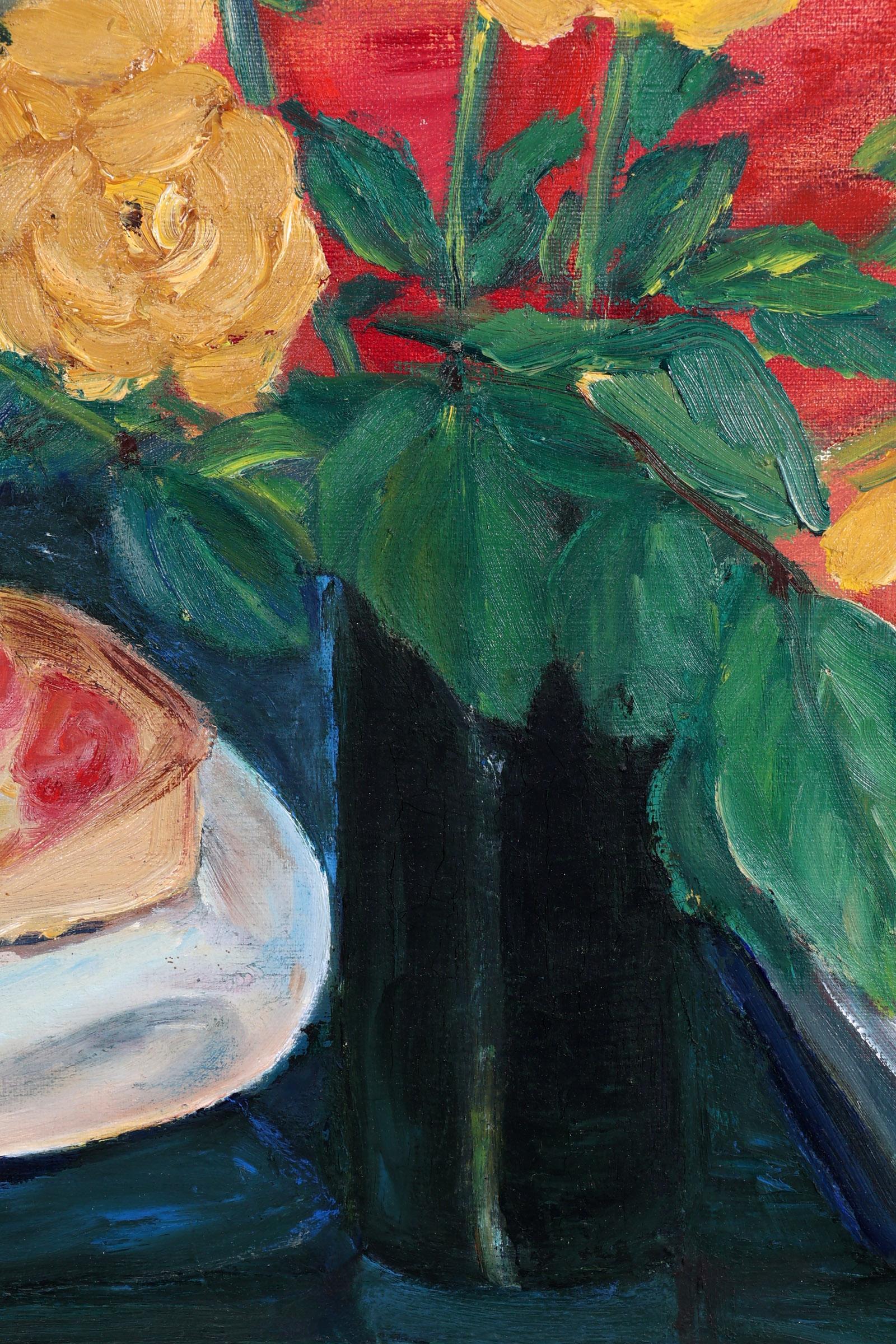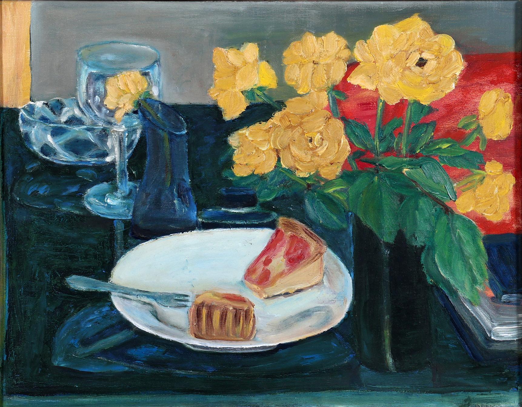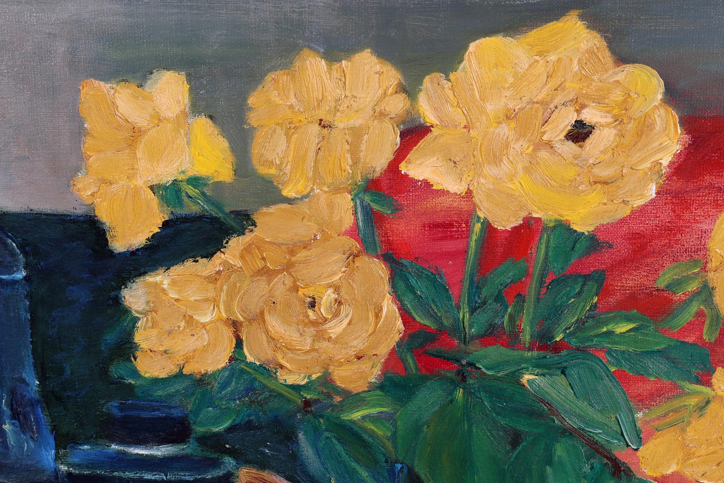 Toegeschreven aan André Schaller (1920 - 1981), Stilleven met gele rozen, olieverf op doek, 39 x 49 cm.
