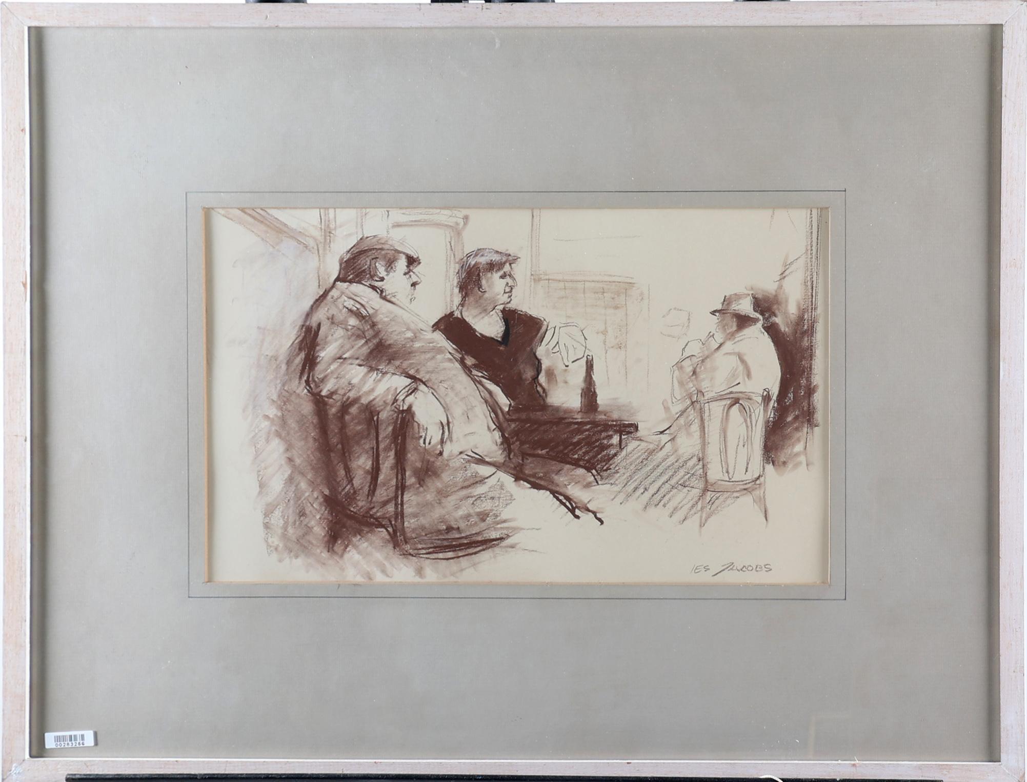 Isaac 'Ies' Jacobs (1918-2011), Personen in de kroeg, aquarel/krijttekening, 25 x 41,5 cm.