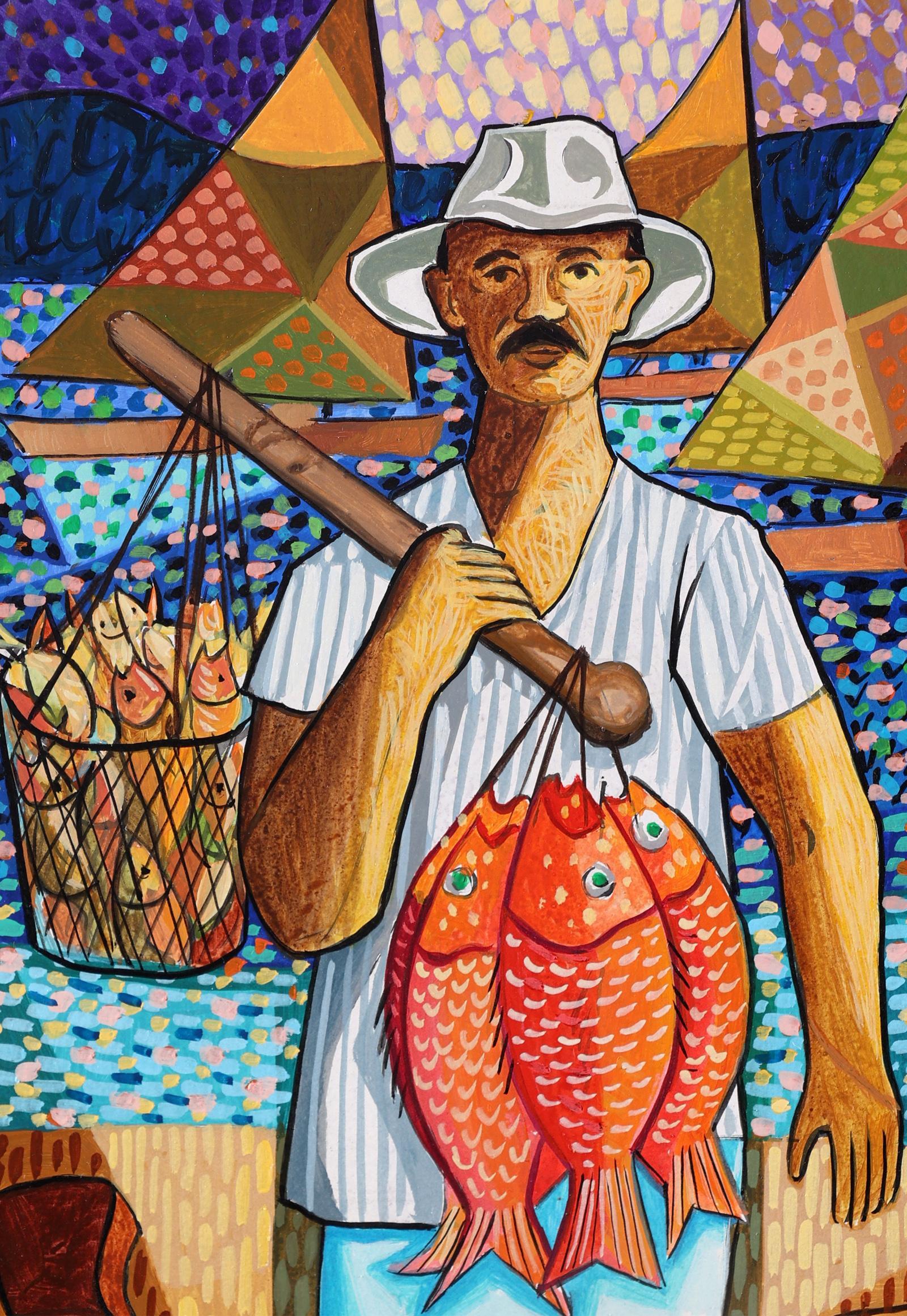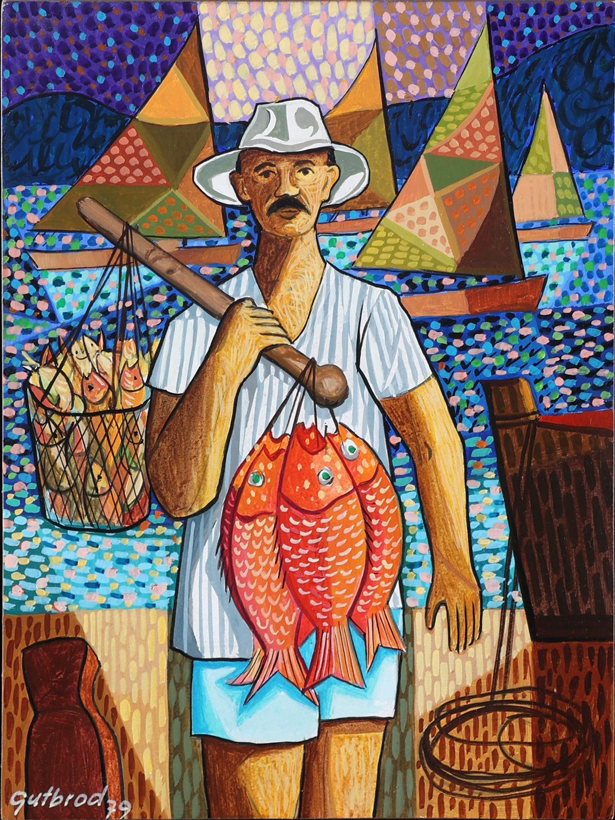 Willy Johan Gutbrod, Visser, olieverf op diep paneel, gedateerd '79, 32 x 24 cm.