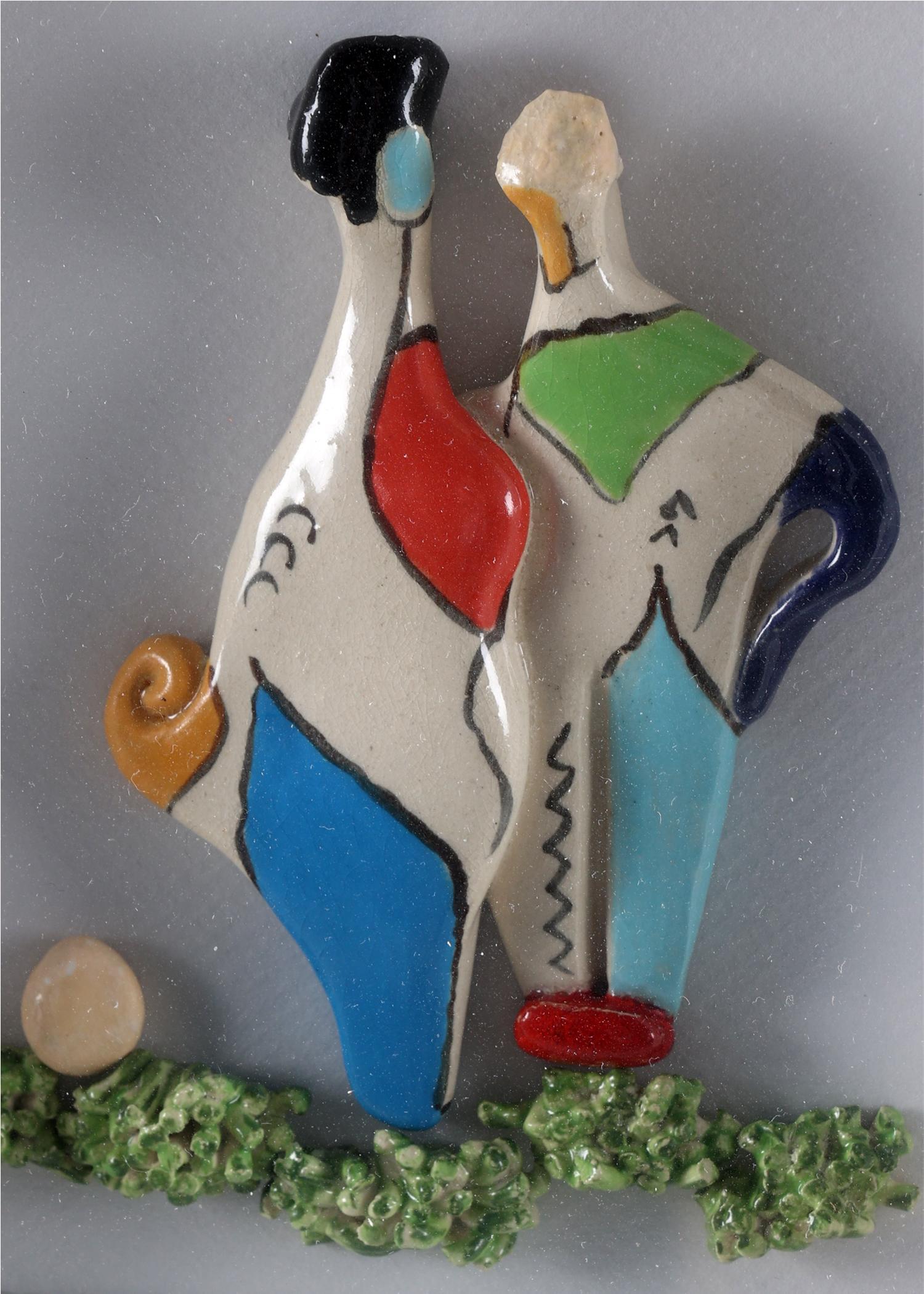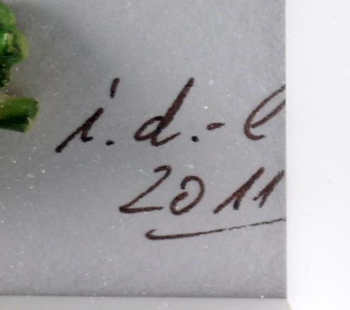 Onduidelijk monogram, Keramieken wanddecoratie, gedateerd 2011, 25,5 x 25,5 cm. (inclusief lijst)