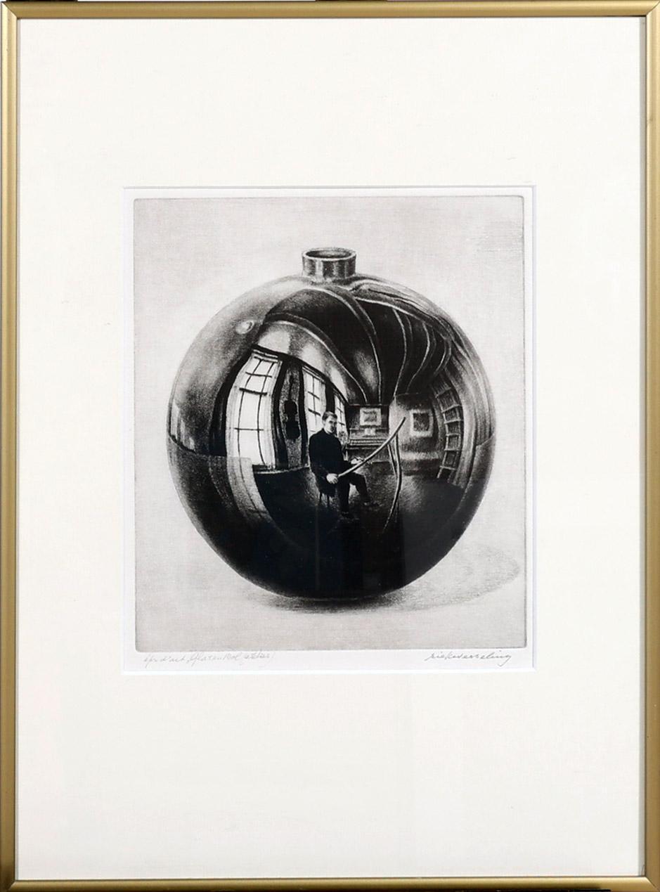 Hendrike Louise 'Riek' Wesseling (1914-1995), Glazen Bol (atelier), épreuve d'artiste, handgesigneerde gravure, 25 x 21 cm.