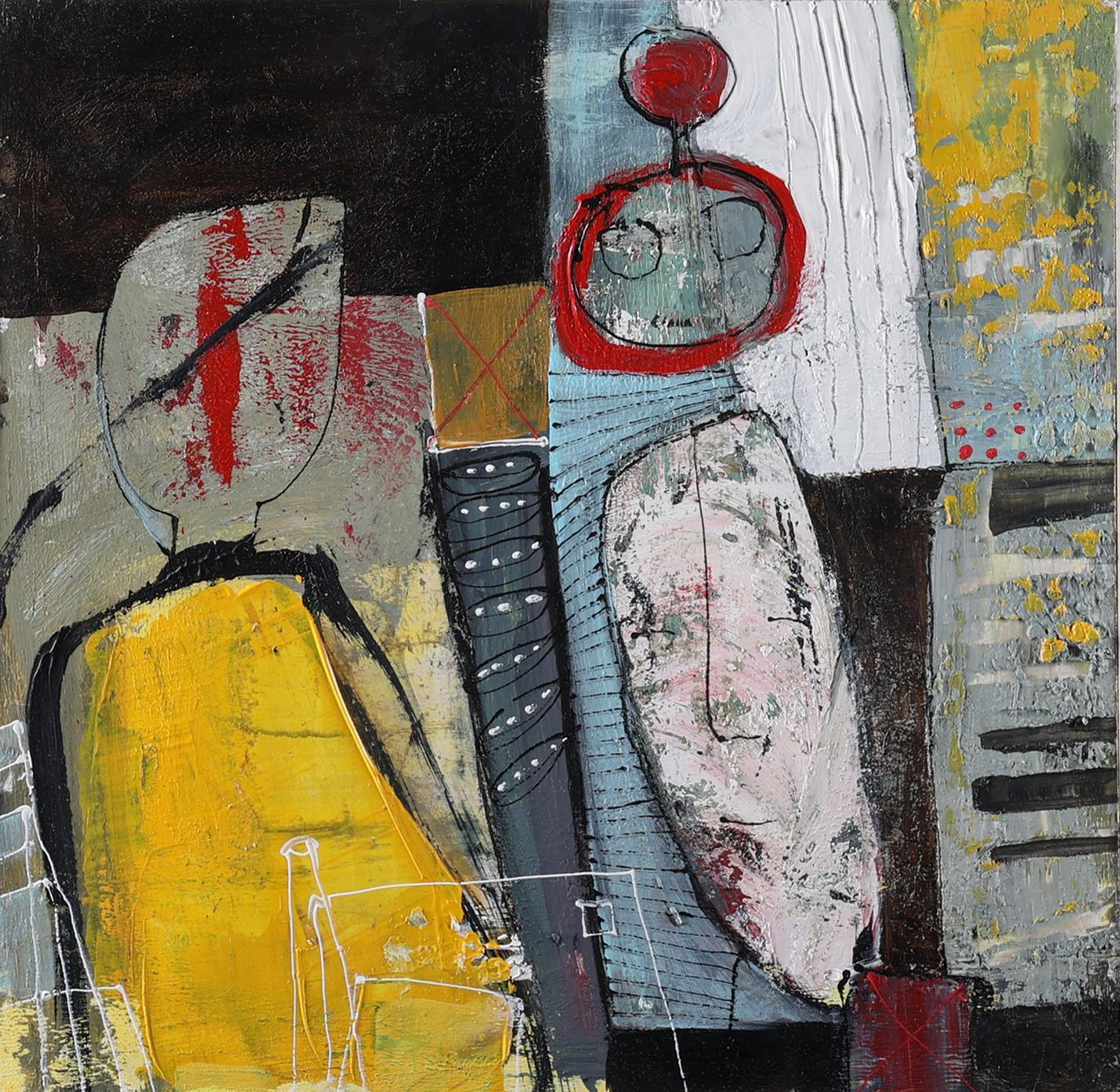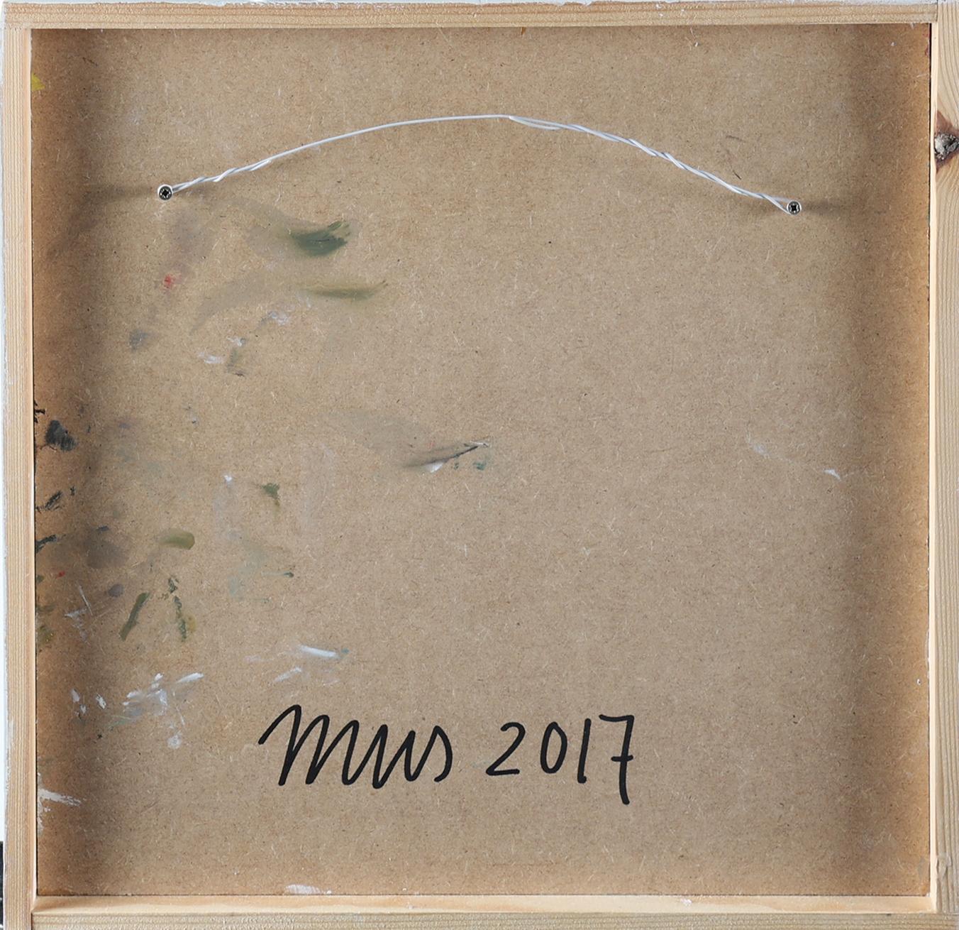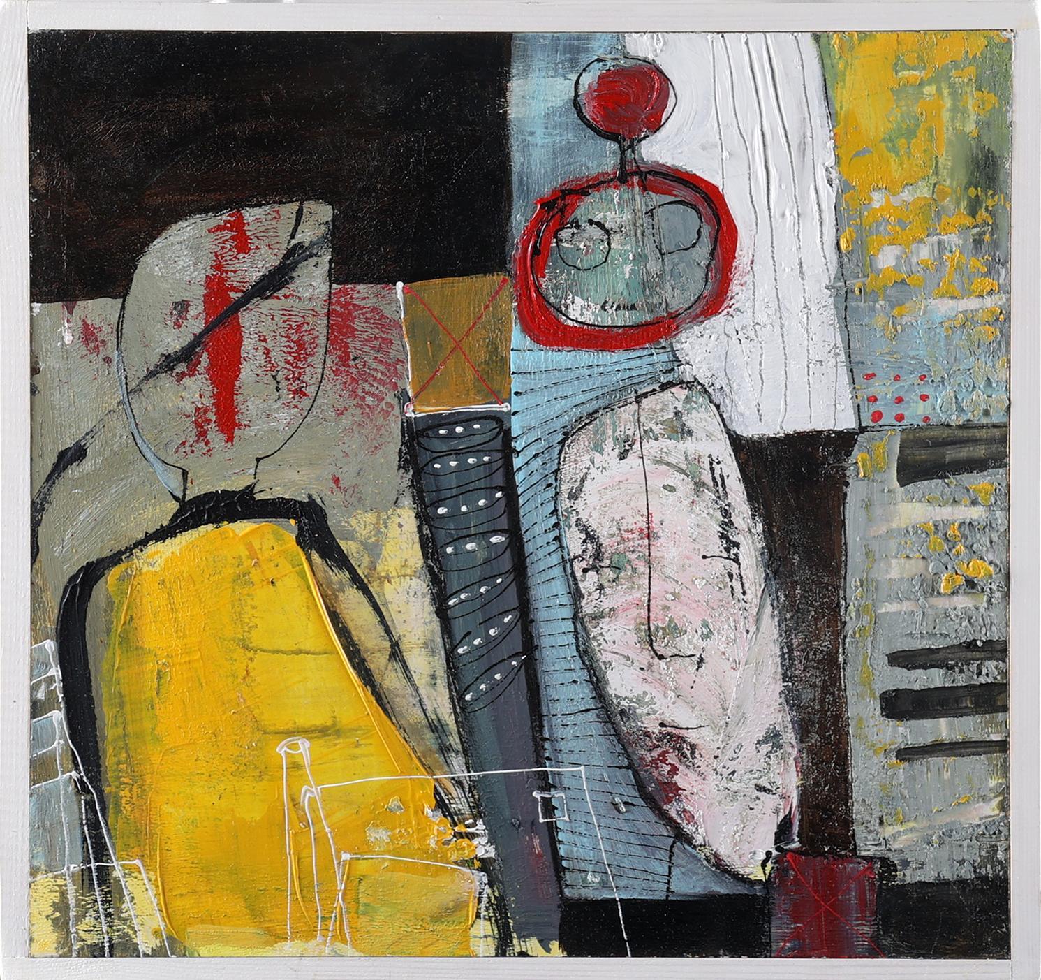Mus Richter, Abstract met persoon, acryl op paneel, gedateerd 2017, 30 x 30 cm.