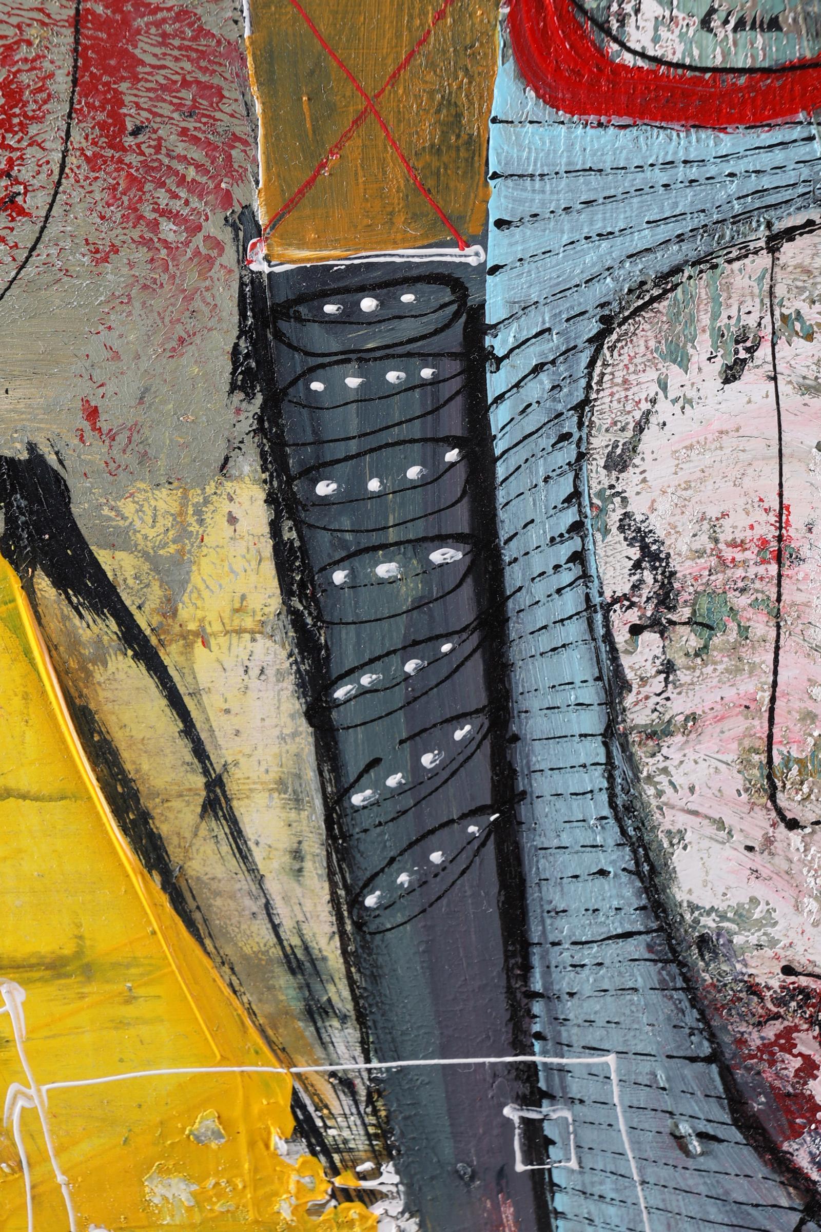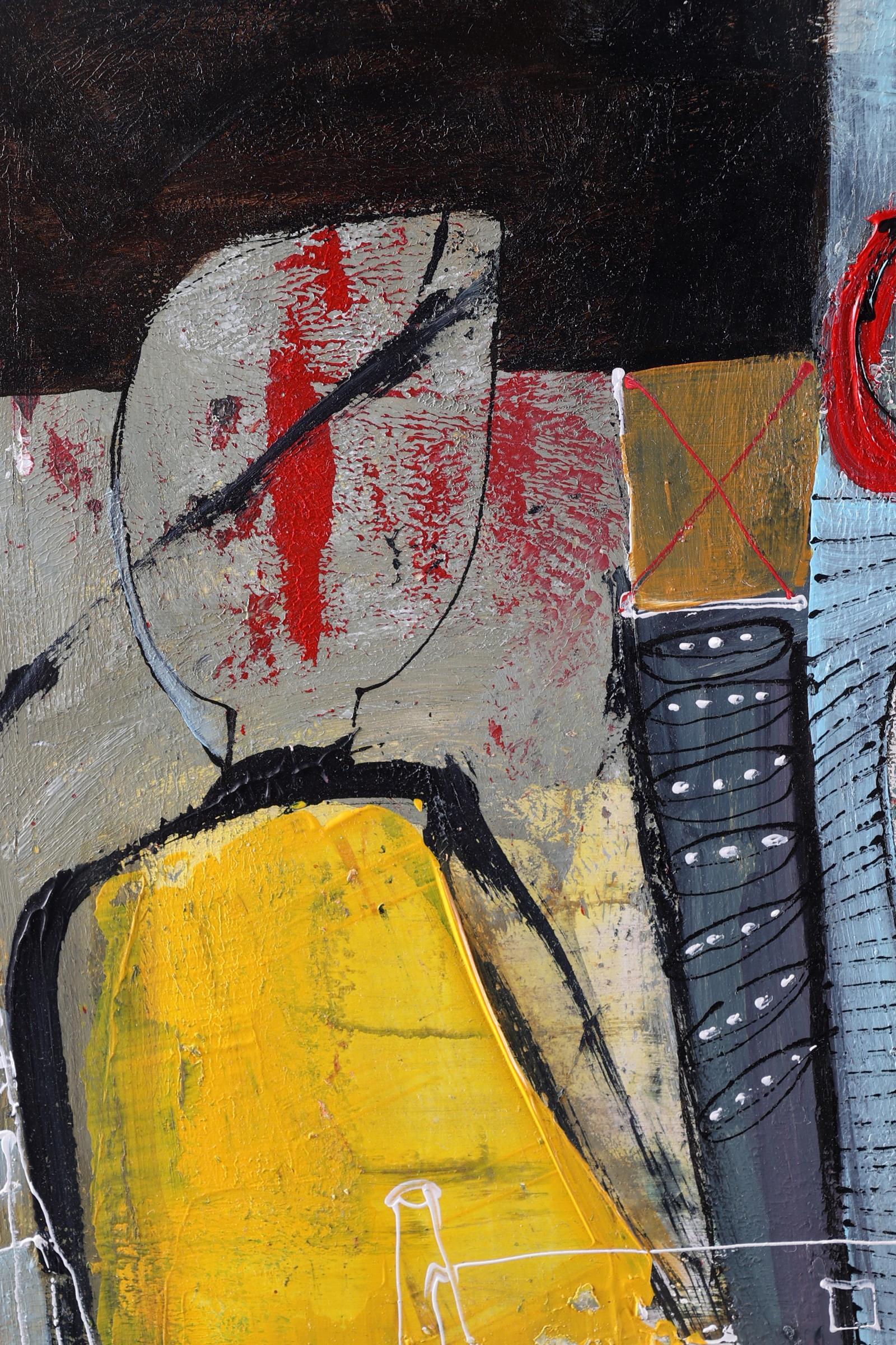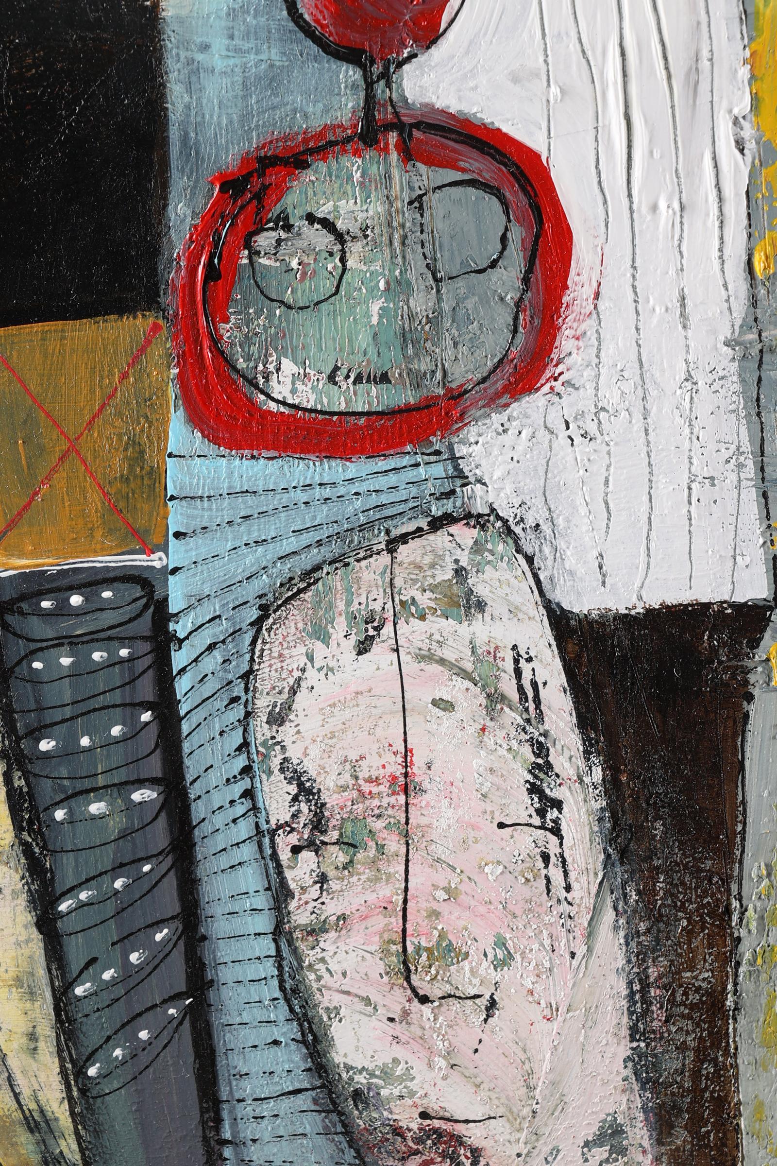 Mus Richter, Abstract met persoon, acryl op paneel, gedateerd 2017, 30 x 30 cm.