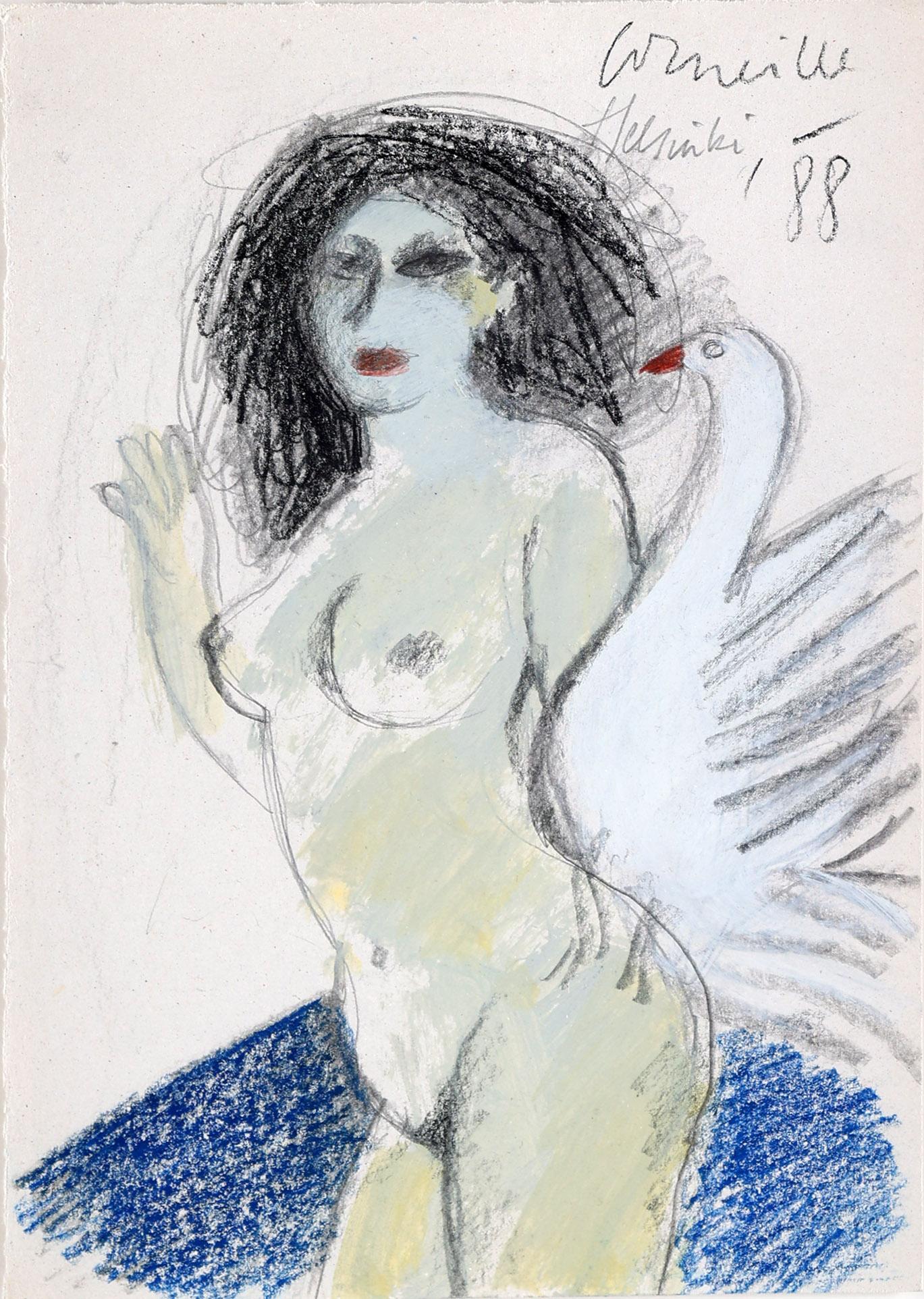'Corneille', alias van Cornelis Guillaume van Beverloo, (1922- 2010), Helsinki 1988, handgesigneerde tekening, 21 x 30 cm., inclusief echtheidsverklaring van BernArt Gallery