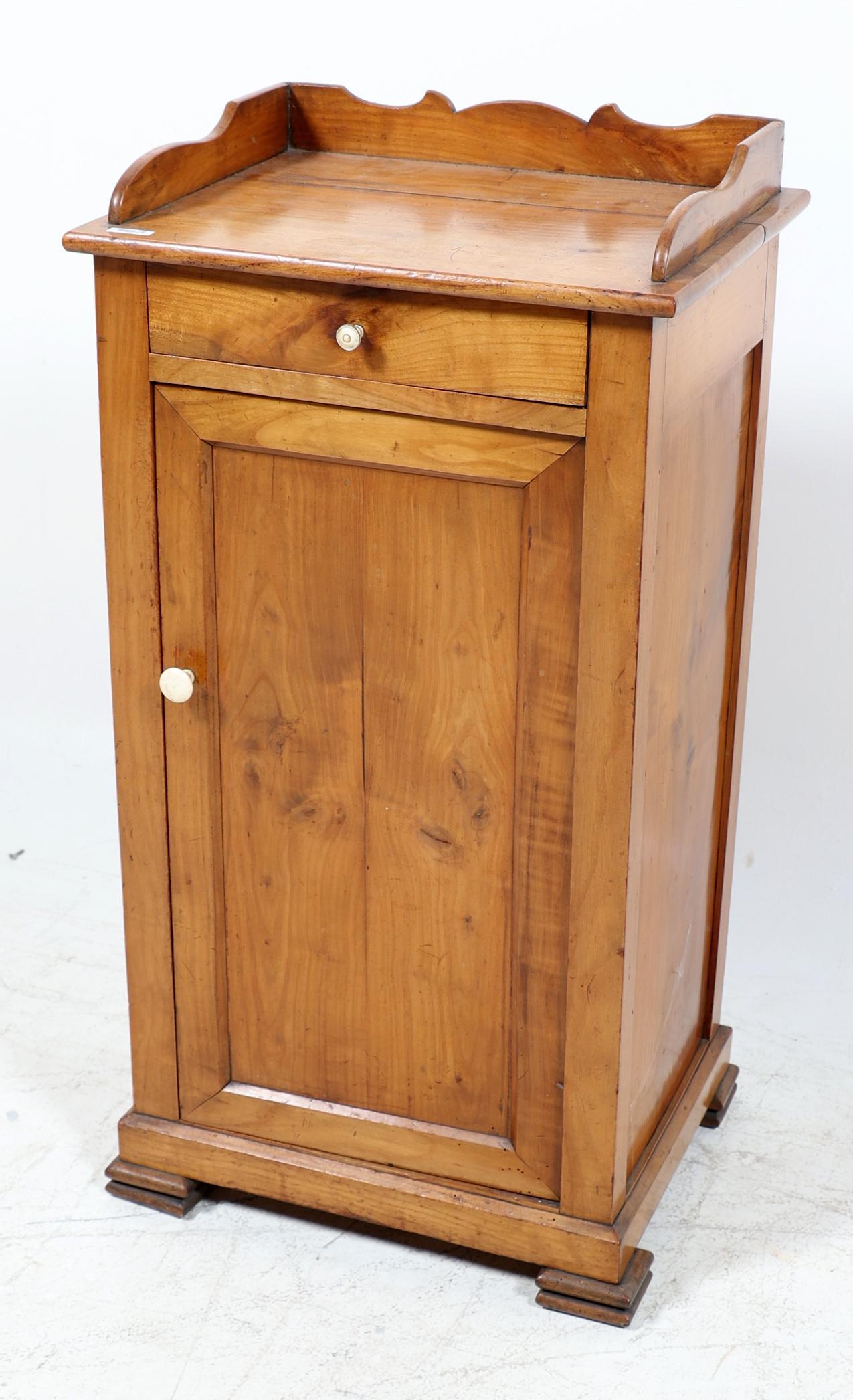 Antiek mahoniehouten 1-deurs kast met lade, h.87 x b.44 x d.34 cm.