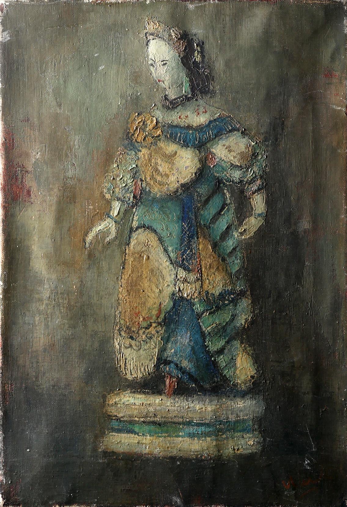 Flier, Oosterse pop, olieverf op doek, 40,5 x 28 cm.