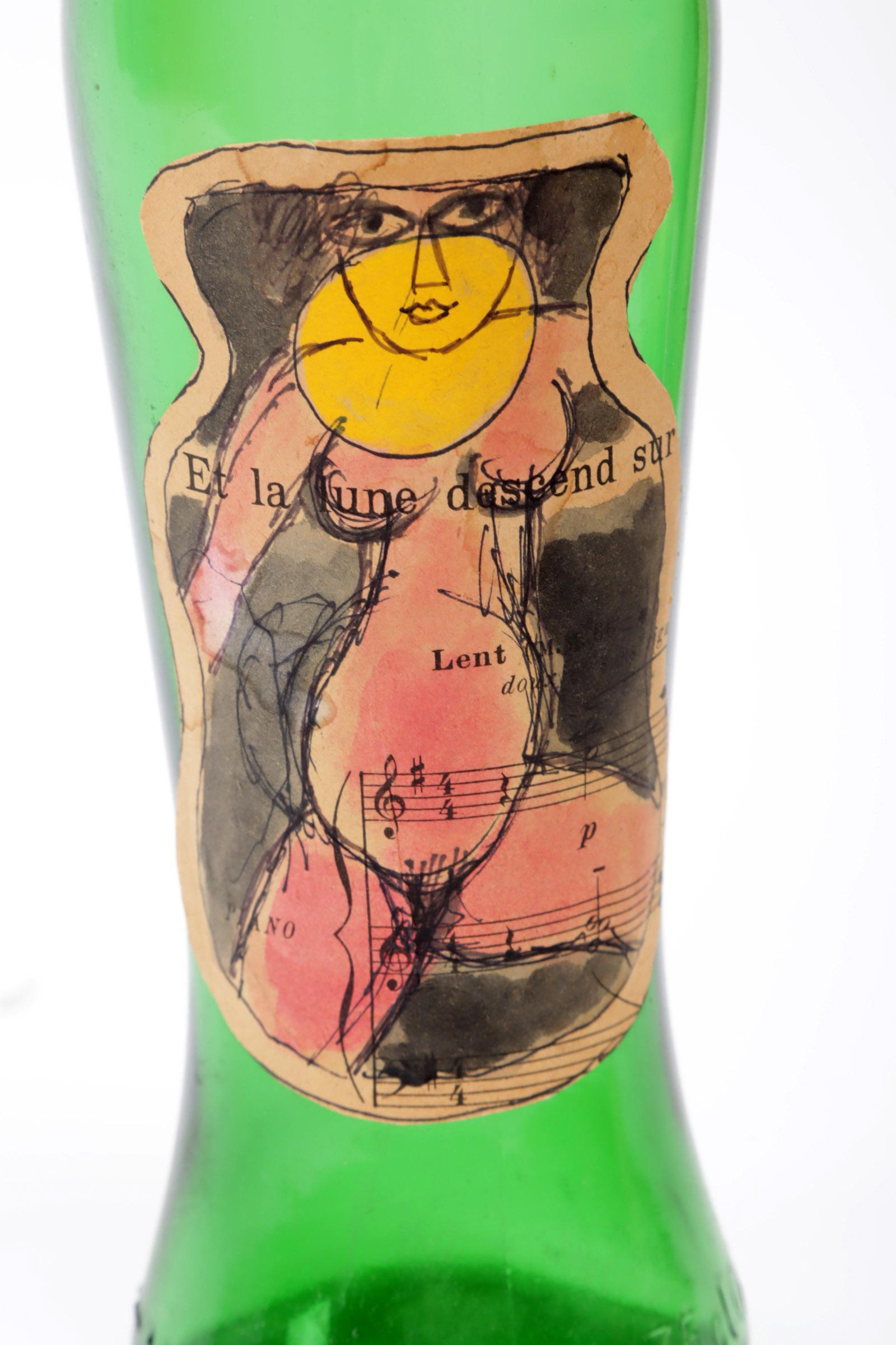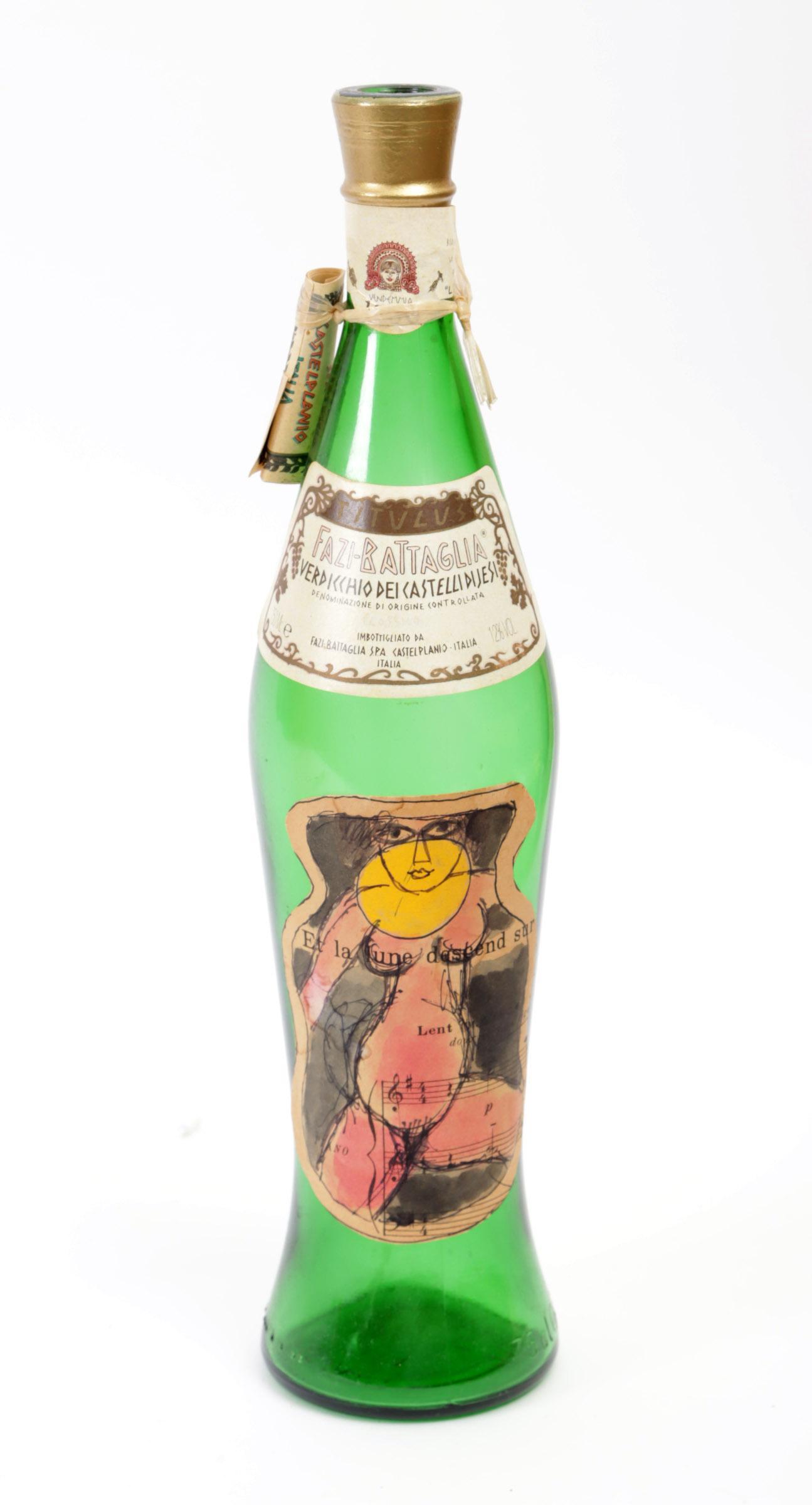 'Corneille', alias van Cornelis Guillaume van Beverloo (1922- 2010), Et la lune descend sur, wijnetiket in gemengde techniek op een Fazi-Battaglia fles wijn