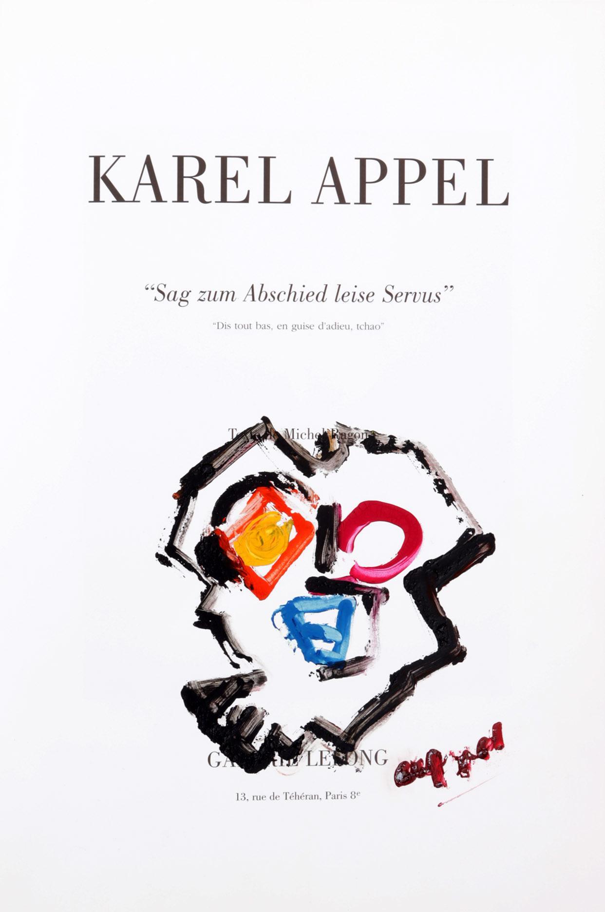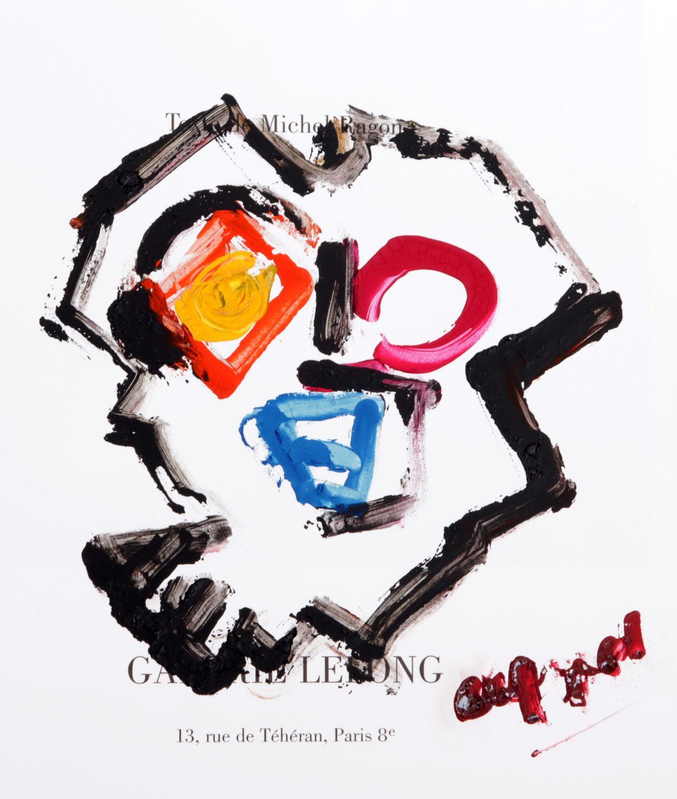 Christiaan (Karel) Appel (1921-2006), Portret, gouache op eerste pagina van de tentoonstellingscatalogus, "Karel Appel, Sag zum Abschied leise Servus, Galerie Lelong Paris", 2001
