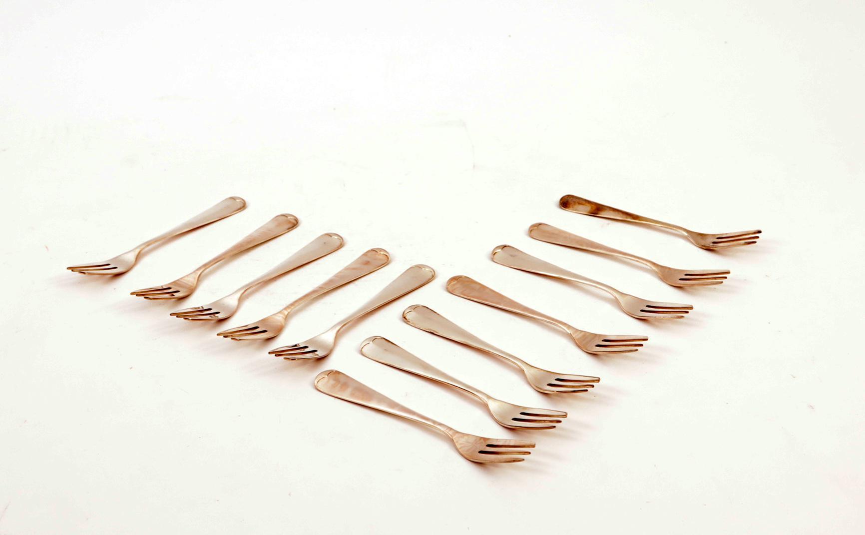 Elf 2e gehalte zilveren gebaksvorken, 168 gram