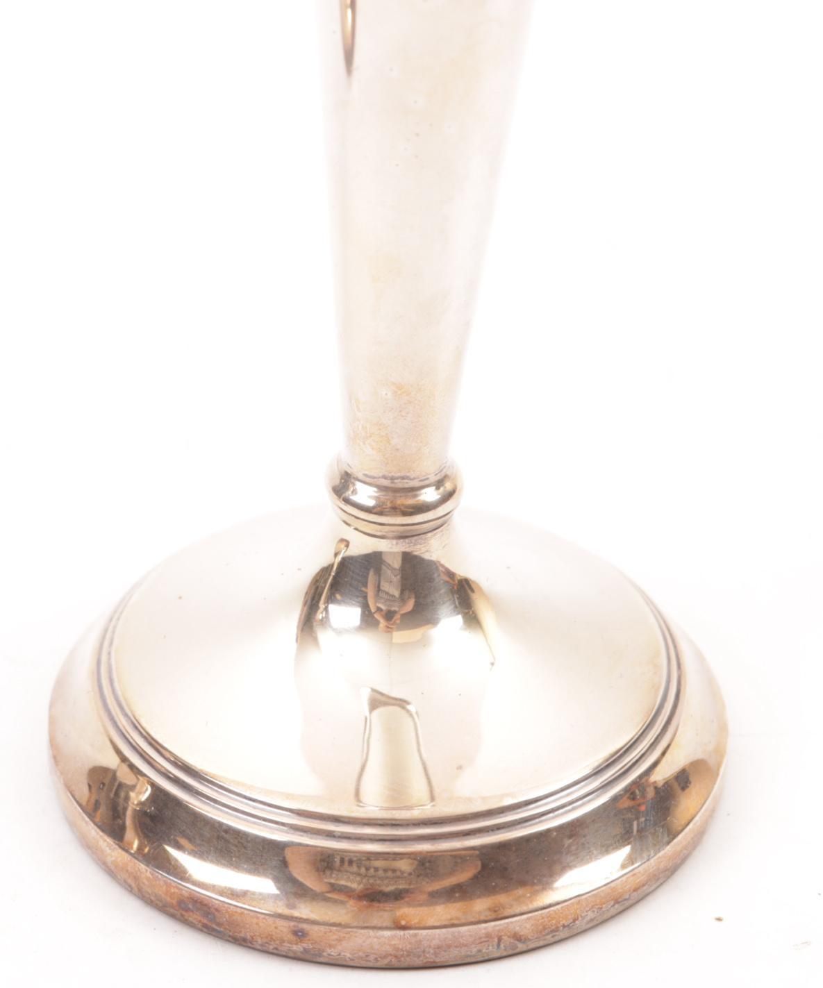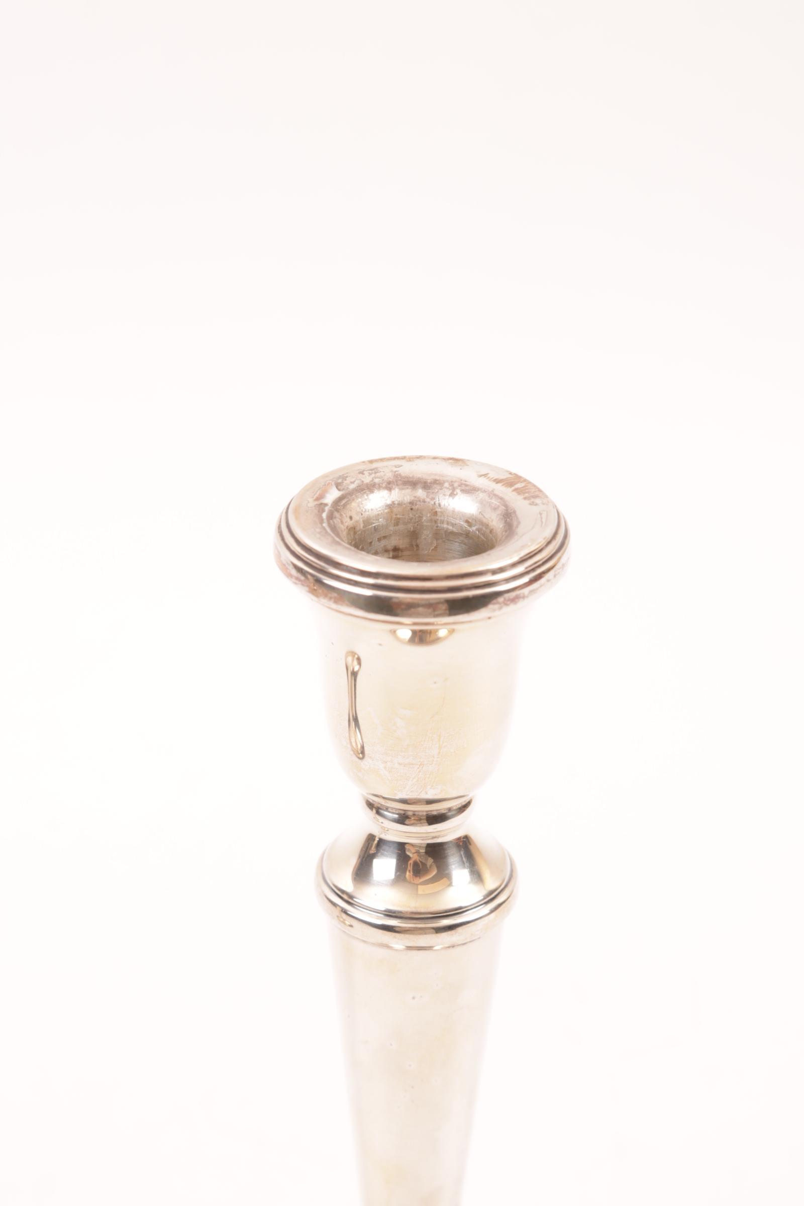 Twee 1e gehalte zilveren 1-lichts kandelaars, h.19,5 cm., 485 gram