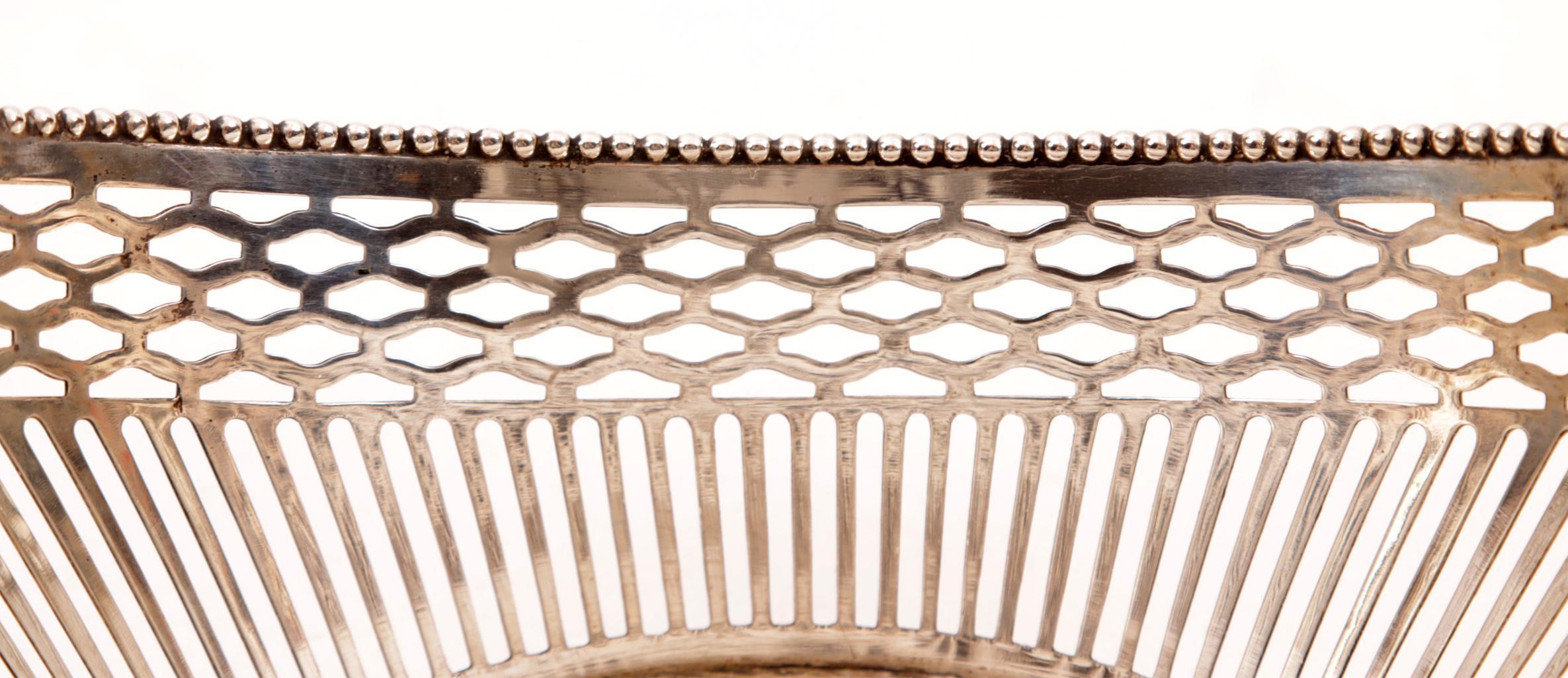 2e Gehalte zilveren bonbonmand met parelrand, h.7 x b.16 x d.11 cm., 92 gram