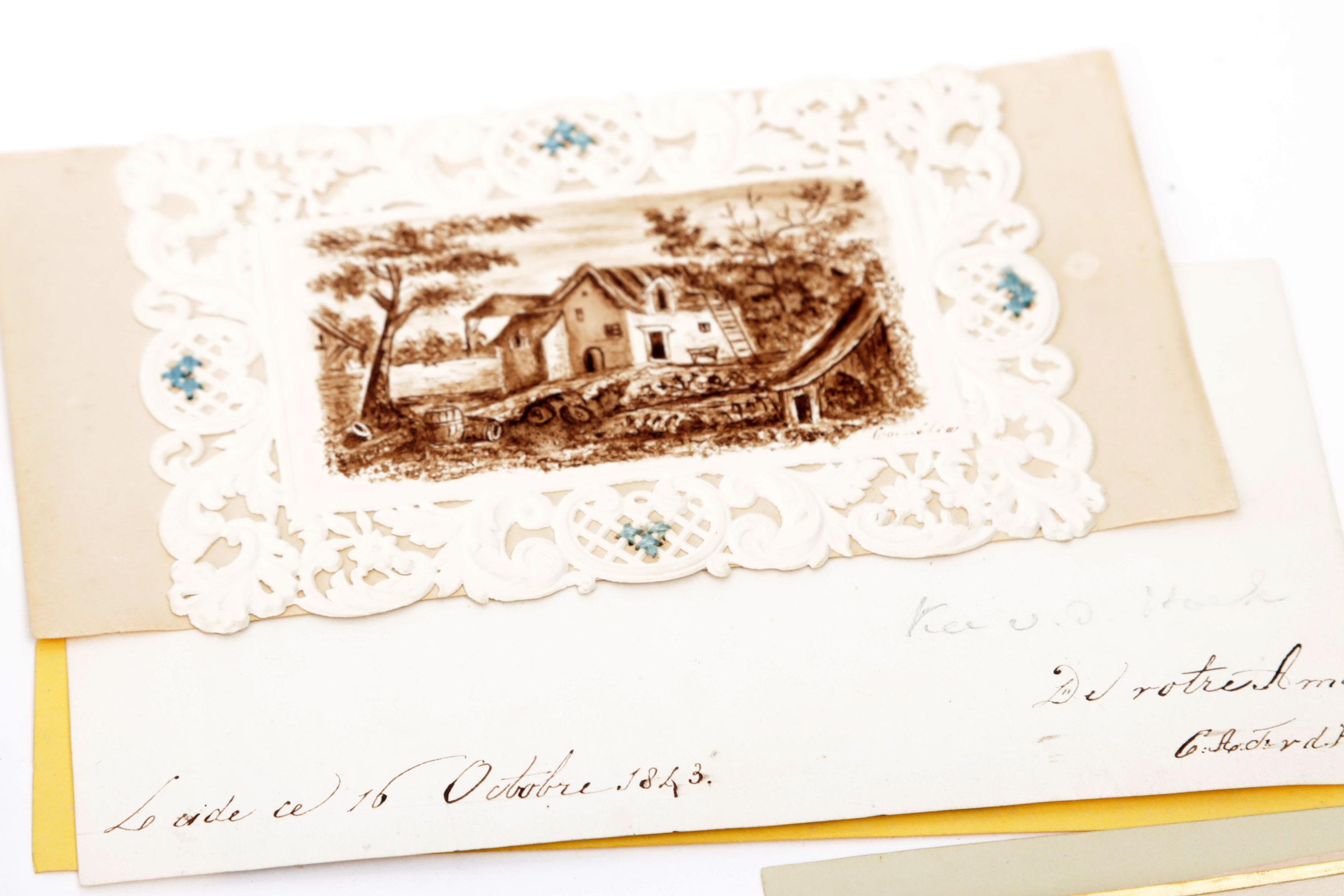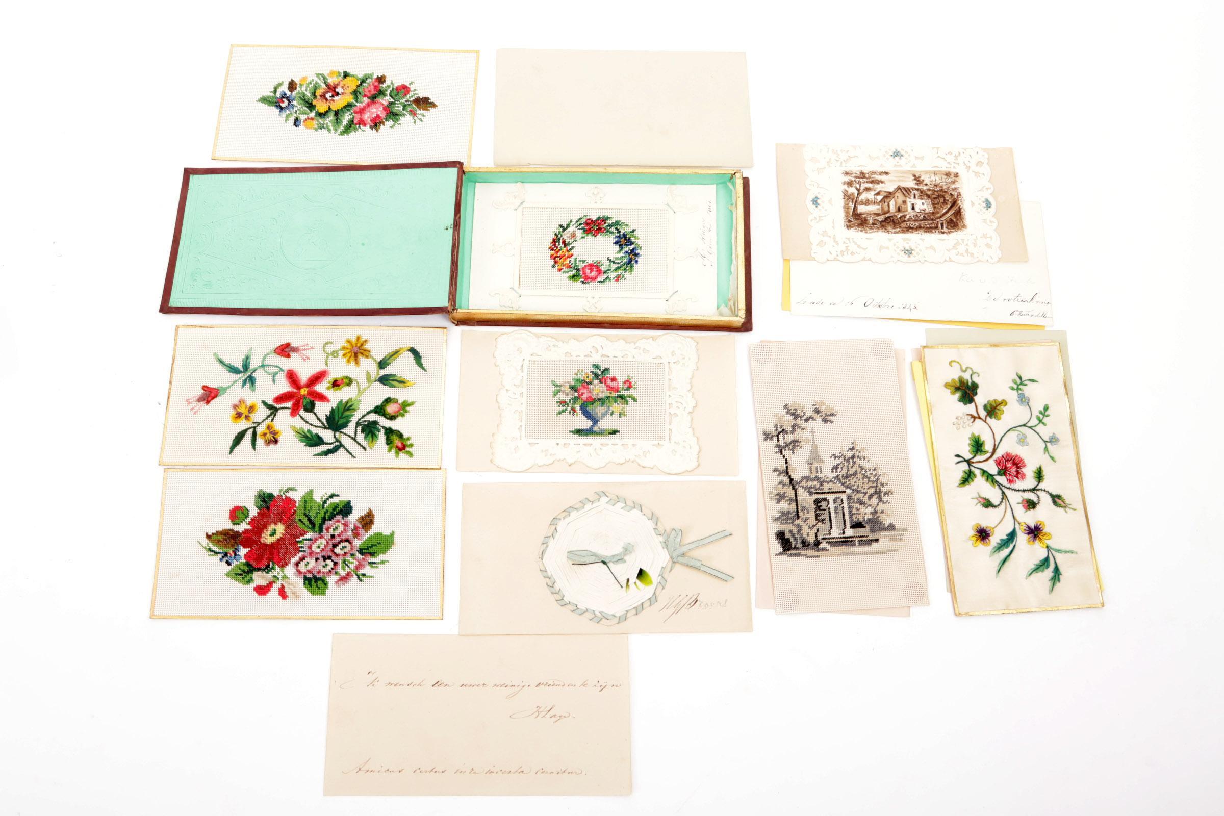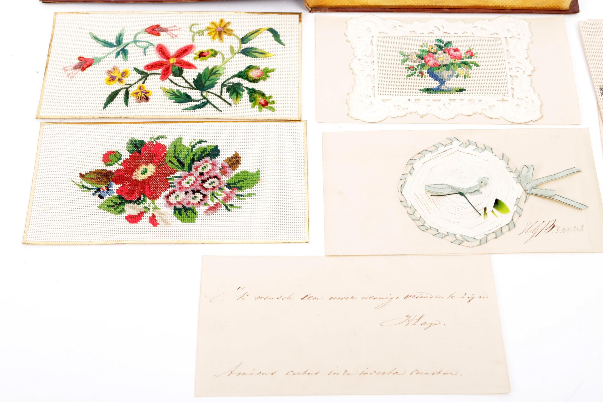 Antiek album, de Souvenir met diverse borduurwerkjes, etc.