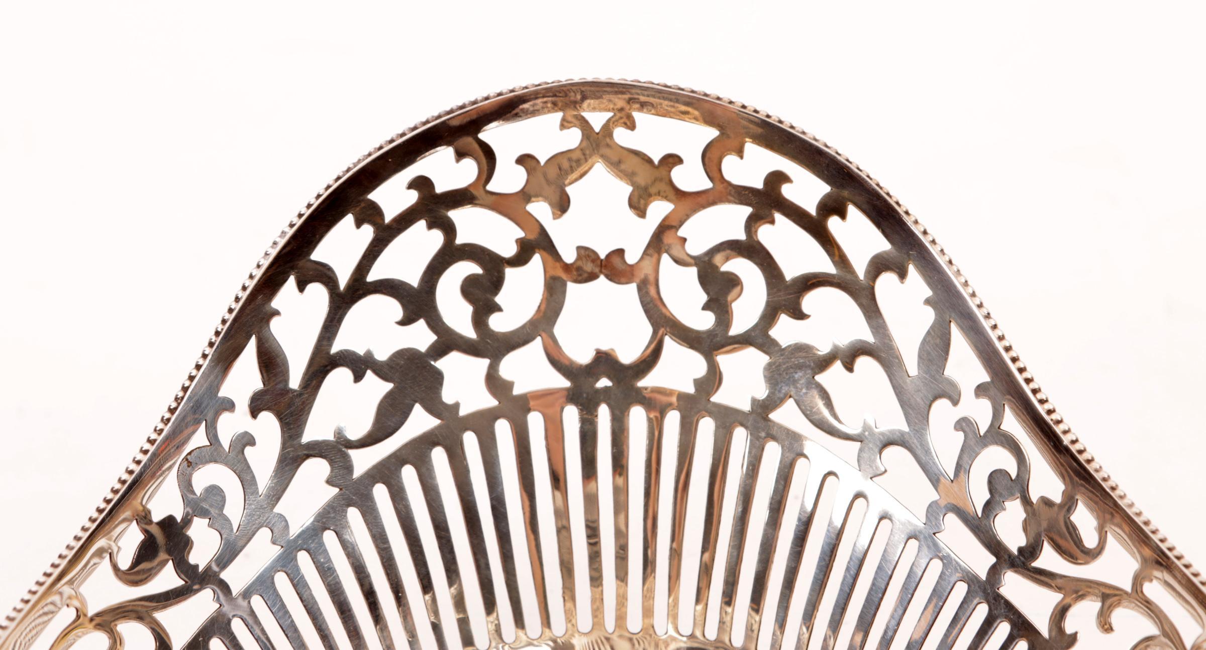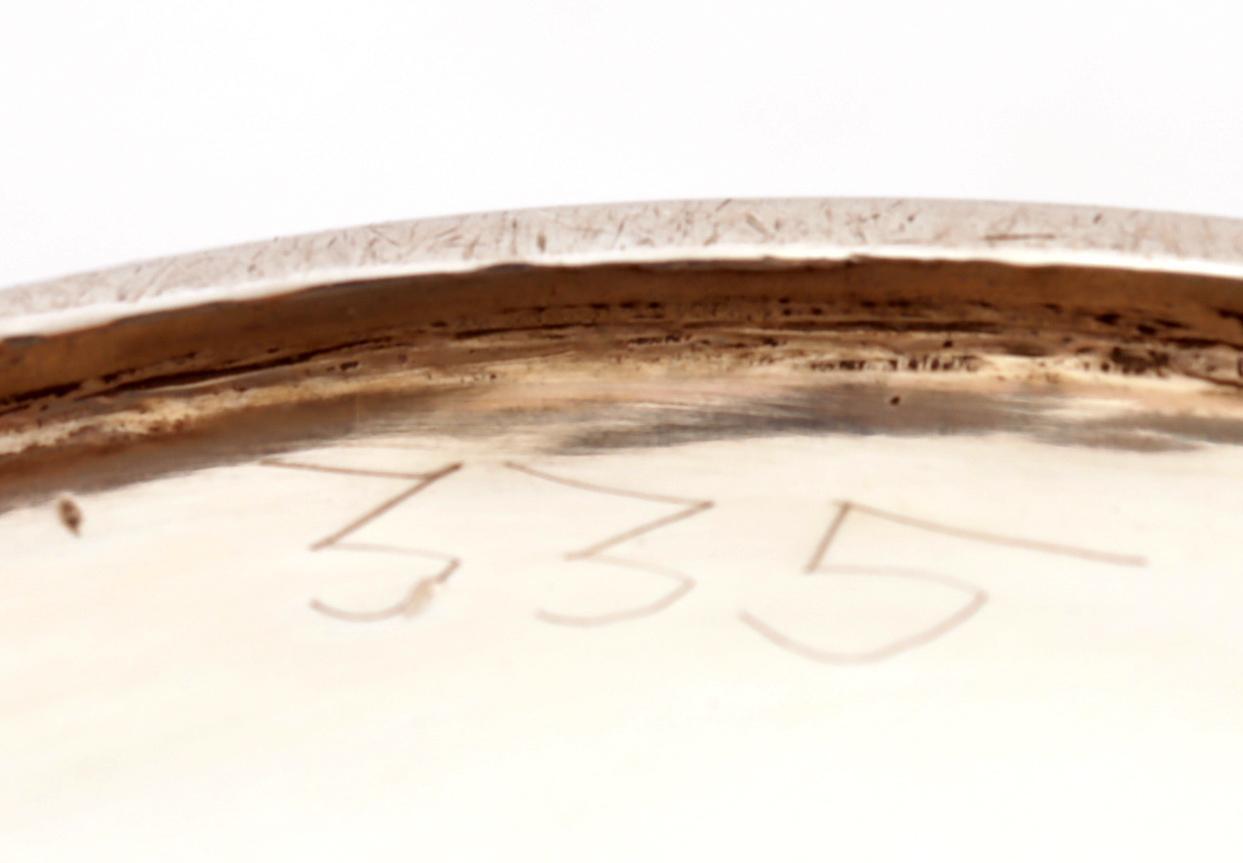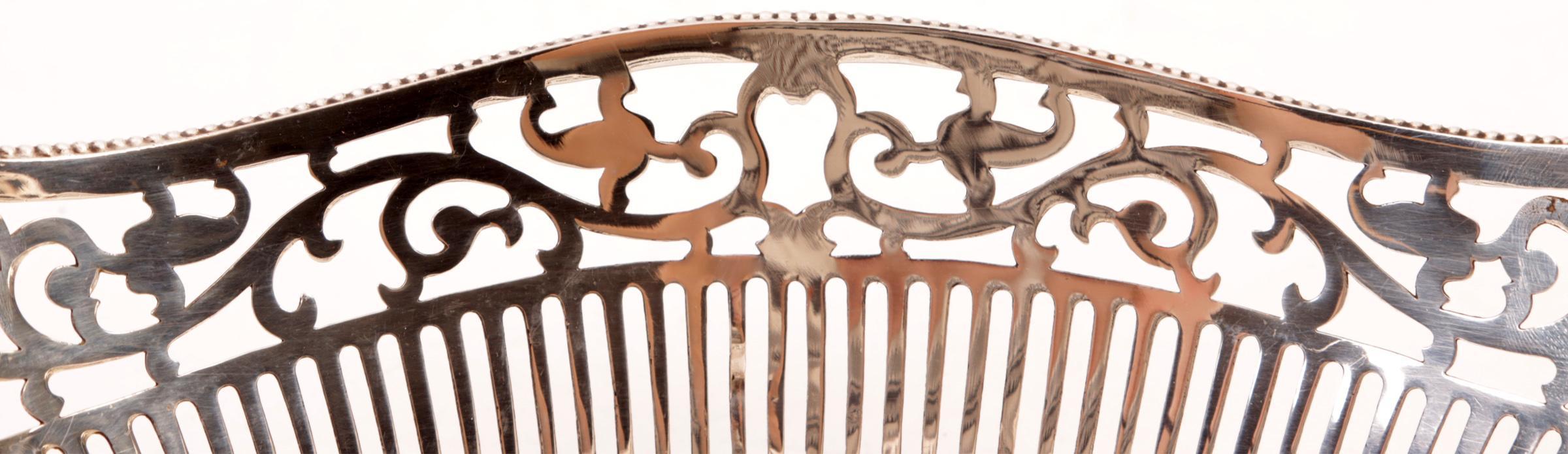 Opengewerkt 2e gehalte zilveren broodman met parelrand, h.9 b.25 x d.18 cm., 324 gram
