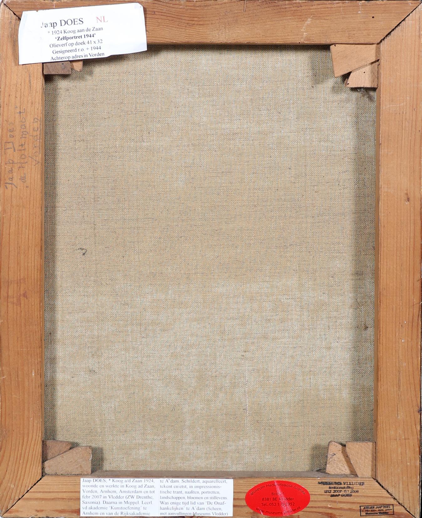 Jacob (Jaap ) Does (1924-2008), Zelfportret, olieverf op doek, 41 x 32 cm., gesigneerd r.o. en gedateerd 1944, Zelfportret, olieverf op doek, 40 x 30 cm., gesigneerd r.o. en gedateerd 1945, herkomst Atelier Jaap Does, Museums Vledder Tentoonstelling 1/12/2004 - 6/1/2008