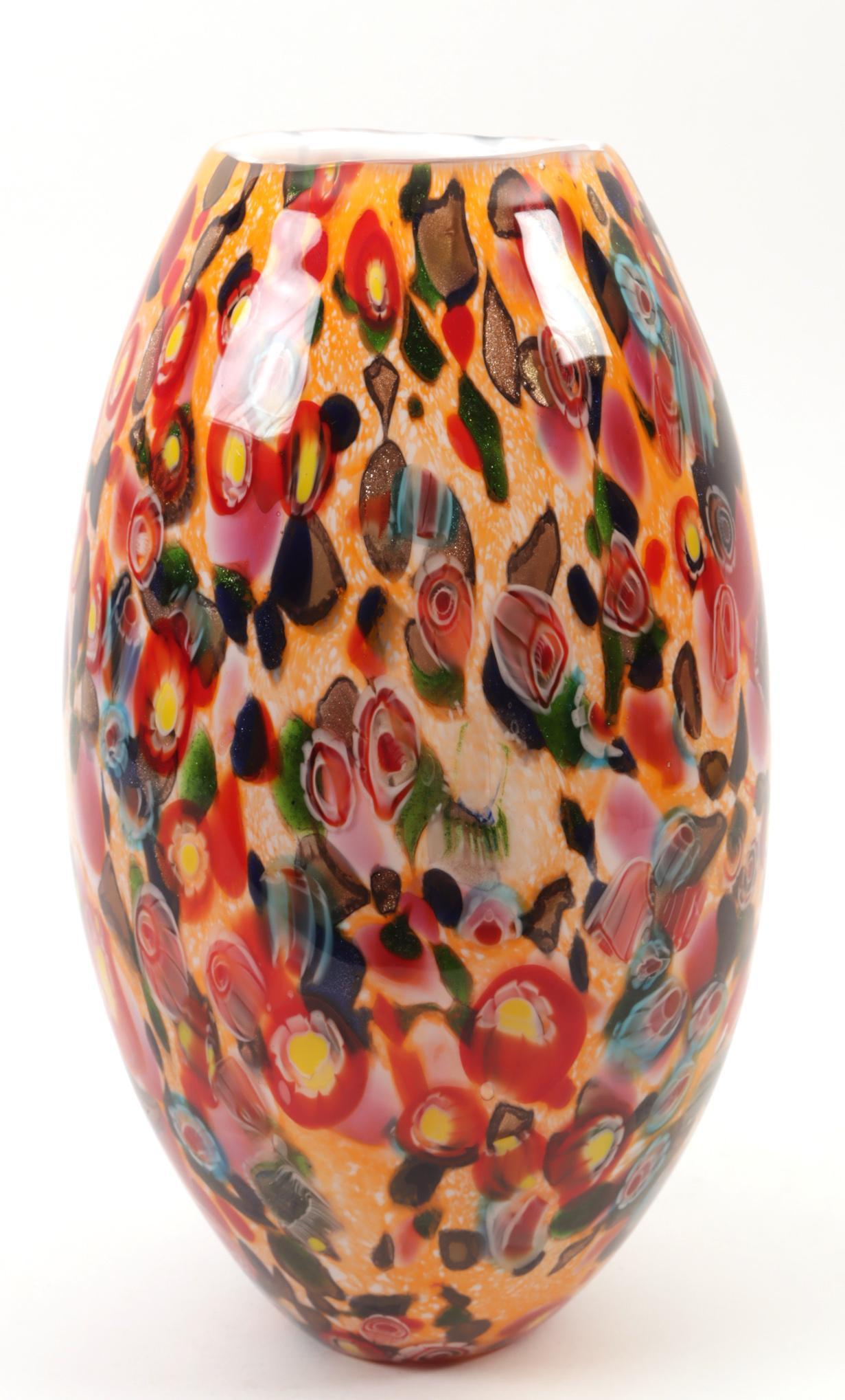 Glazen Millefiori-stijl vaas, h.34 cm.